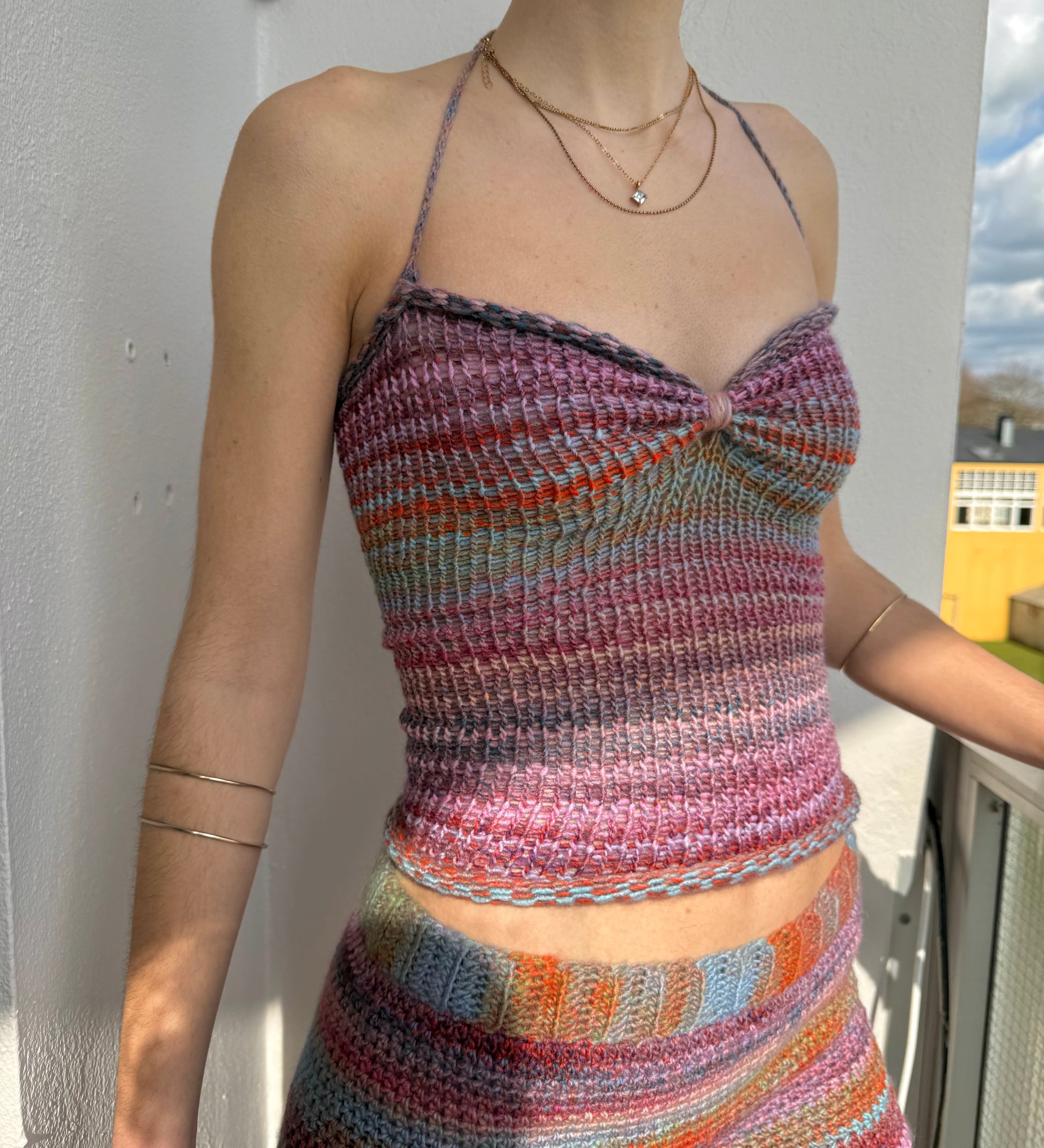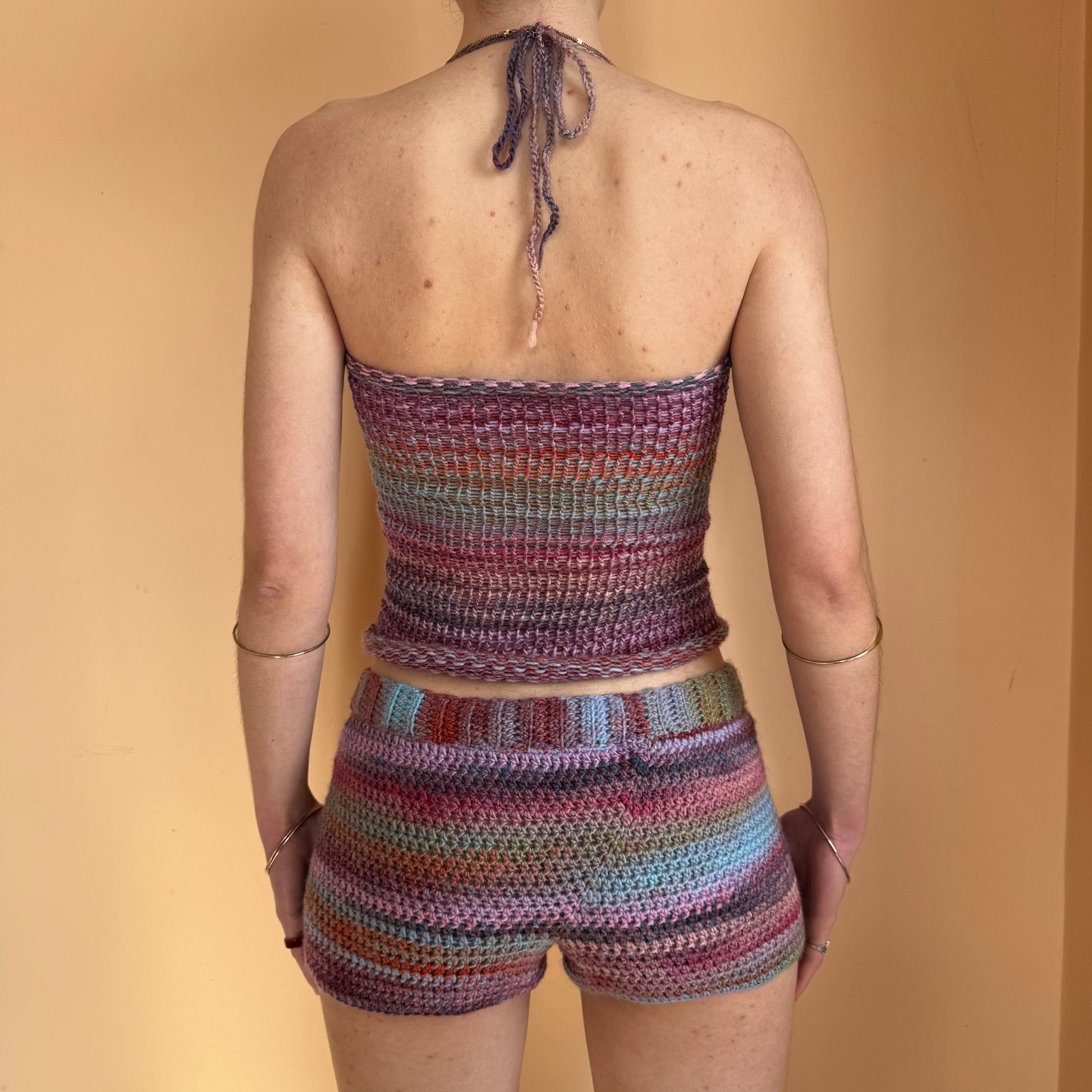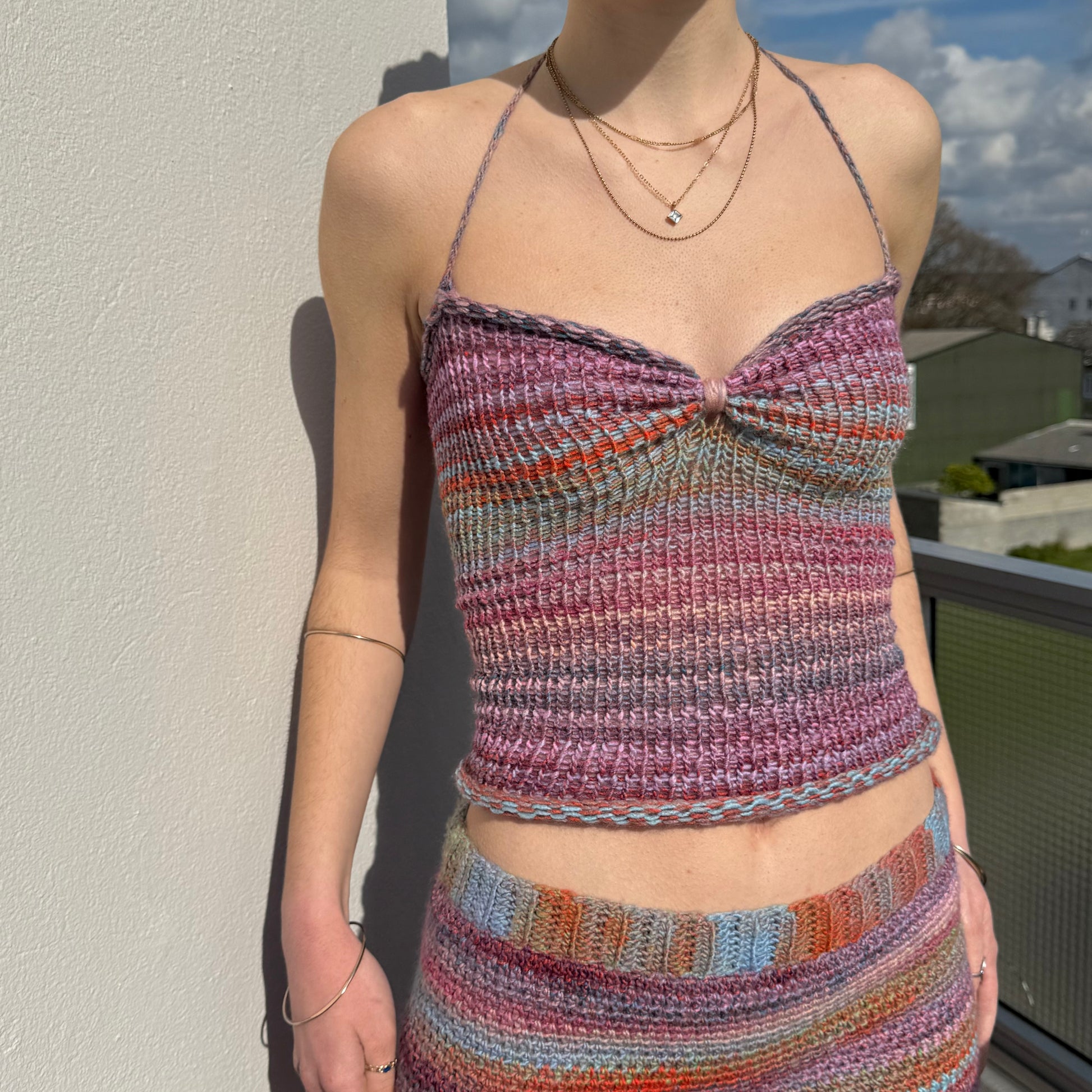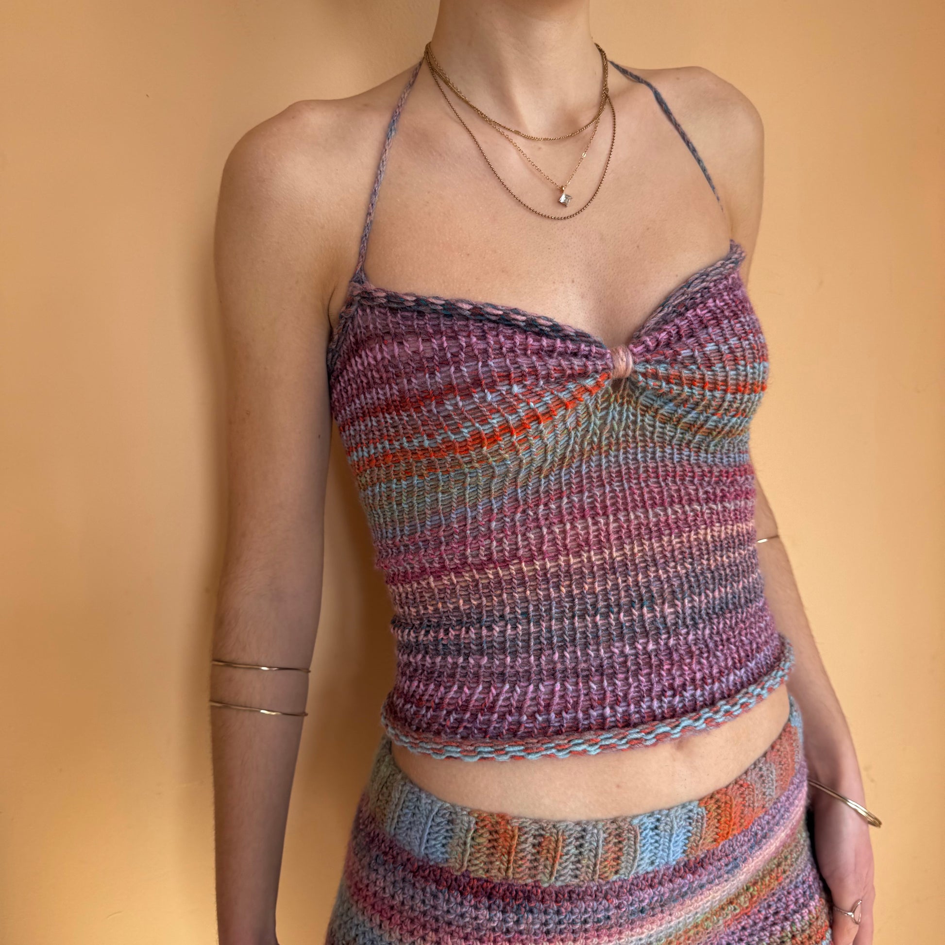 Ombré rainbow striped knit halter top with ruched bust detail 💗