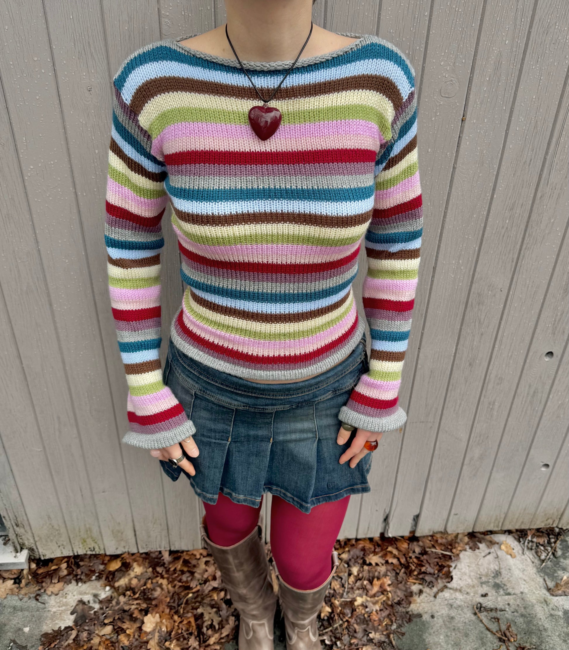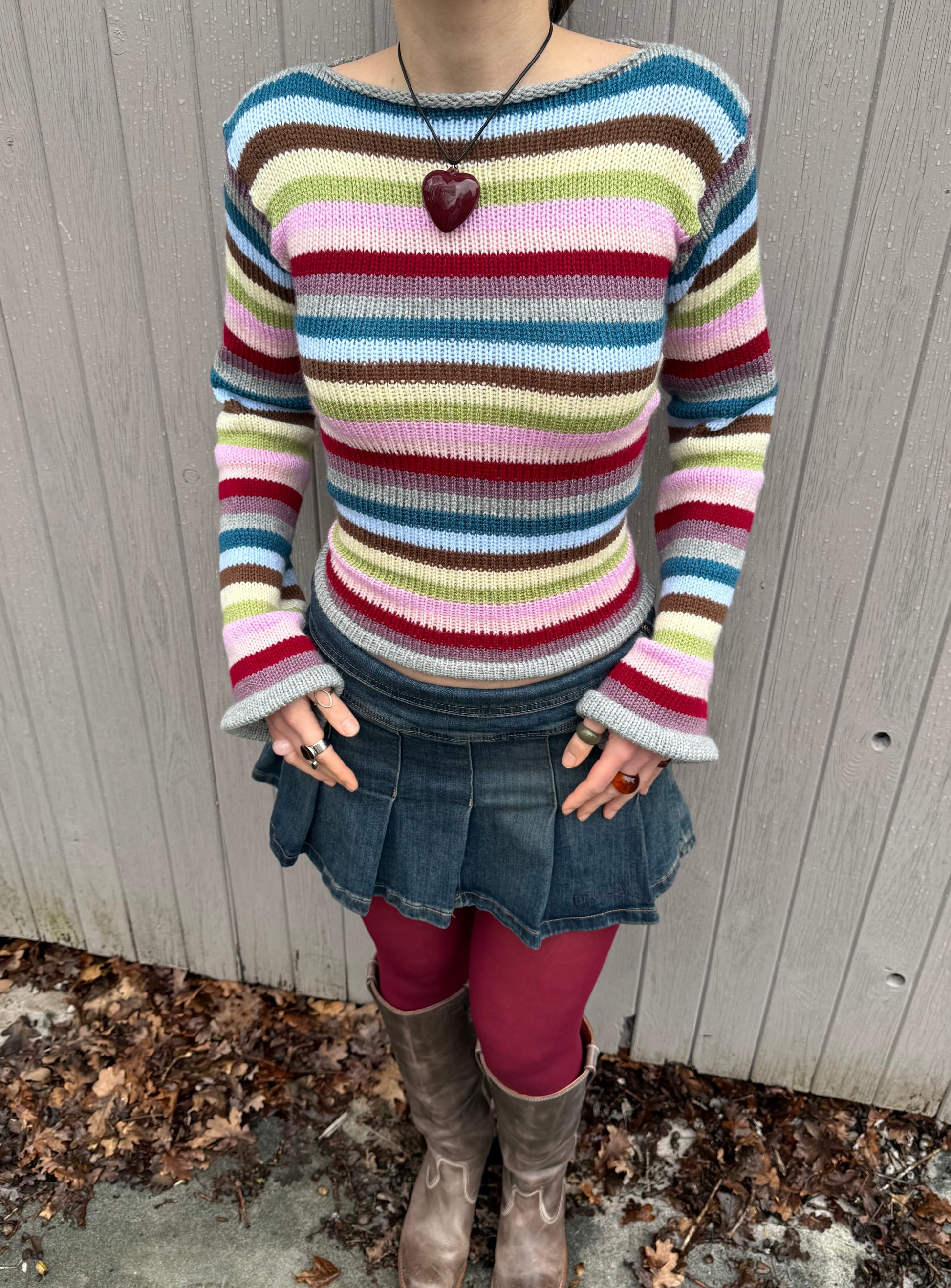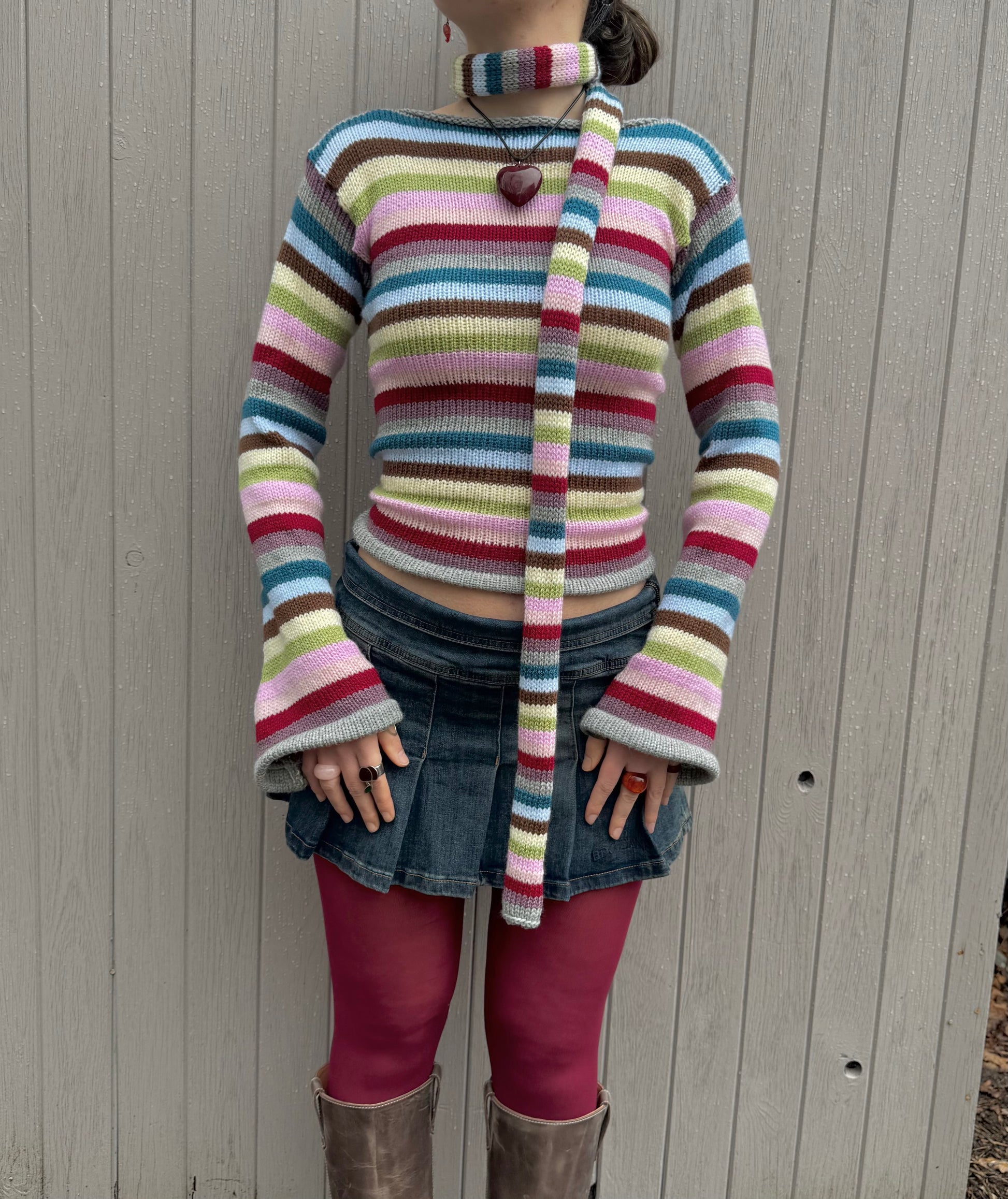 The cuutest early 00s inspired striped sweater to match our much loved multicoloured striped skinny scarf! 🍭