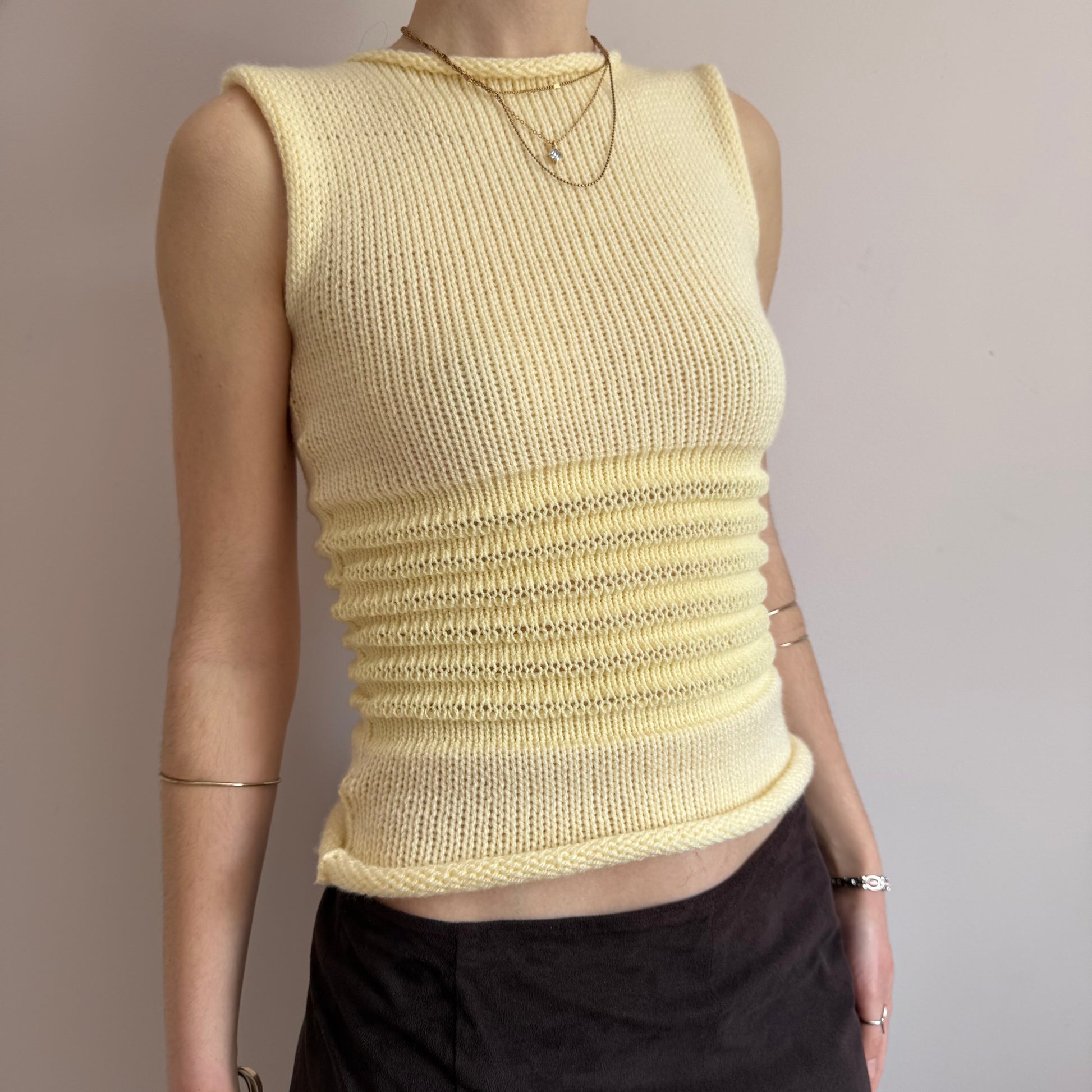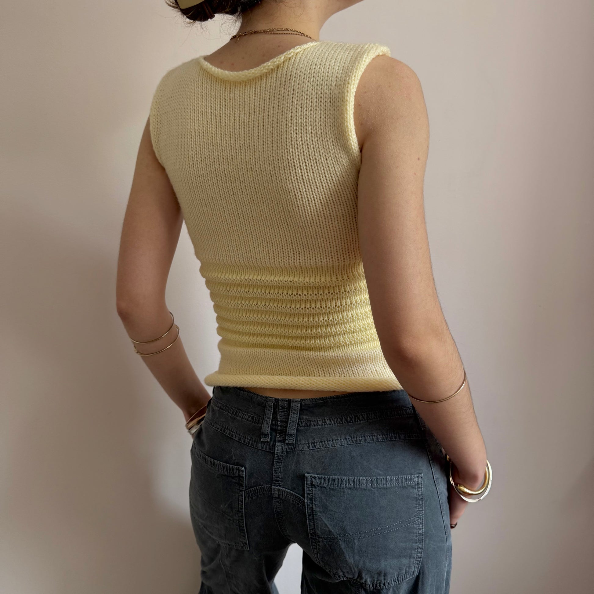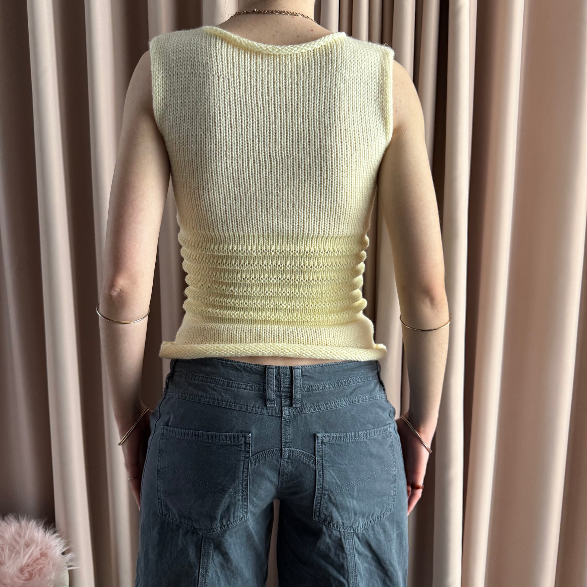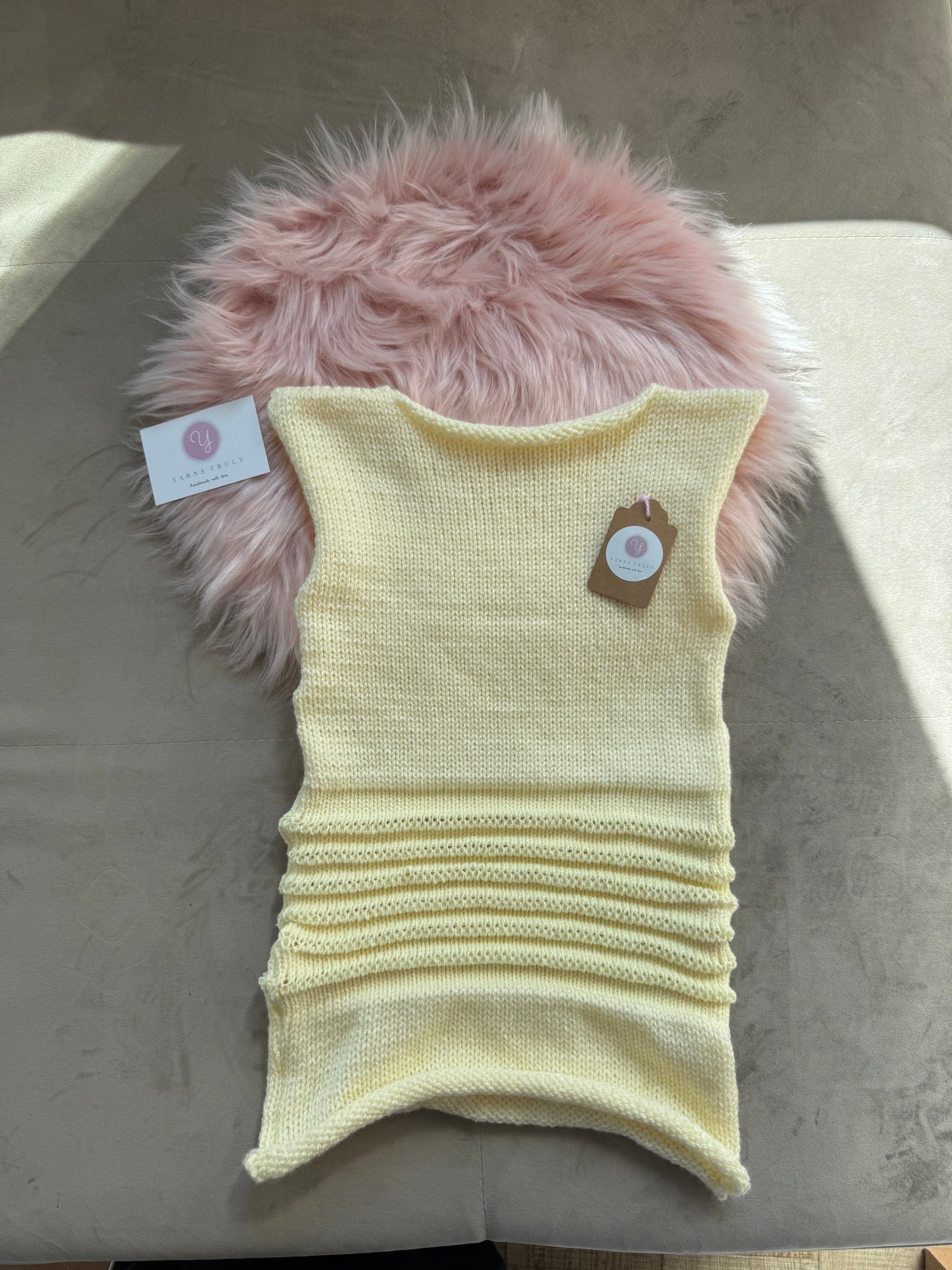 Handmade light butter yellow knit vest with shirred / ruched effect