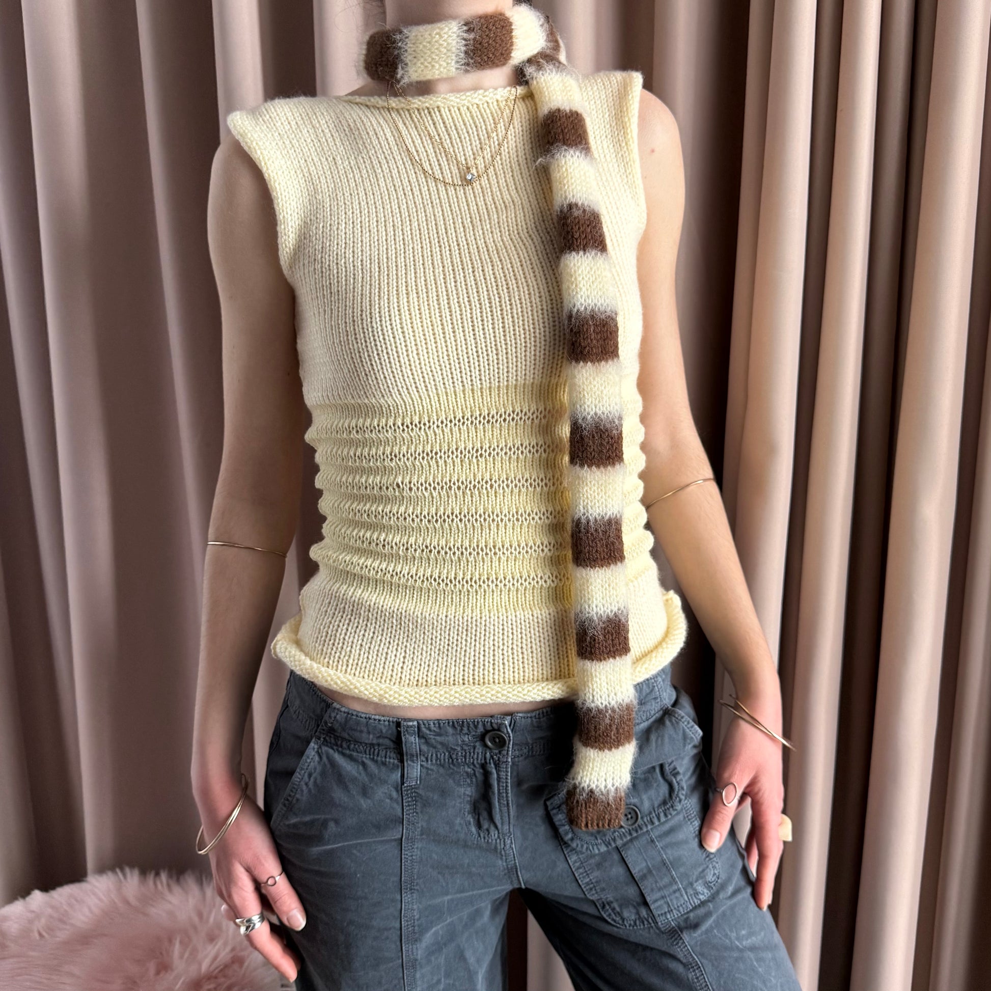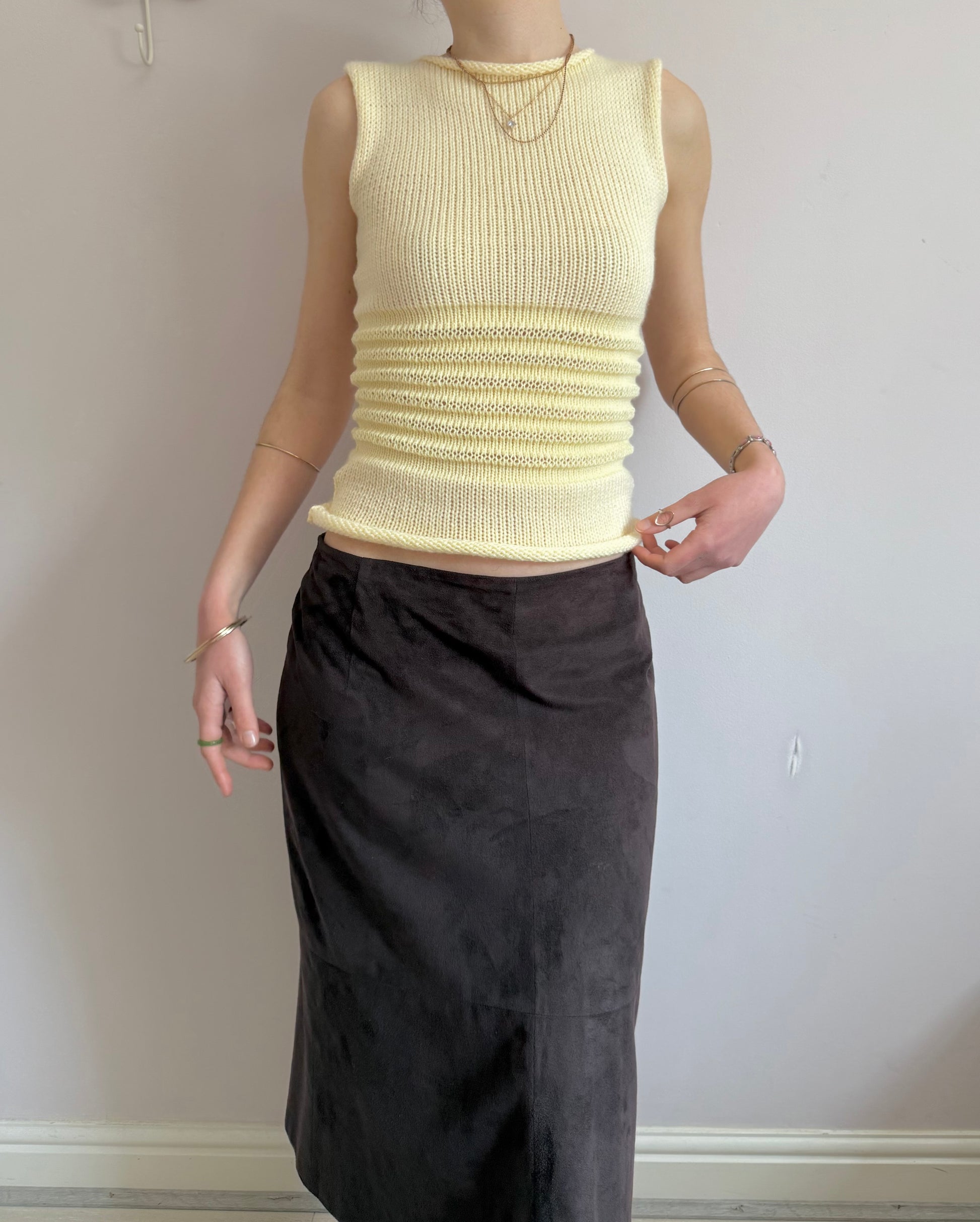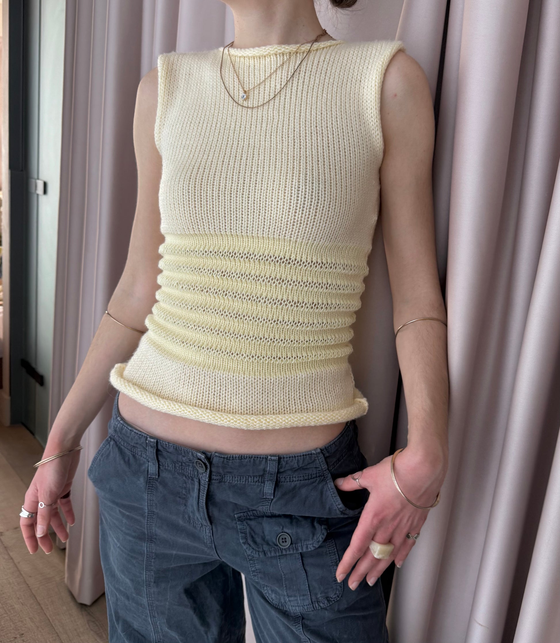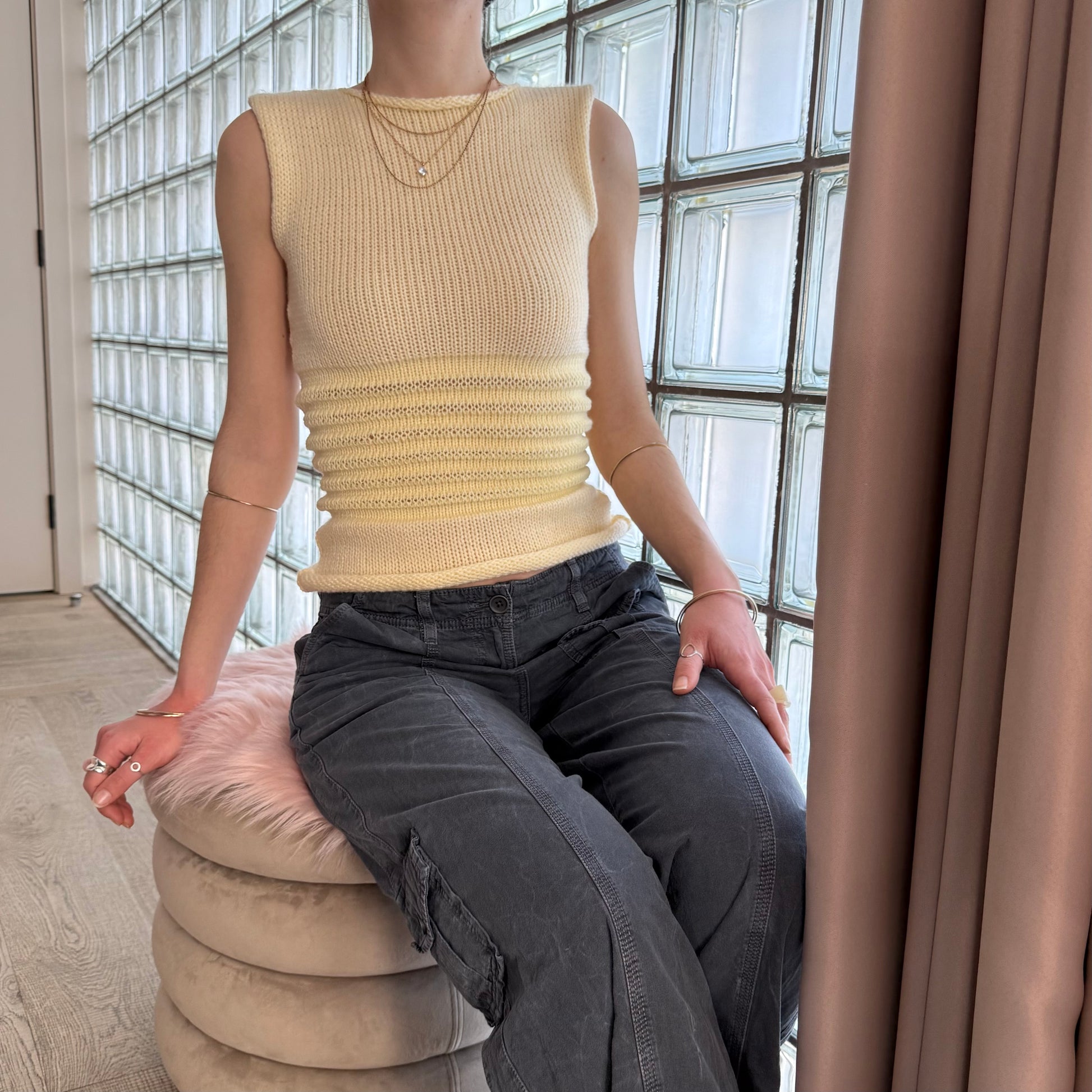 Handmade light butter yellow knit vest with shirred / ruched effect