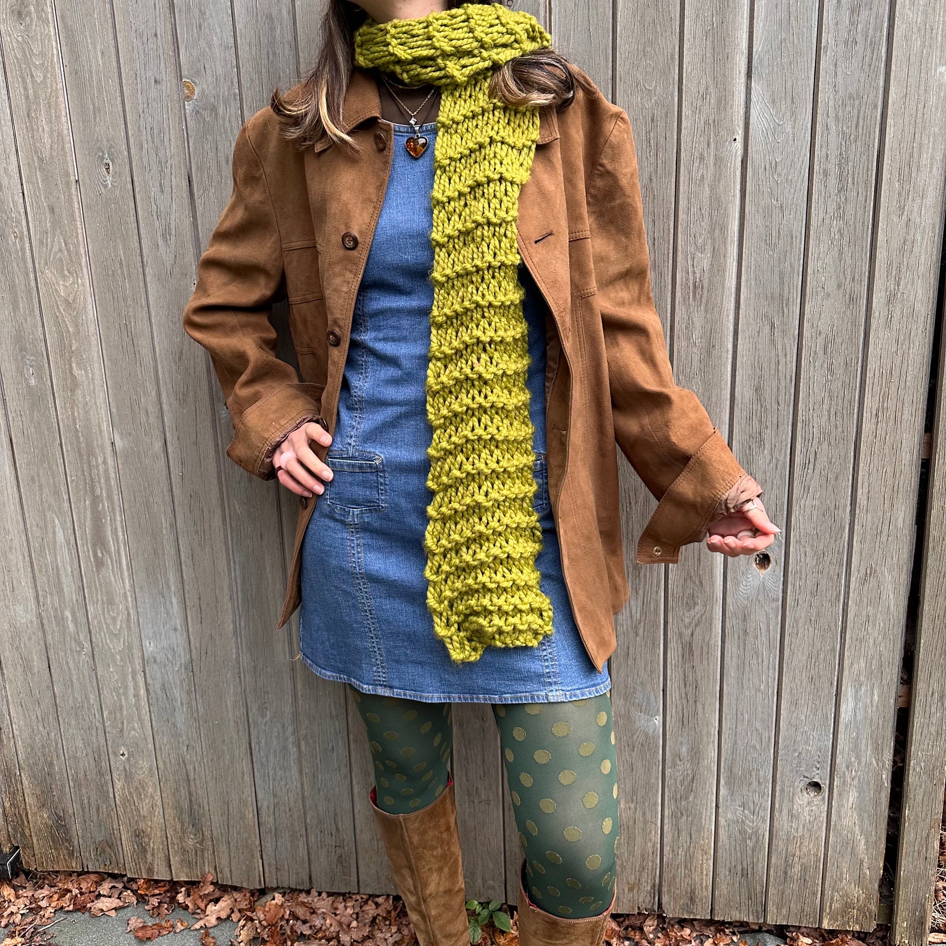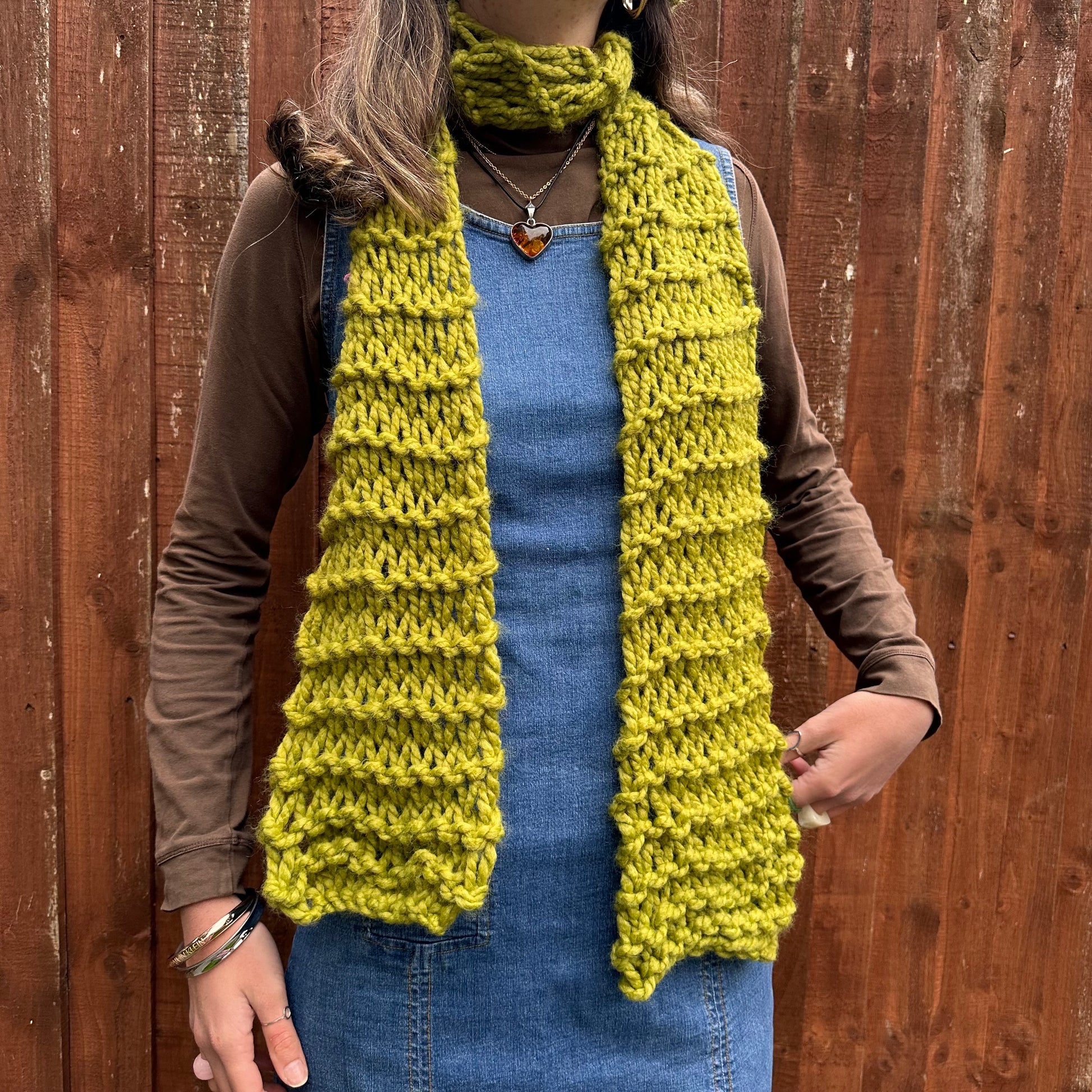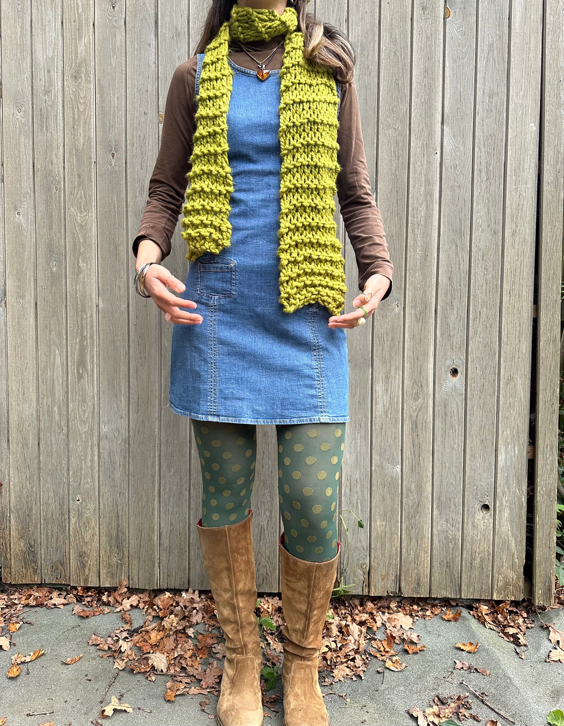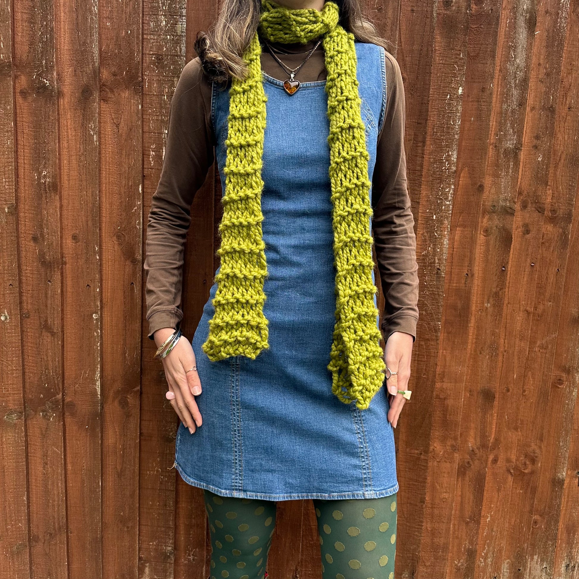 Hand-knitted fishnet style chunky knit scarf in olive green 🍃🧚🏼