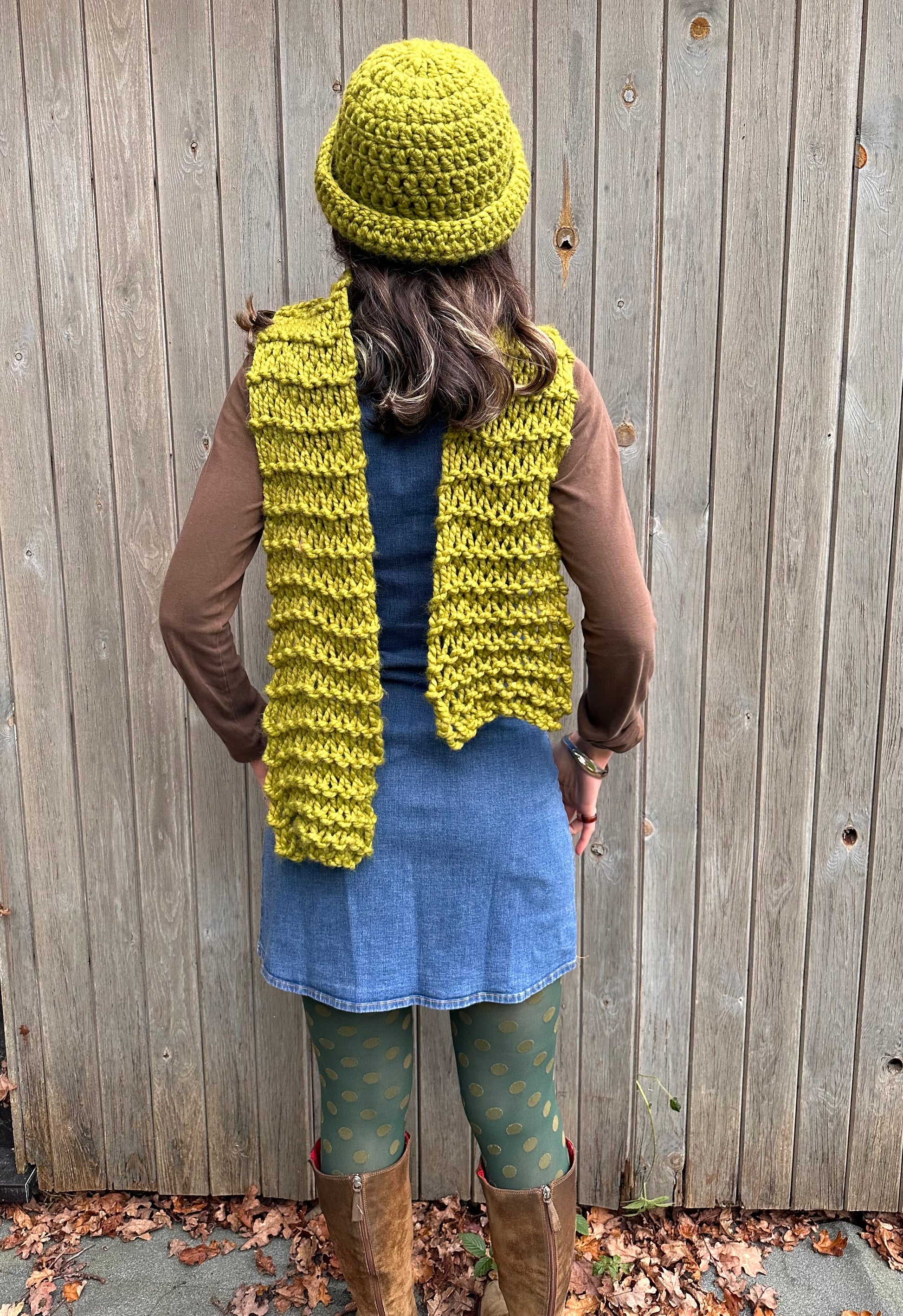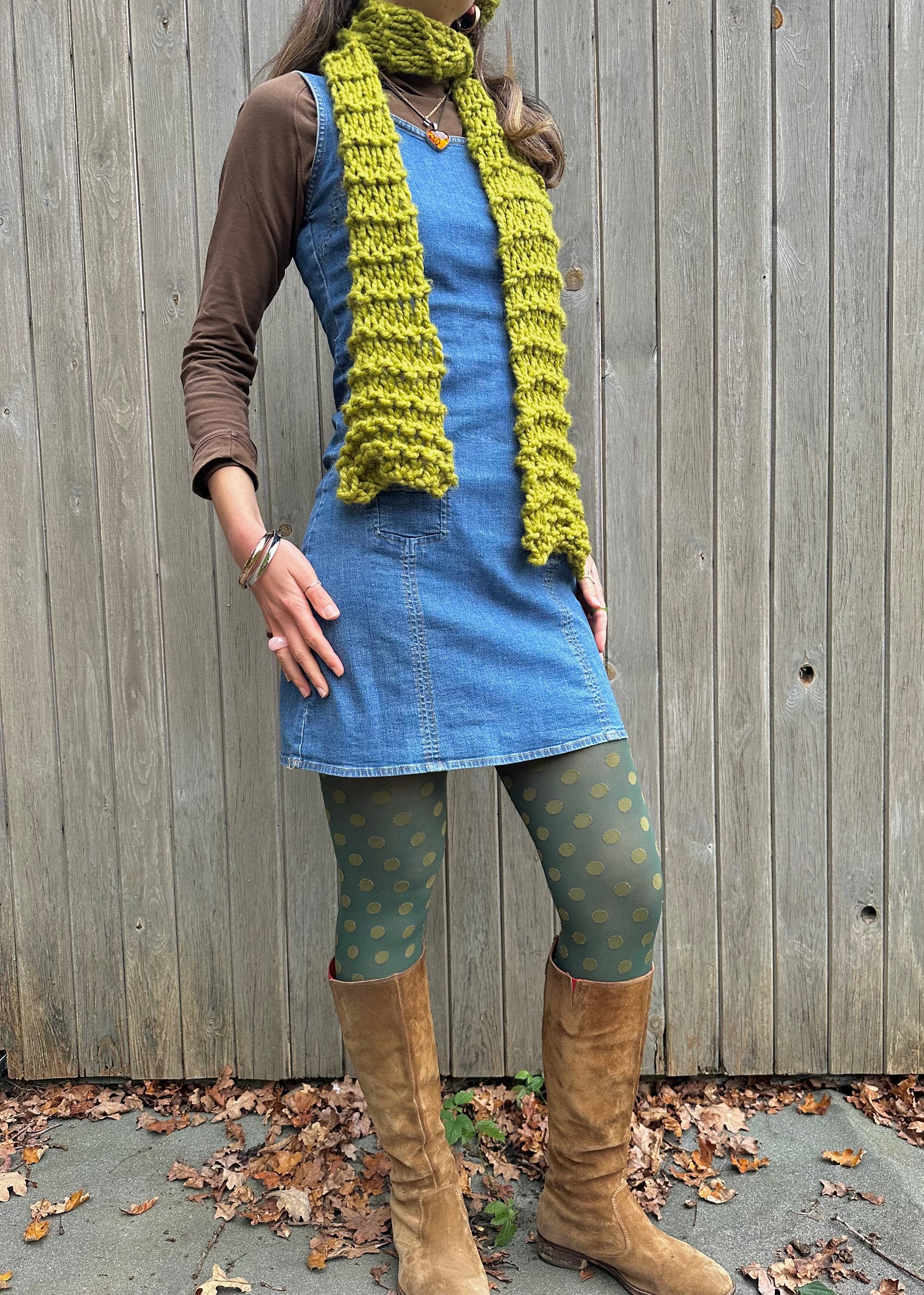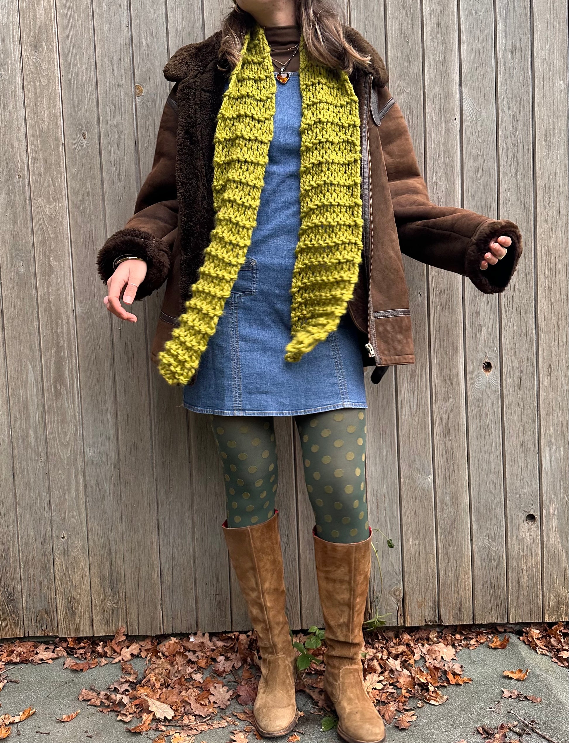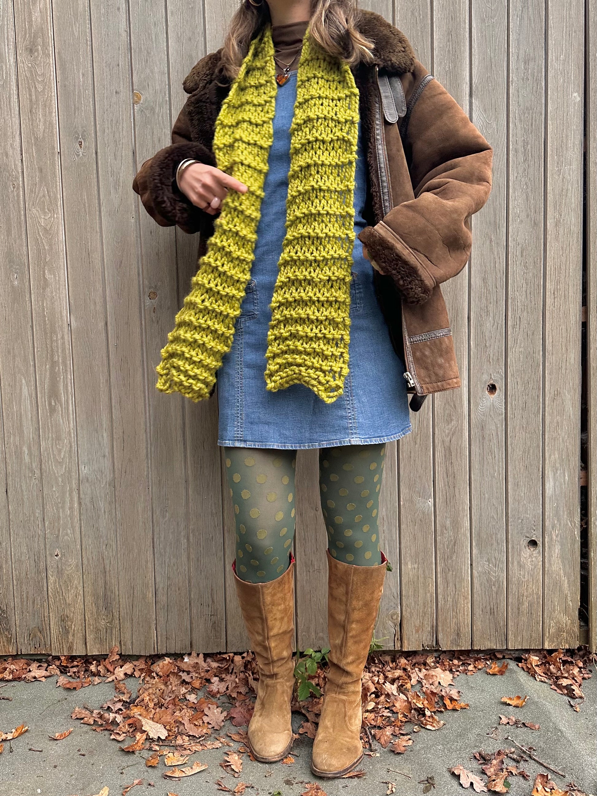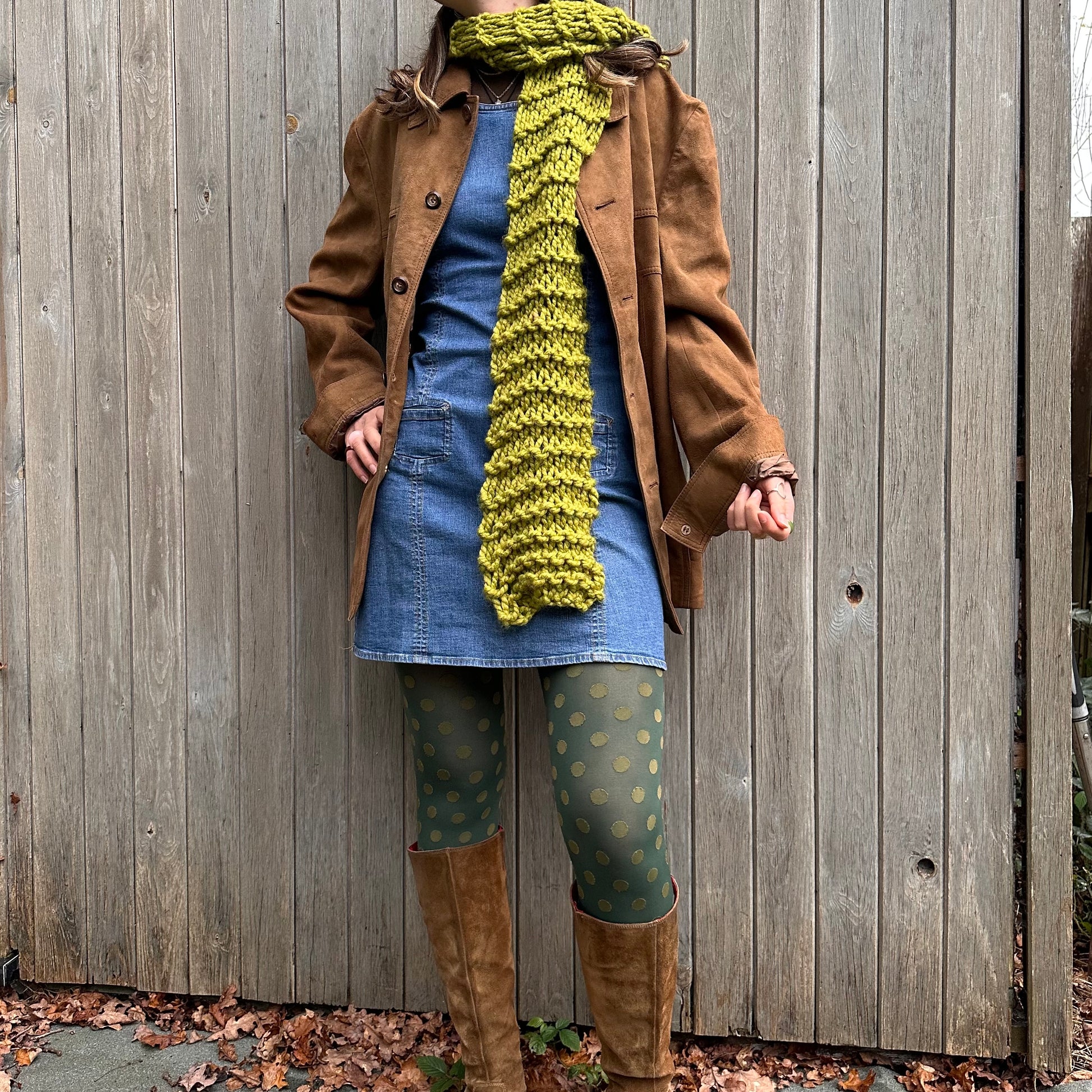 Hand-knitted fishnet style chunky knit scarf in olive green 🍃🧚🏼