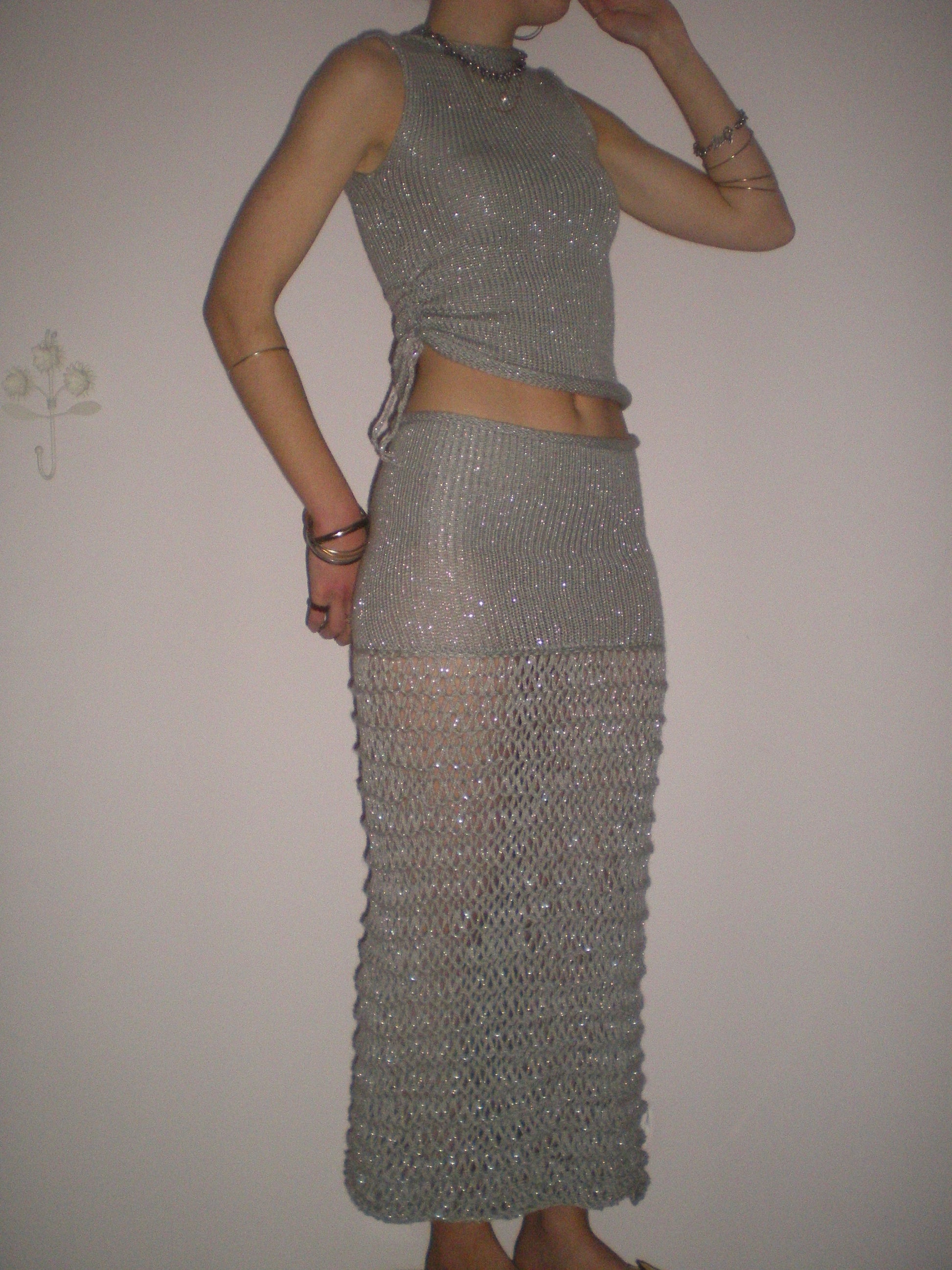 The cutest glittery knit vest with adjustable drawstring ruched side in classic silver 🪩