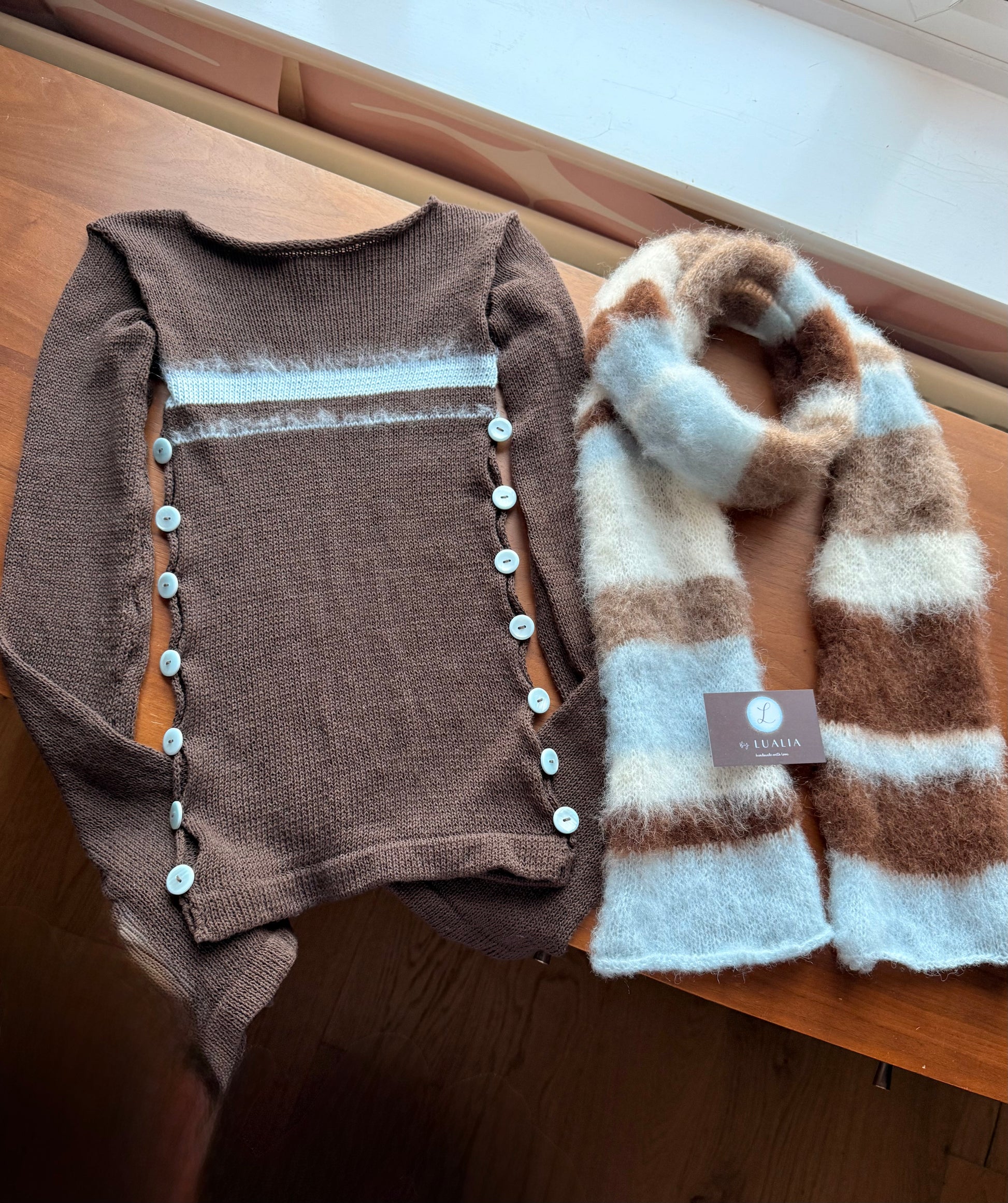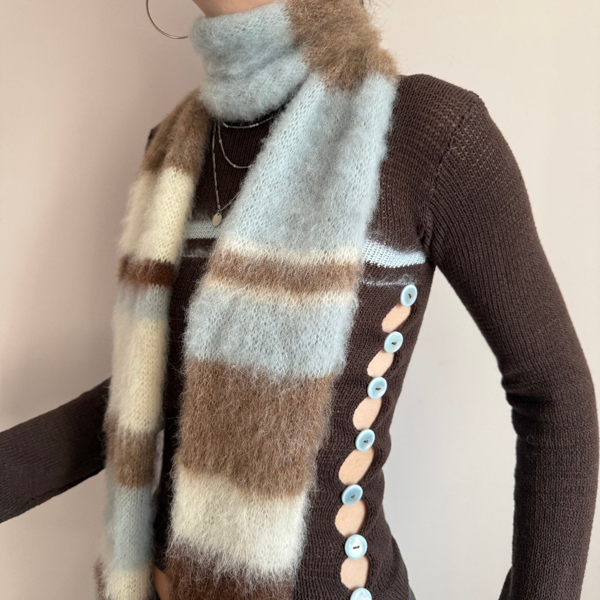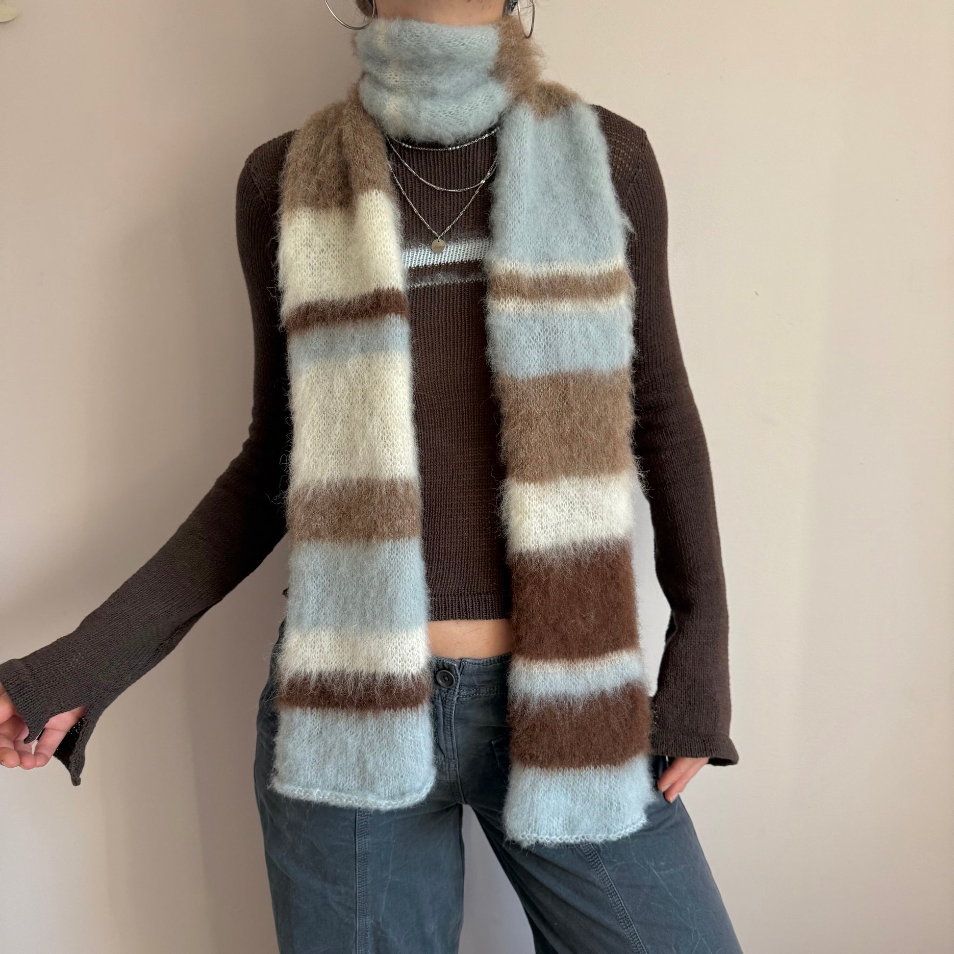 Wider knit mohair stripy scarf in the coolest colour combo 🍪🩵🍨
