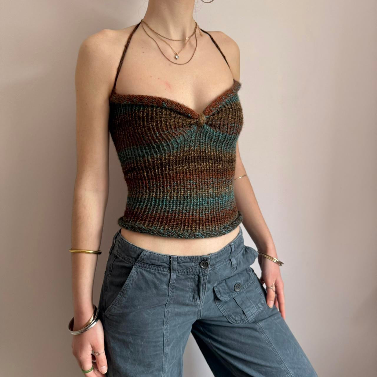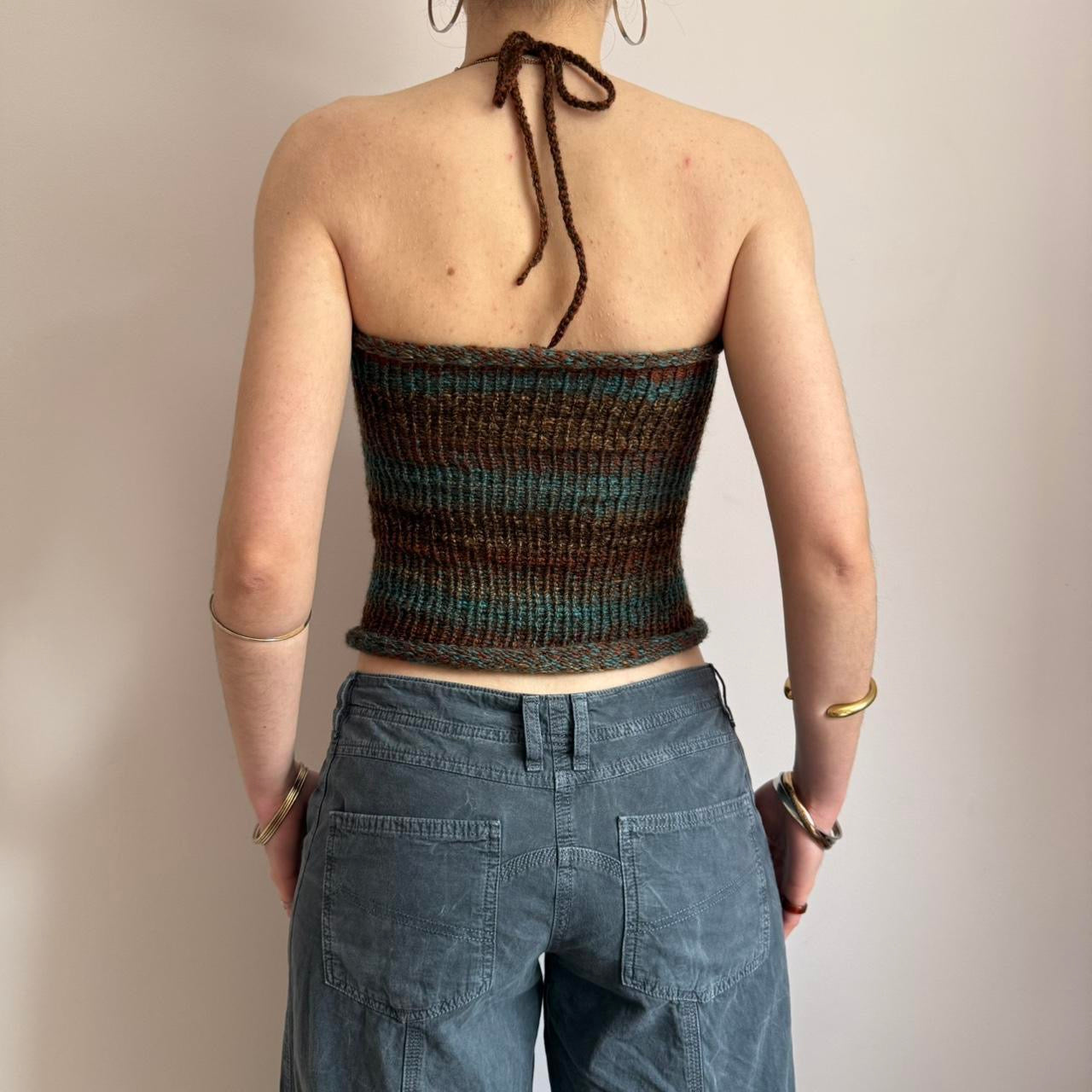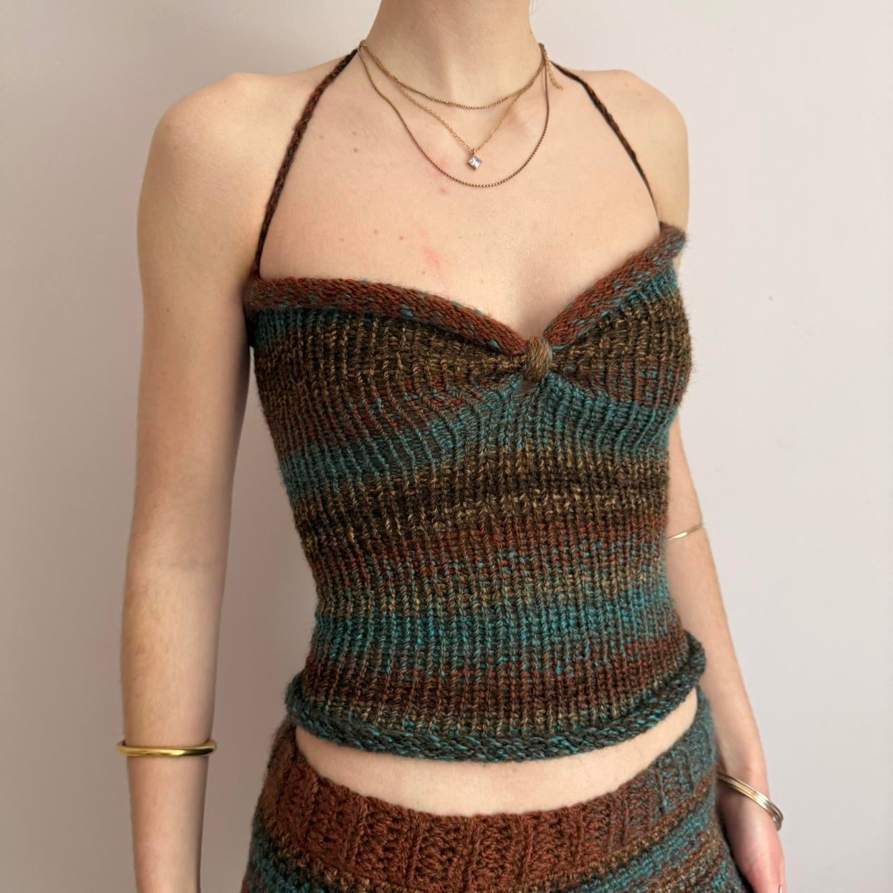 Ombré striped brown and blue knit halter top with ruched bust detail 🦋 Fairy vibes - so perfect for spring and summer!