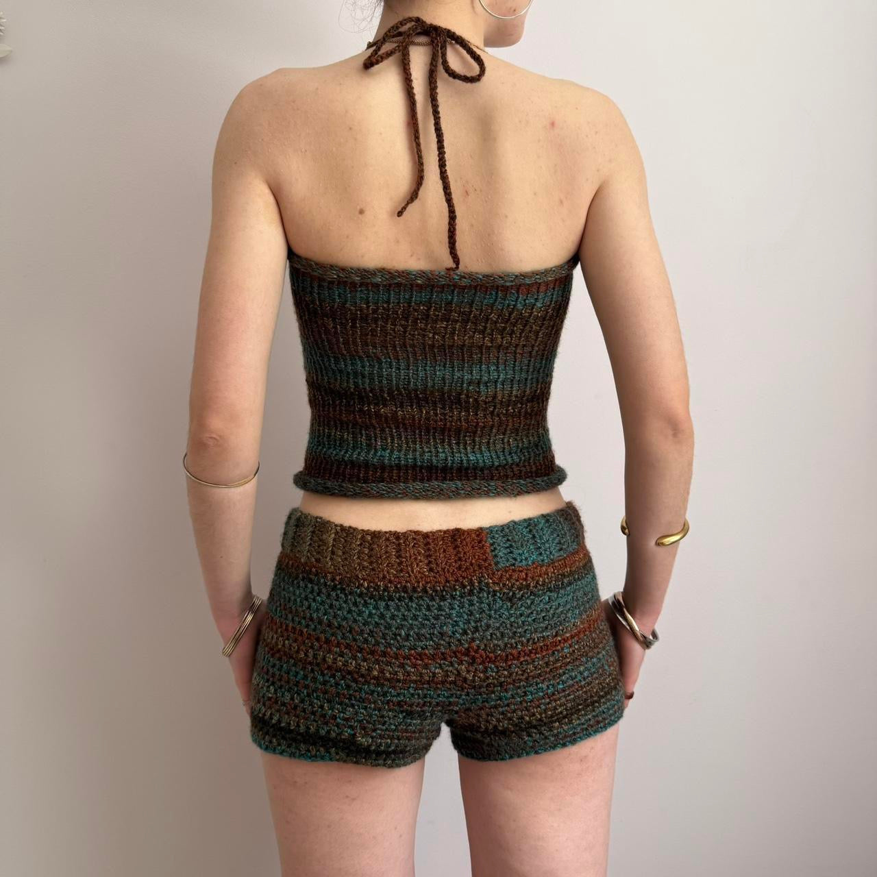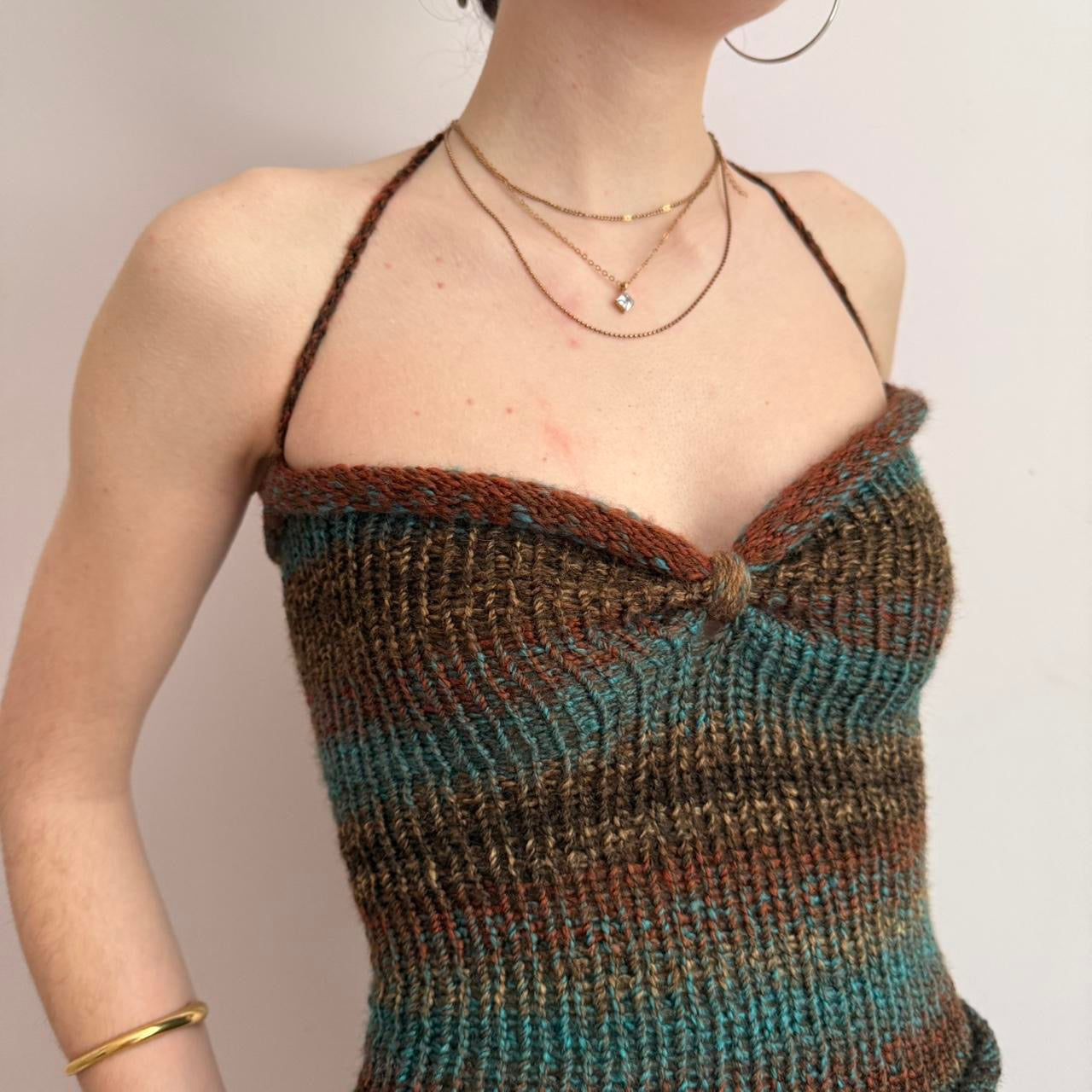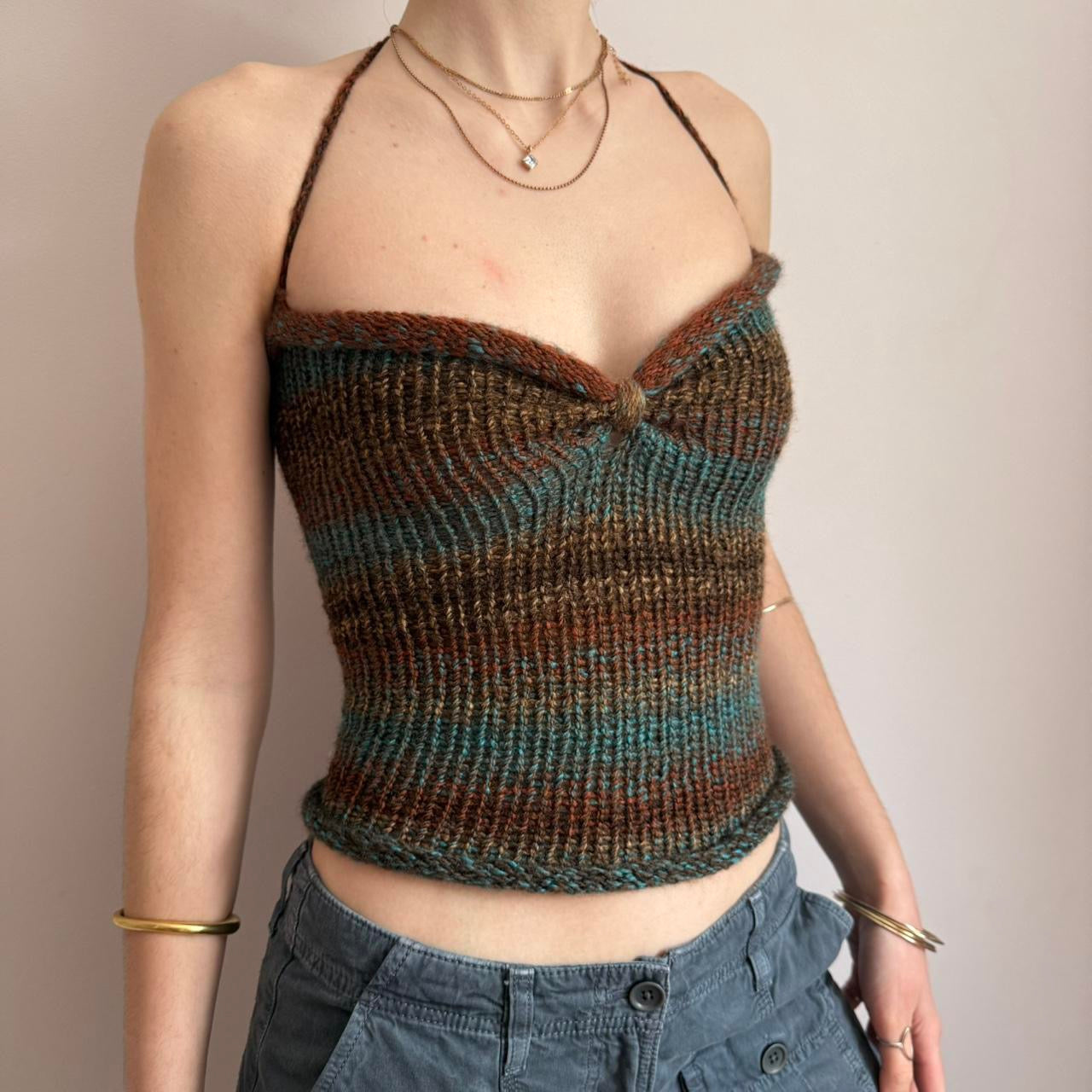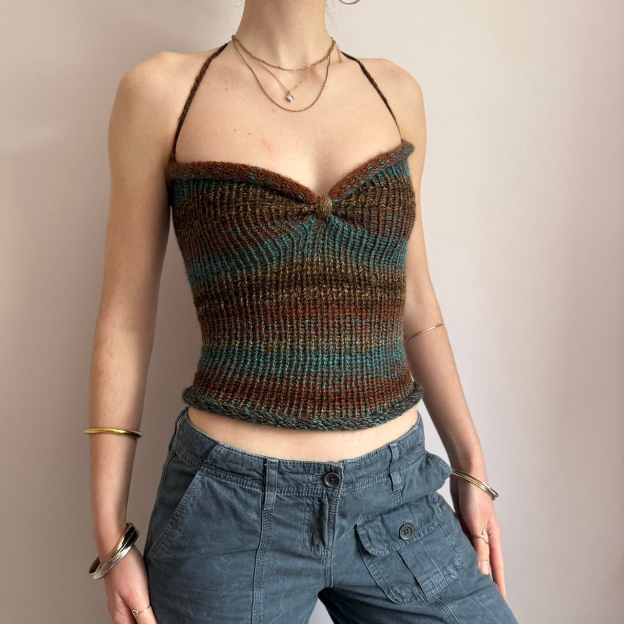 Ombré striped brown and blue knit halter top with ruched bust detail 🦋 Fairy vibes - so perfect for spring and summer!