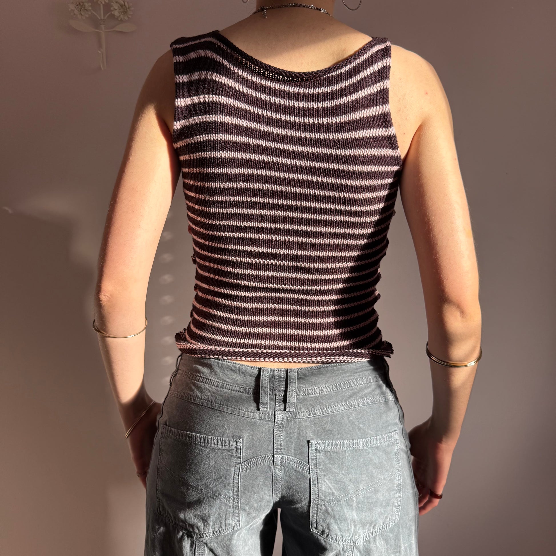 Handmade knitted Pearl Vest - aubergine and dusky pink striped (pre made in size XS).
