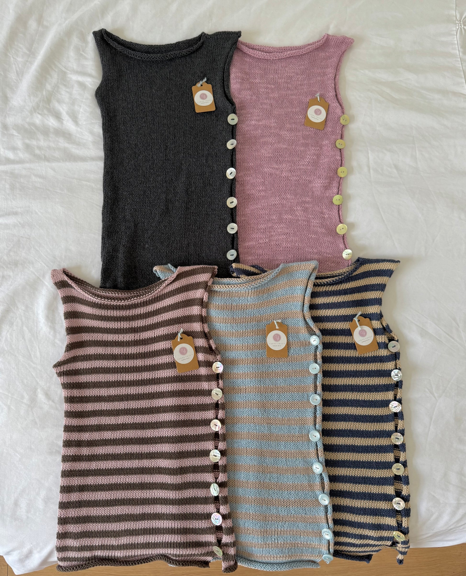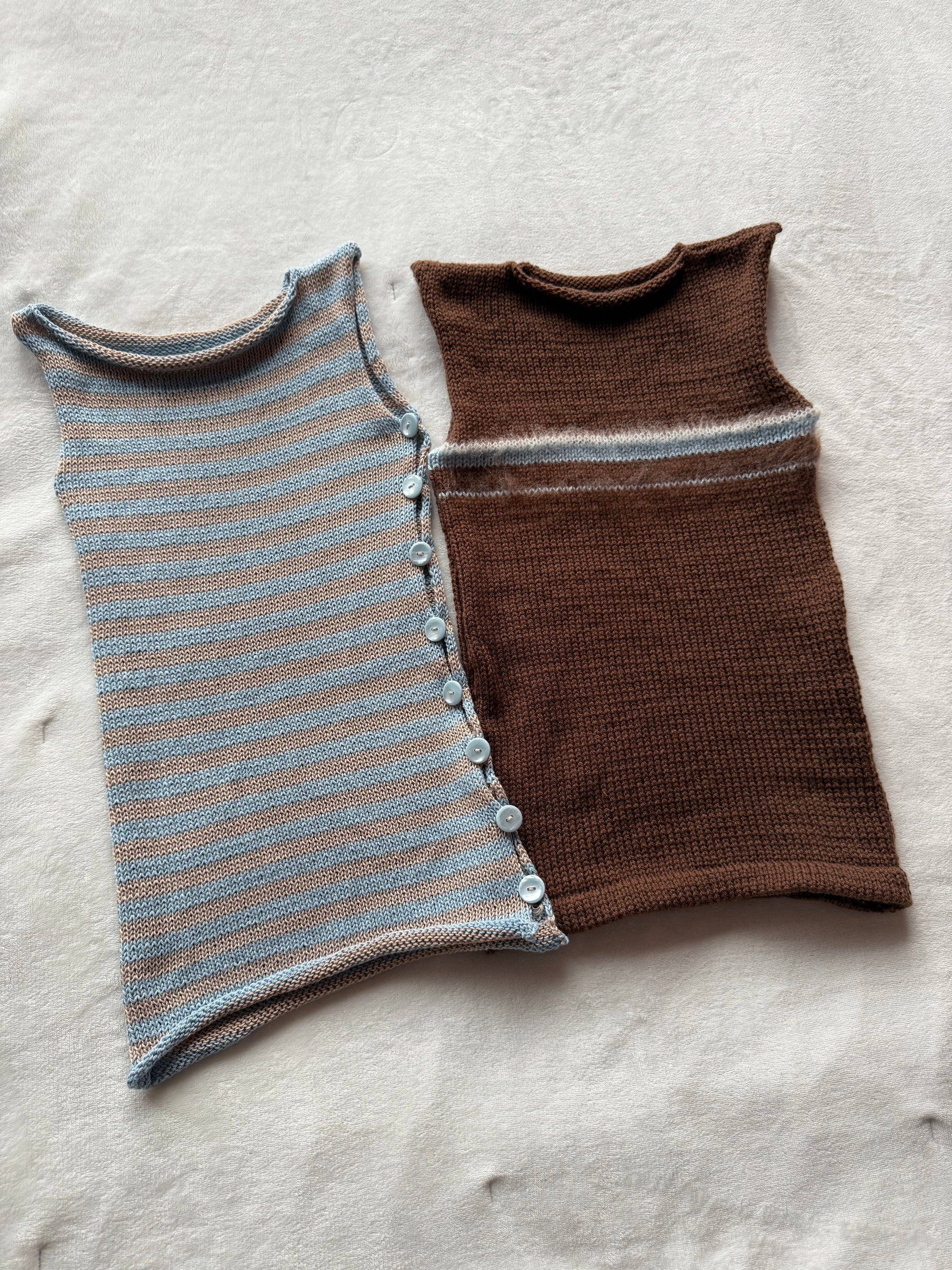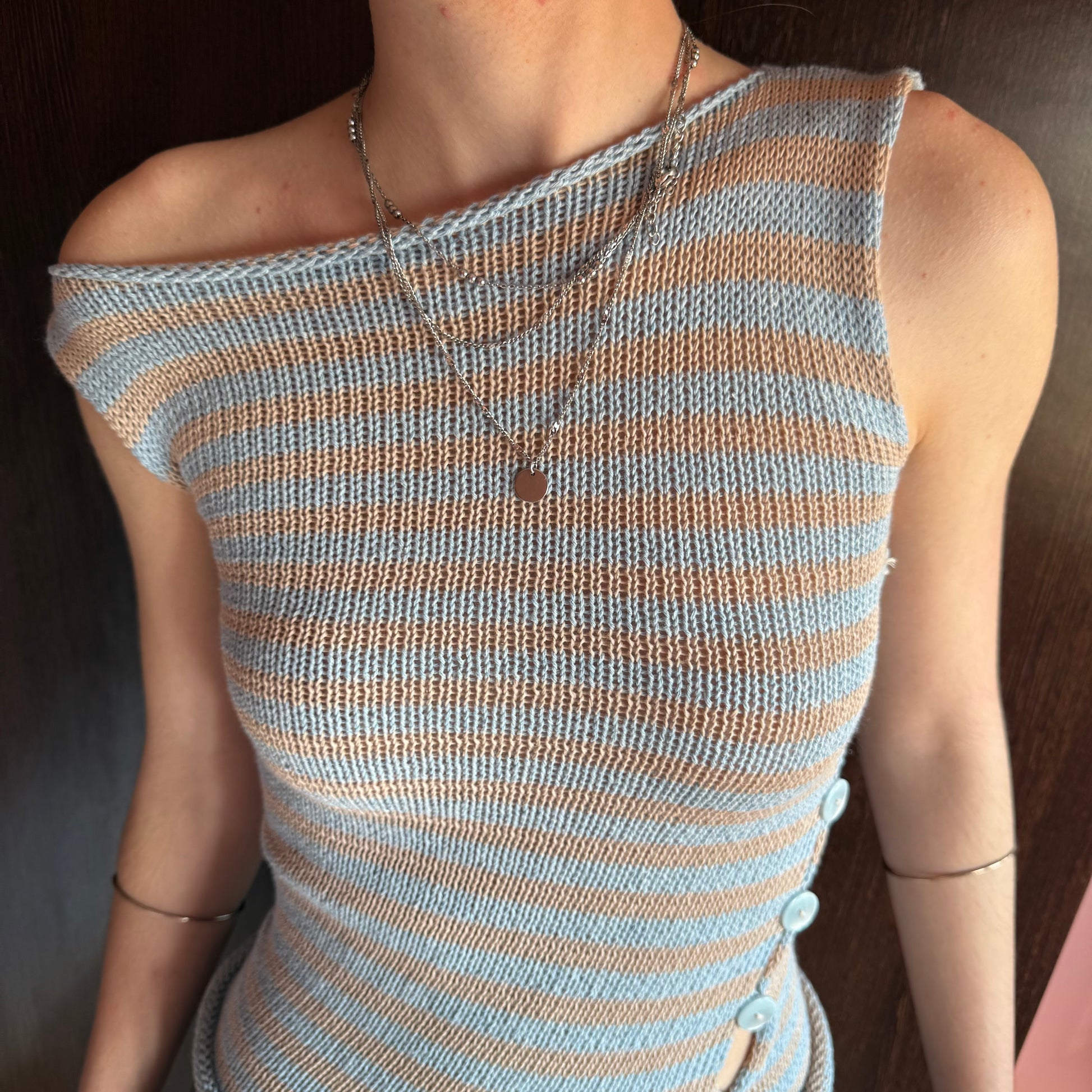 Handmade knitted Pearl Vest - baby blue and beige striped (pre made in size S).