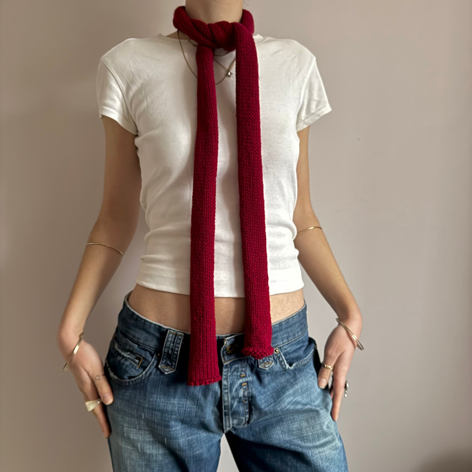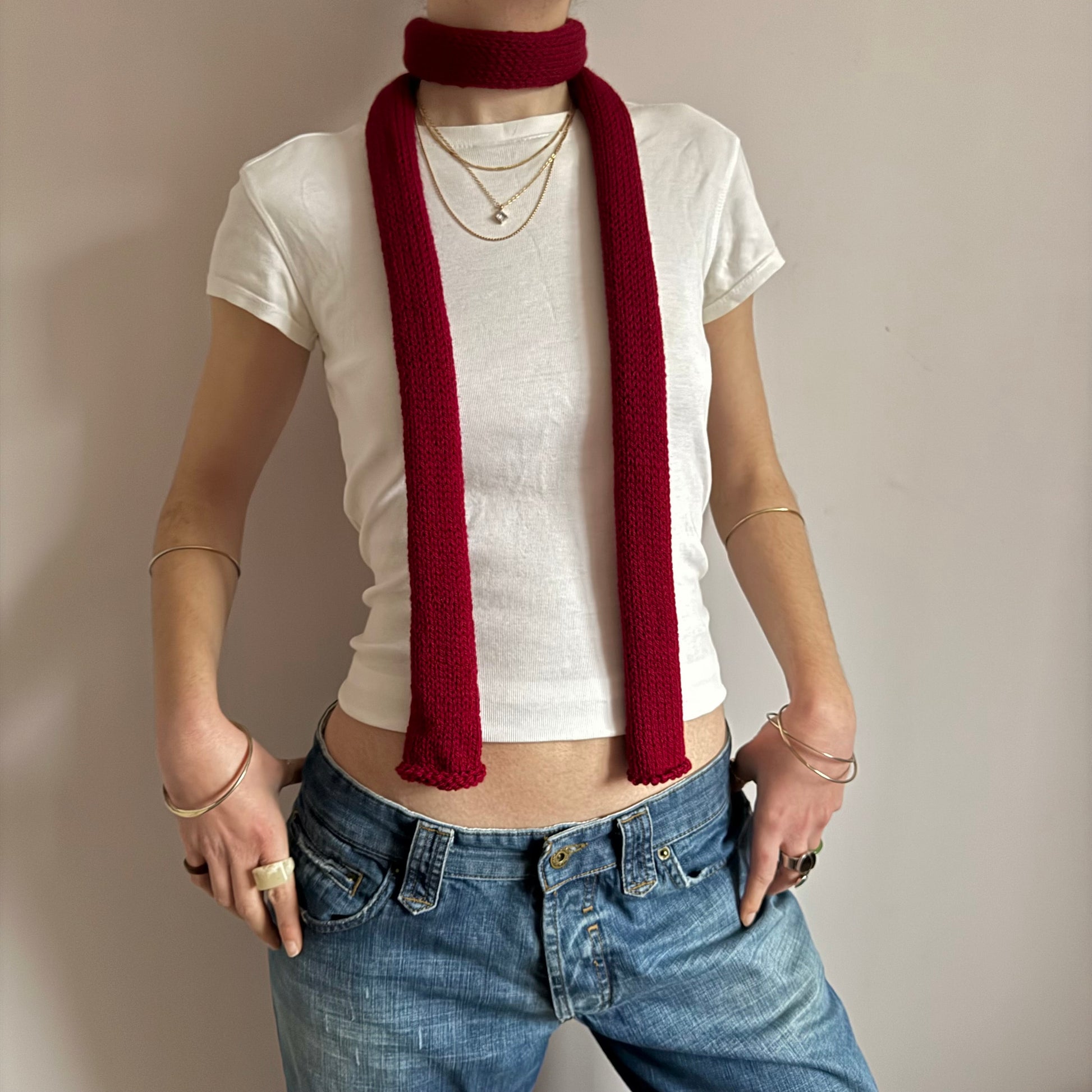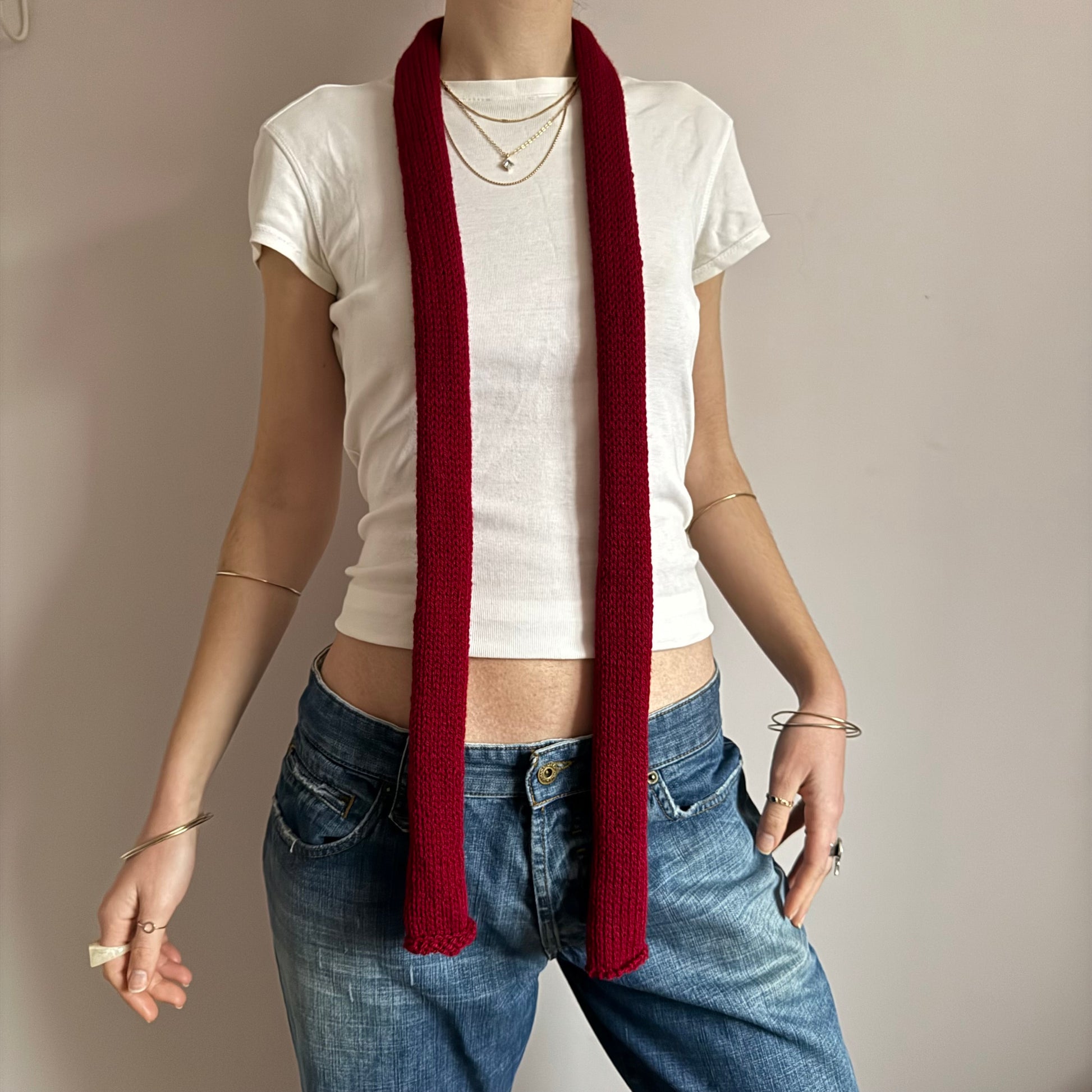 Knit skinny scarf in dark red, the perfect addition to your outfit. Great for all year round! 💋