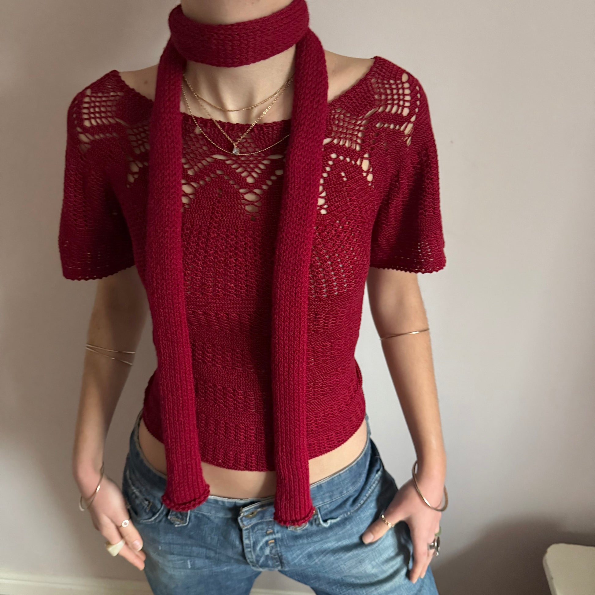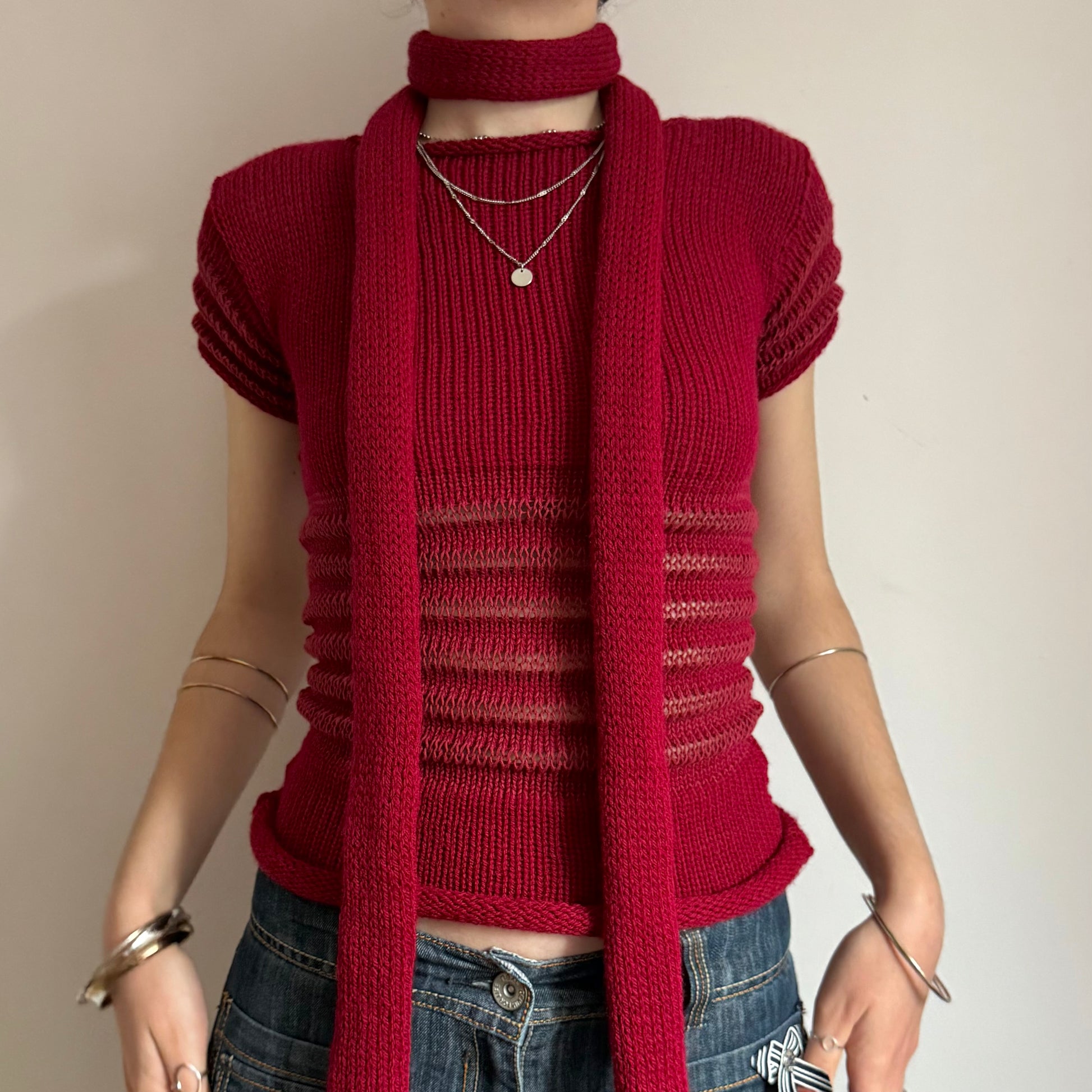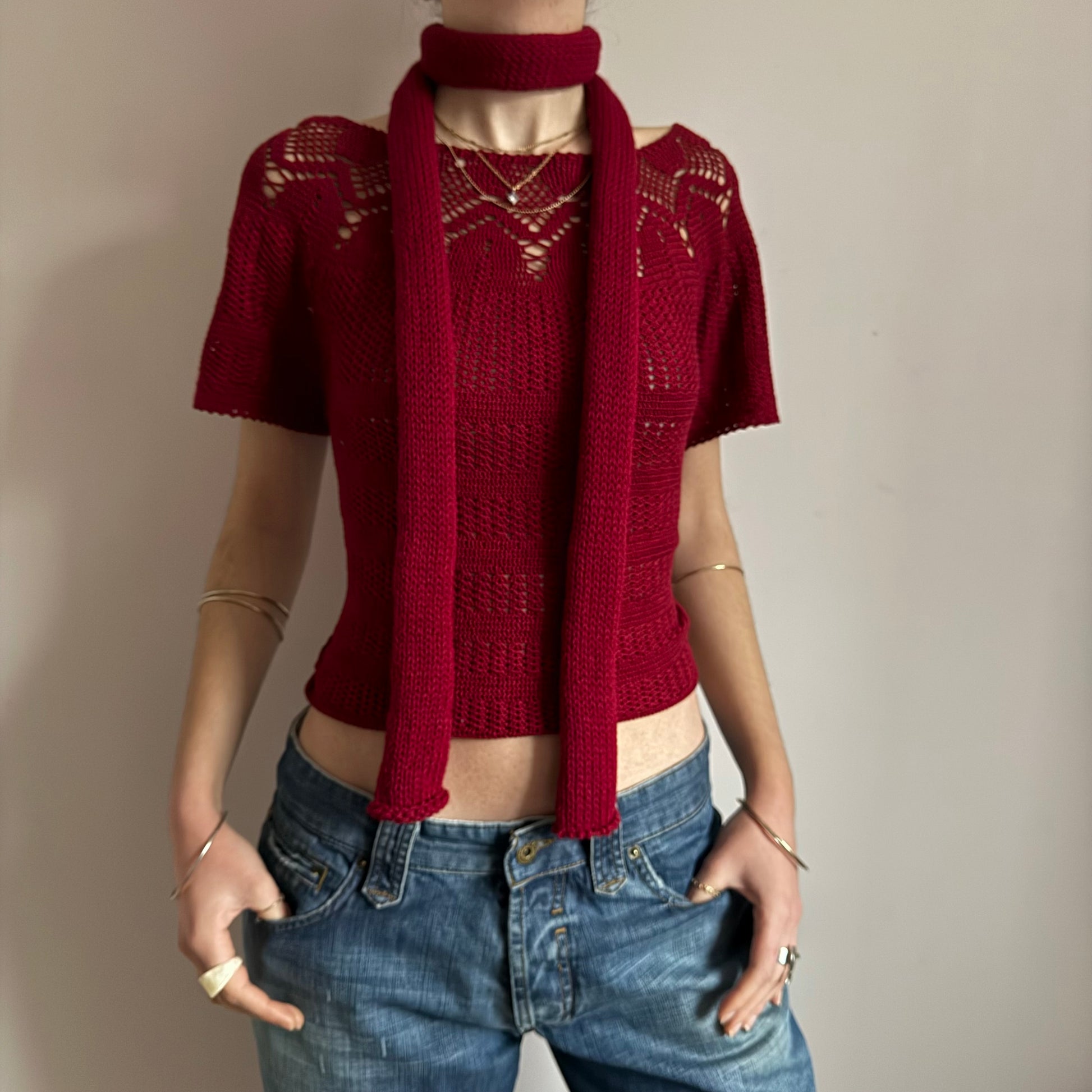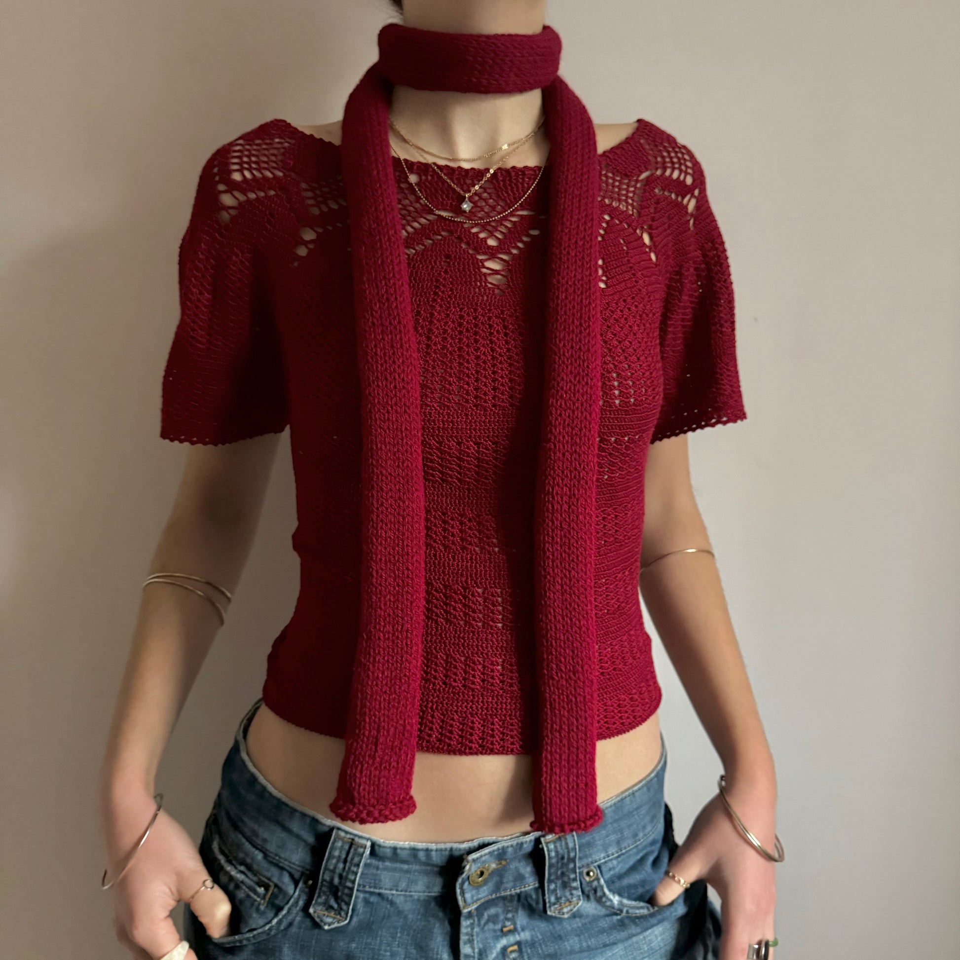 Knit skinny scarf in dark red, the perfect addition to your outfit. Great for all year round! 💋