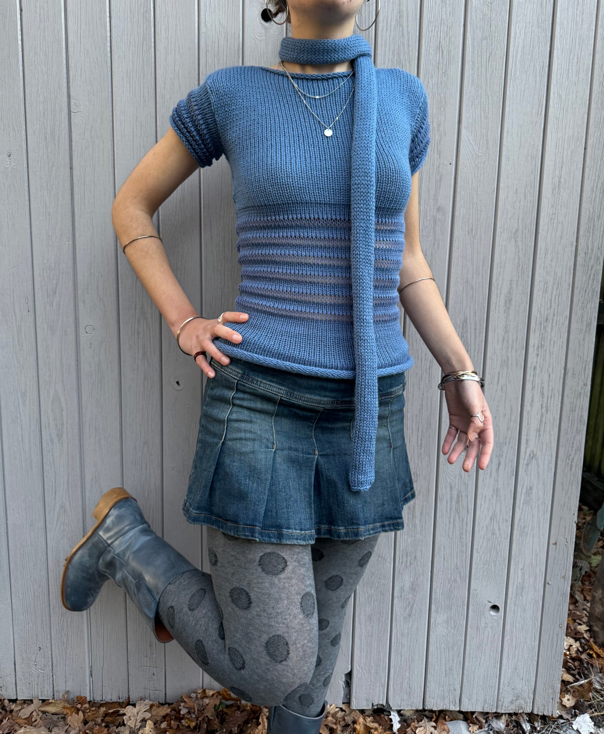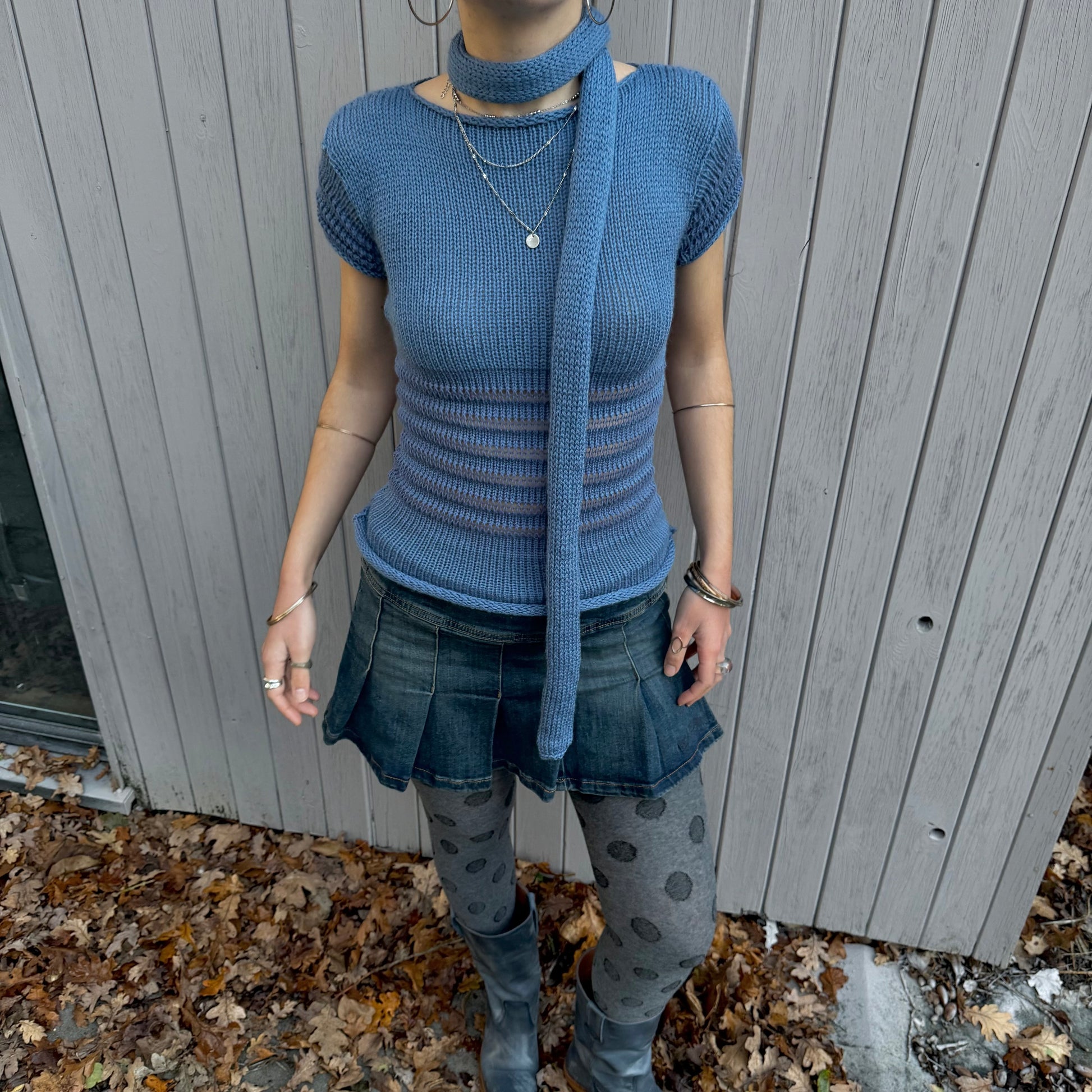 Knit skinny scarf in denim blue, the perfect addition to your outfit. Great for all year round! 💙