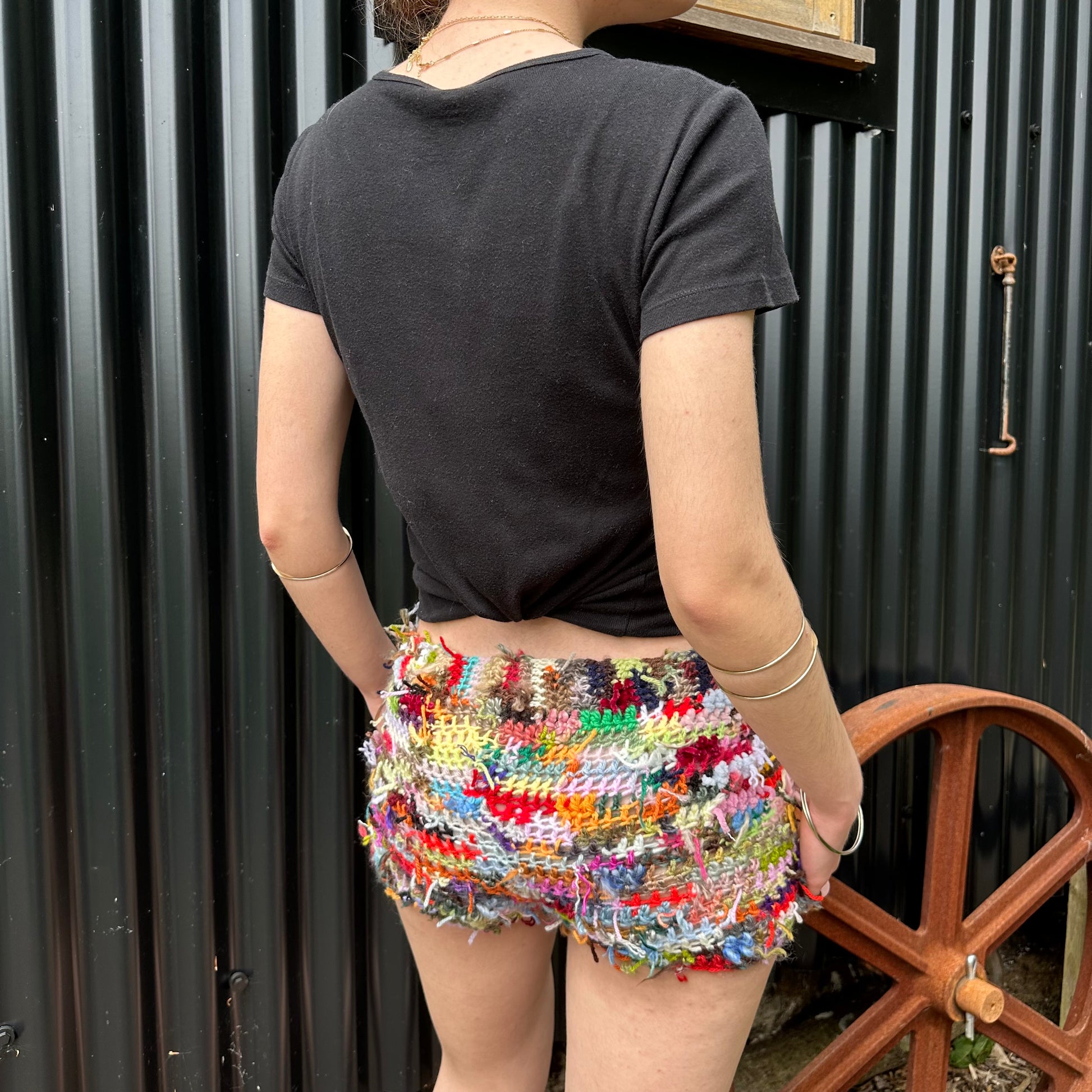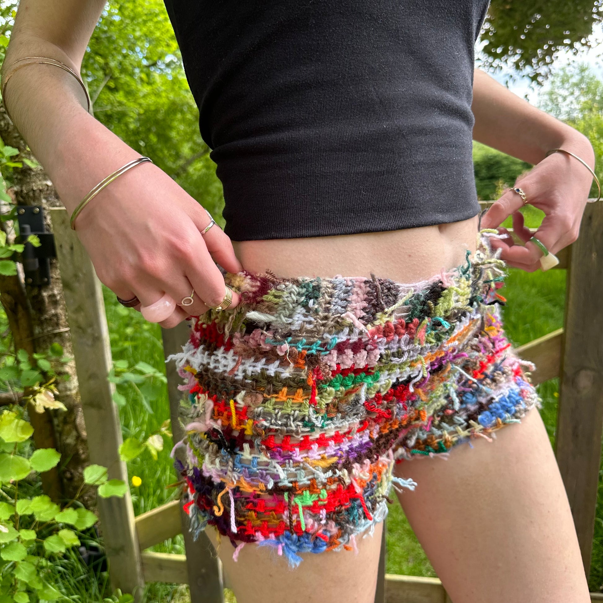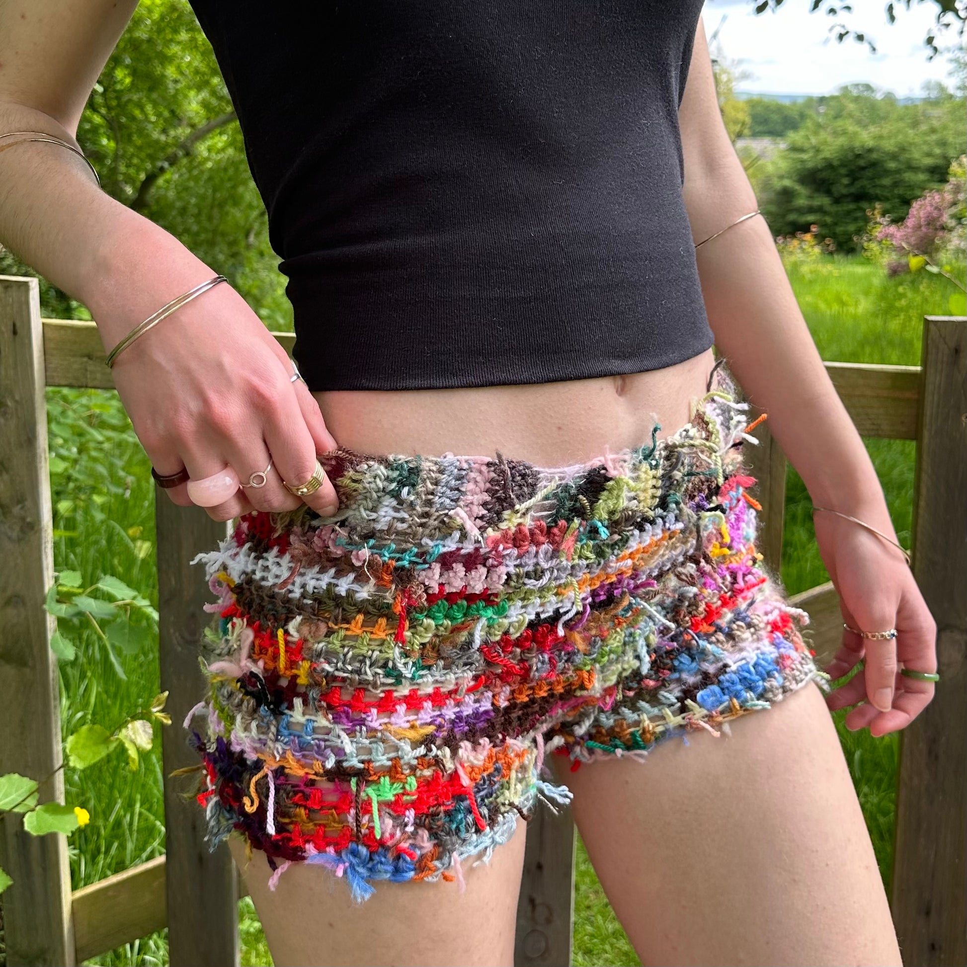 Handmade scrappy crochet shorts - 1 of 1, made of leftover yarn scraps