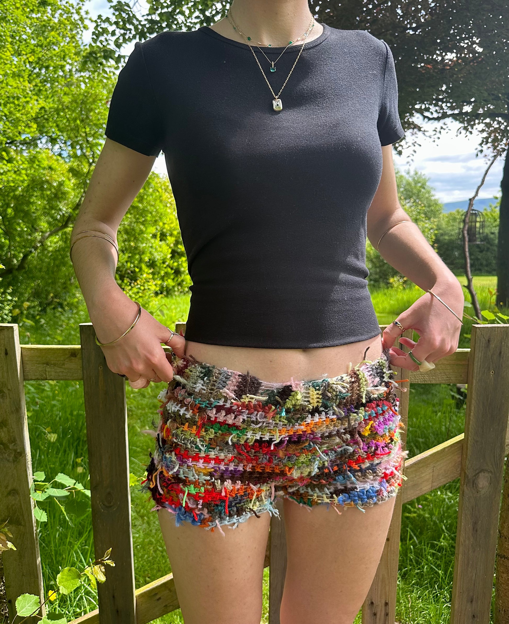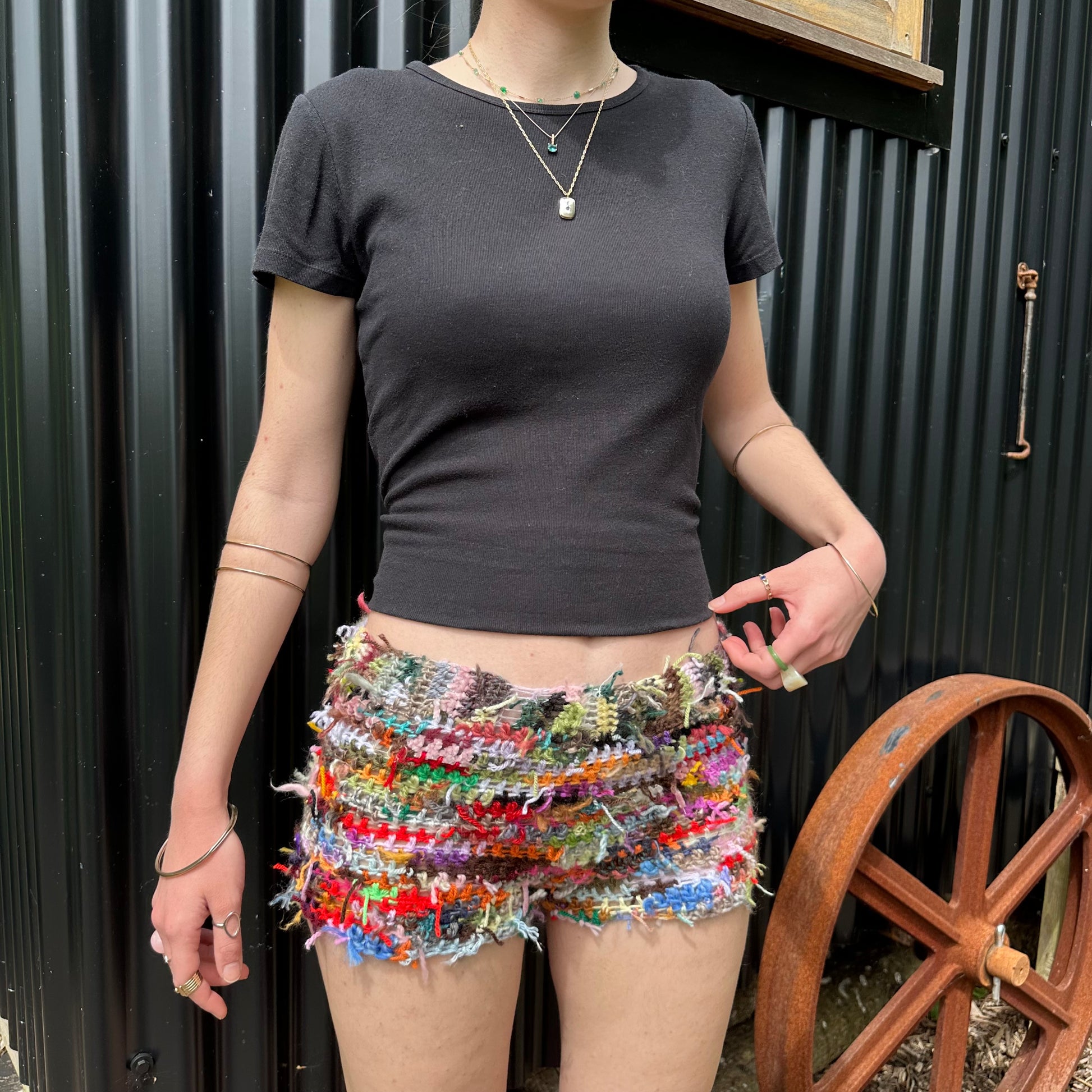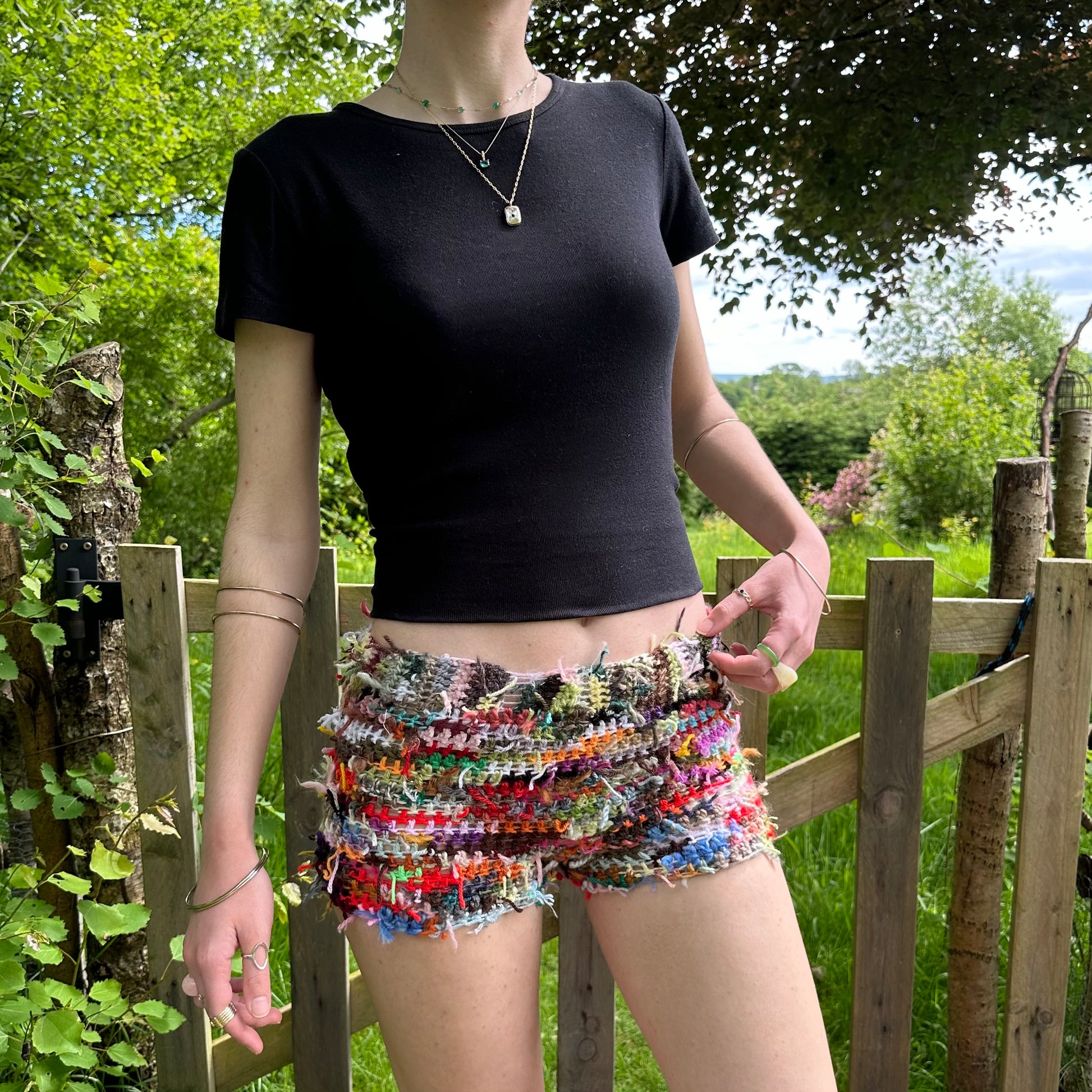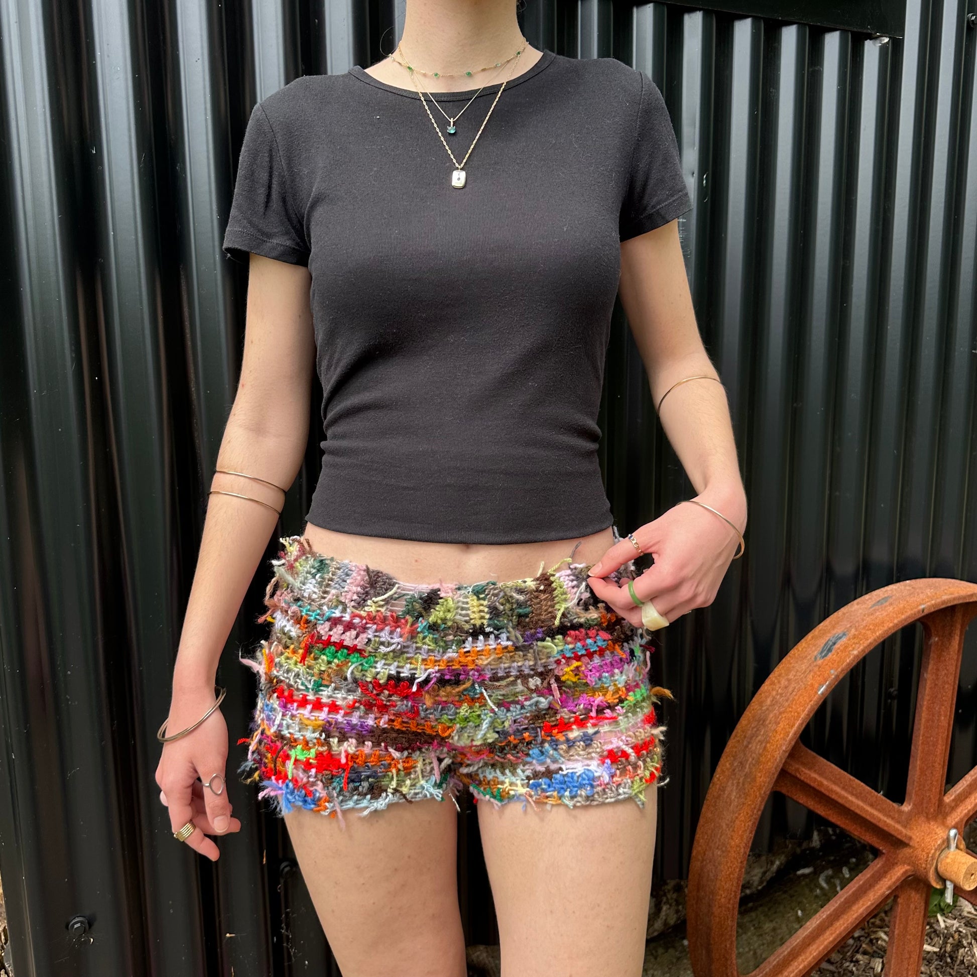 Handmade scrappy crochet shorts - 1 of 1, made of leftover yarn scraps