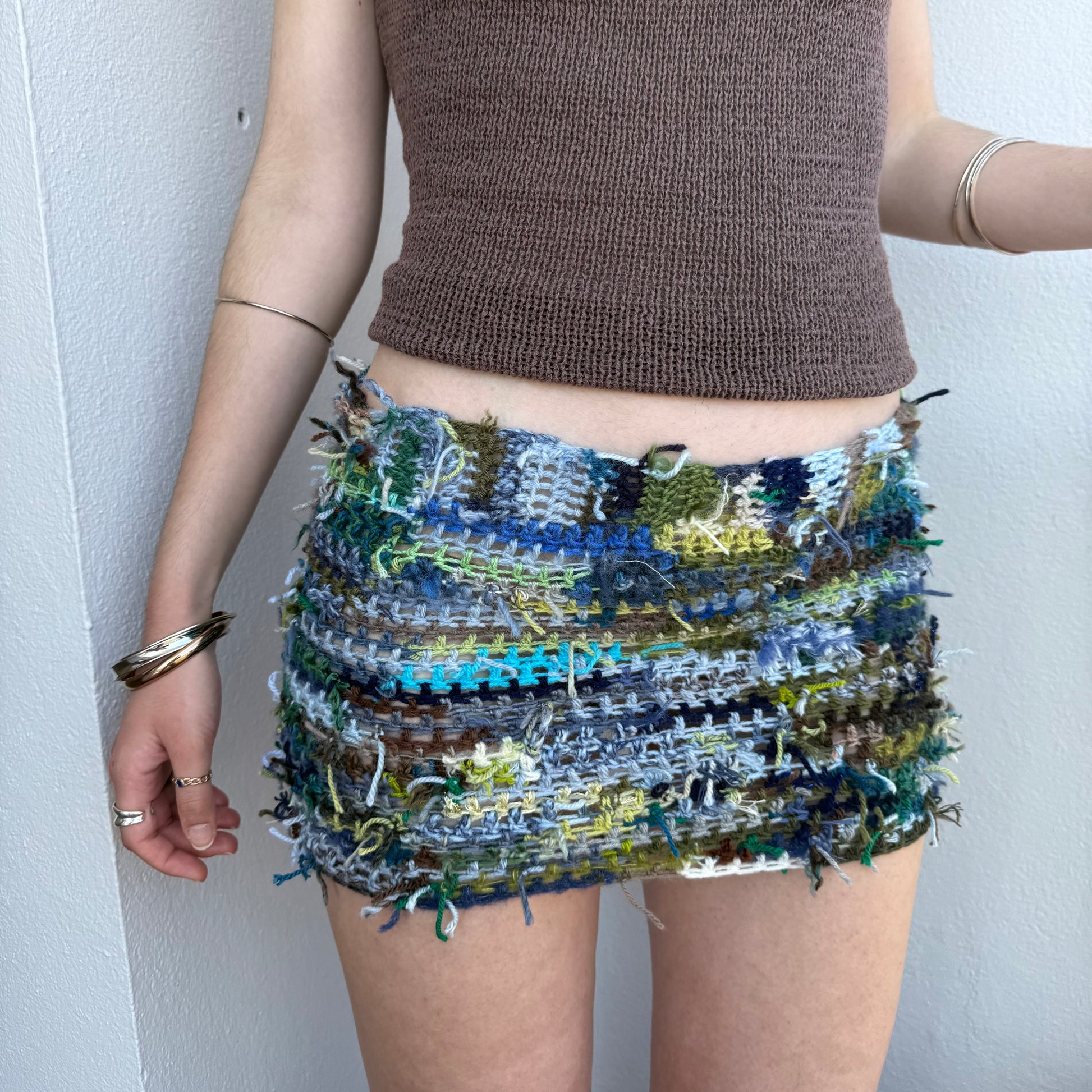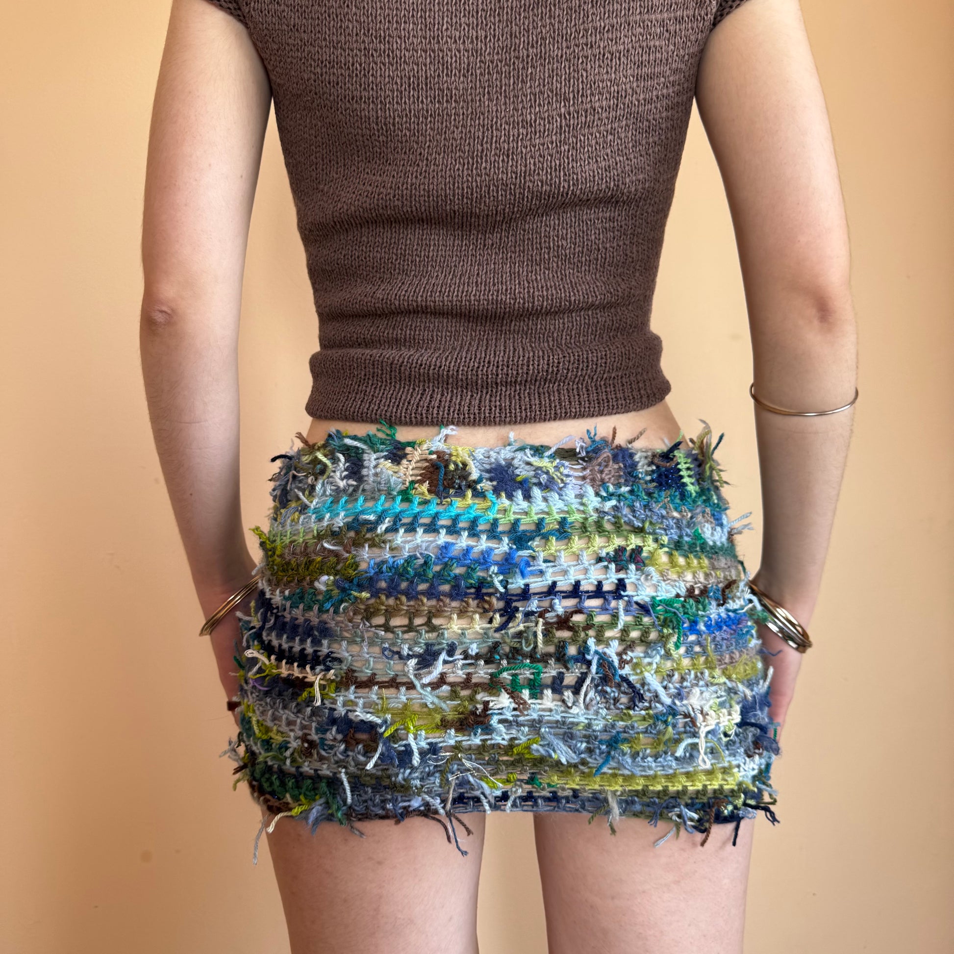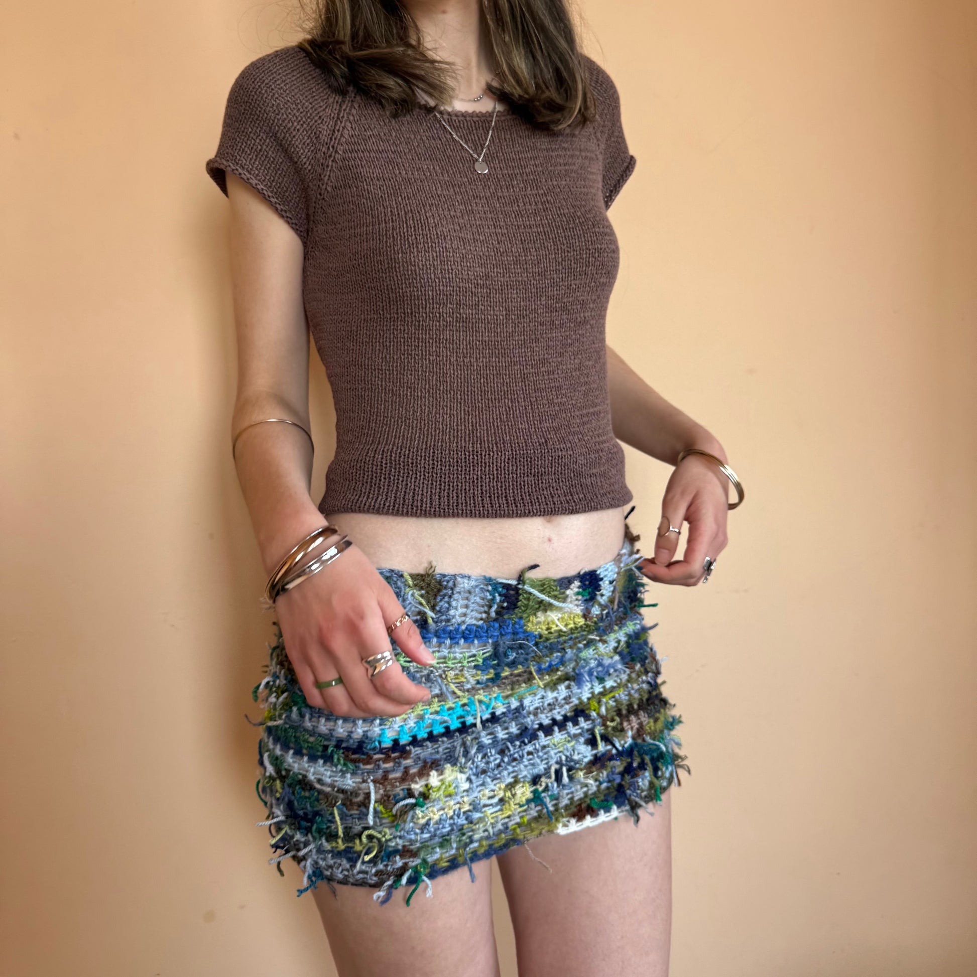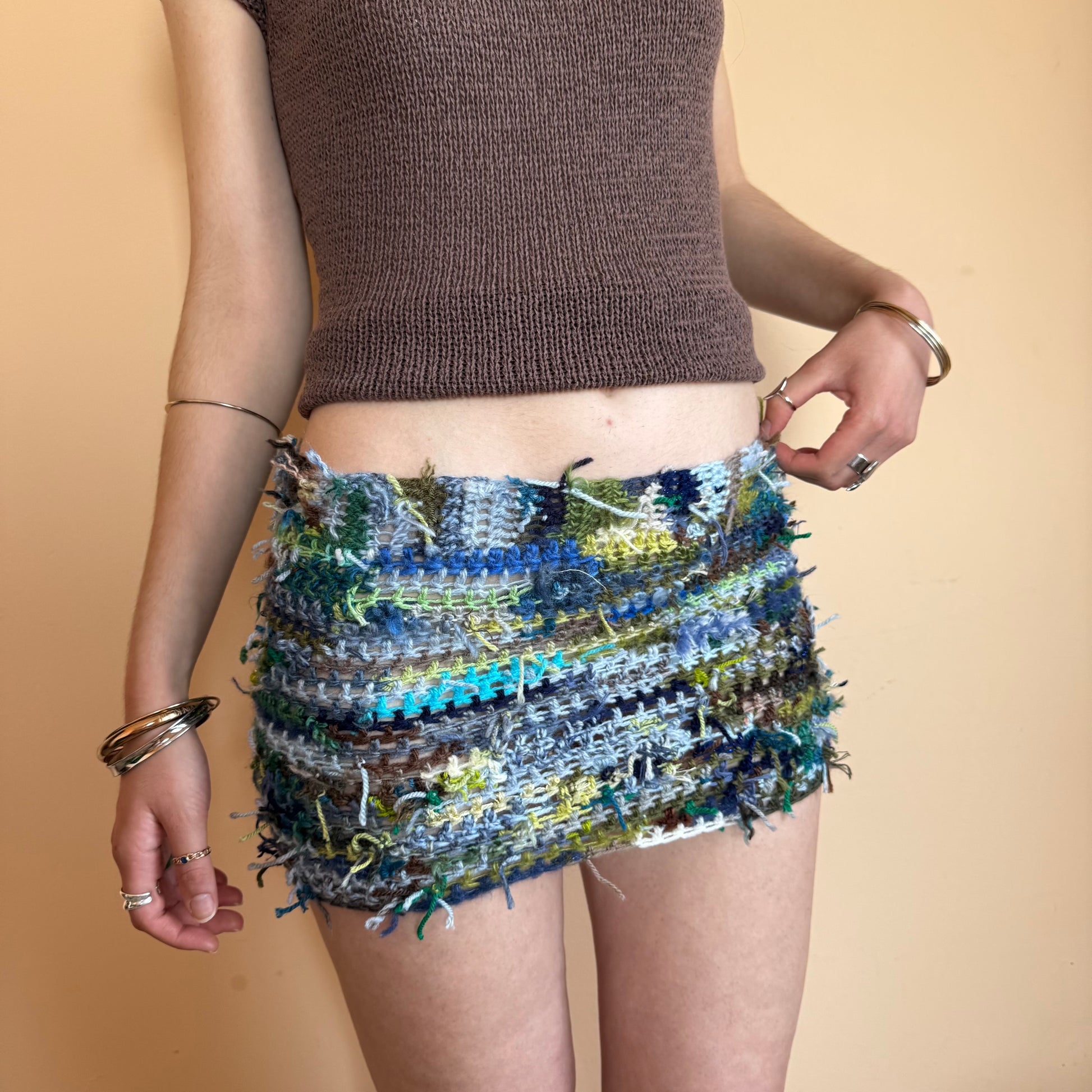Handmade scrappy crochet mini skirt - 1 of 1, made of leftover yarn scraps (pre made)