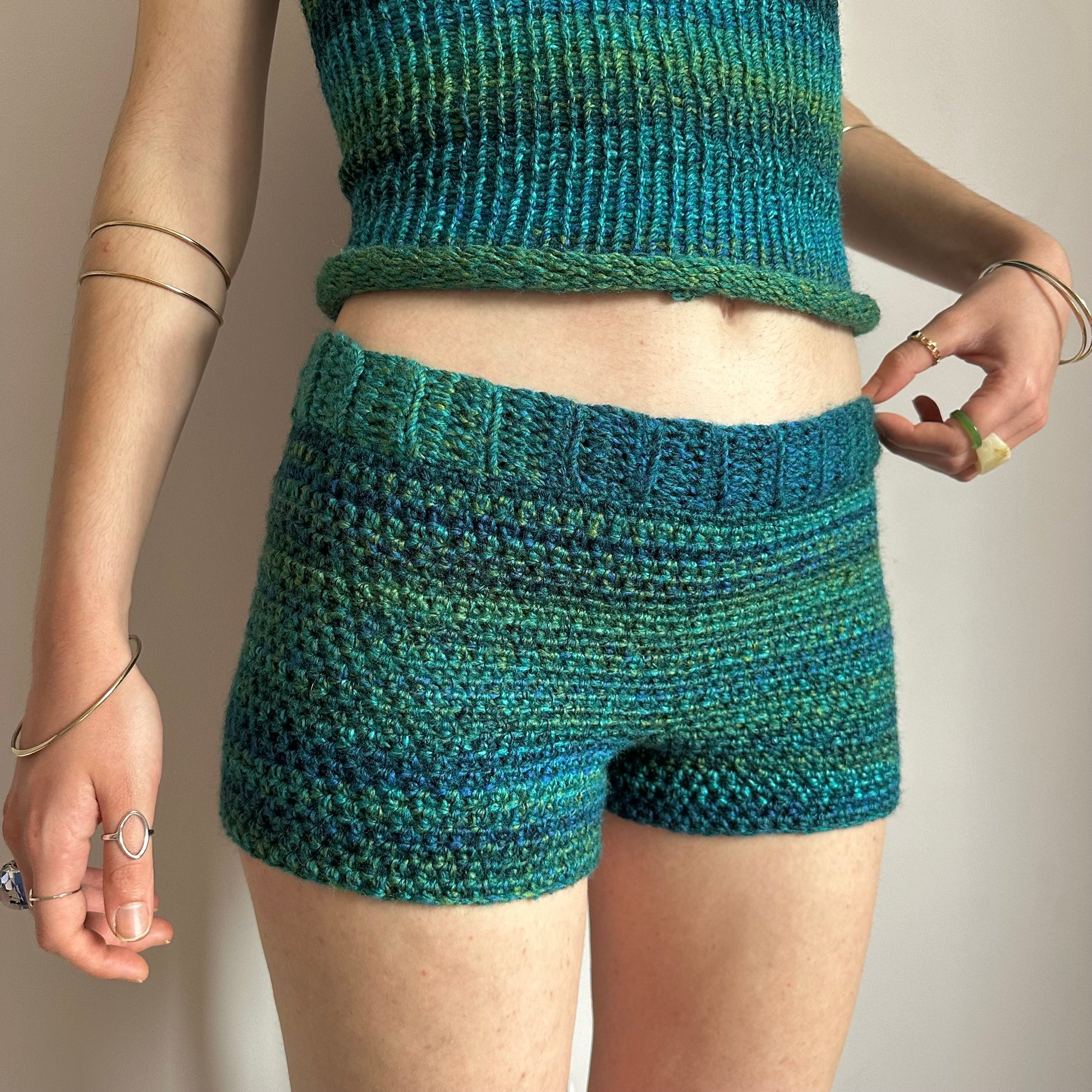 MATCHING SET: Handmade blue and brown striped crochet shorts and knitted halter top 🦋