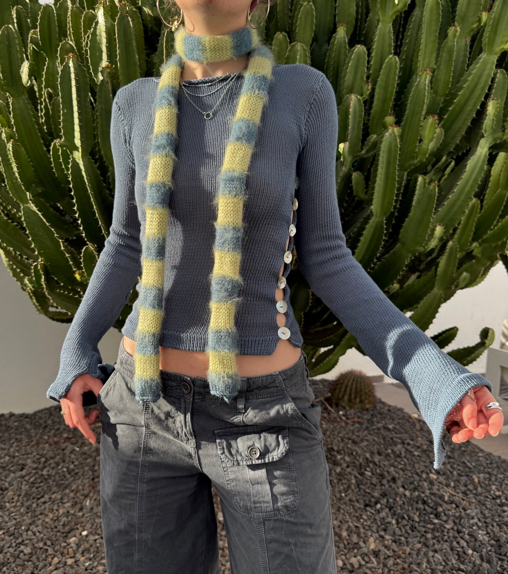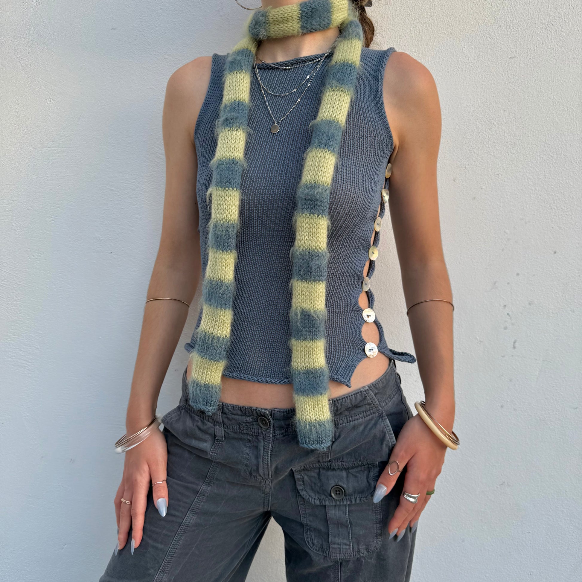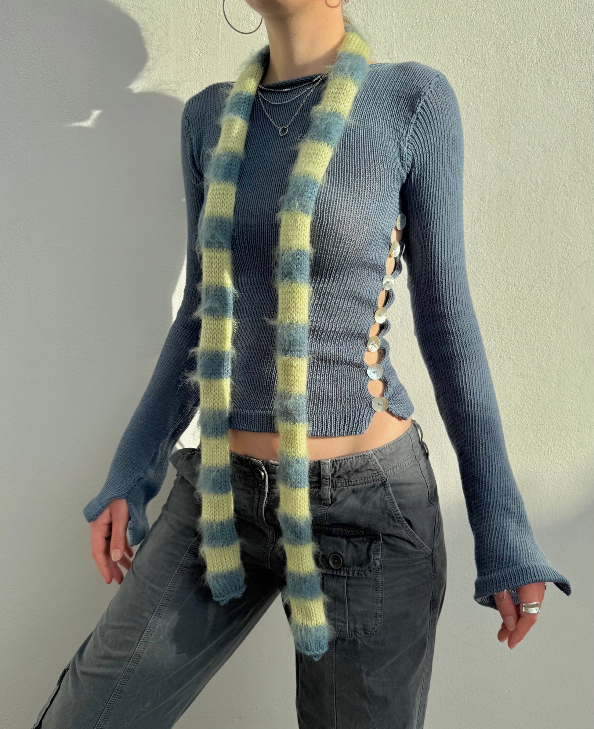 The cutest vintage early 00s / y2k inspired knitted skinny scarf in blue & green 💙💚