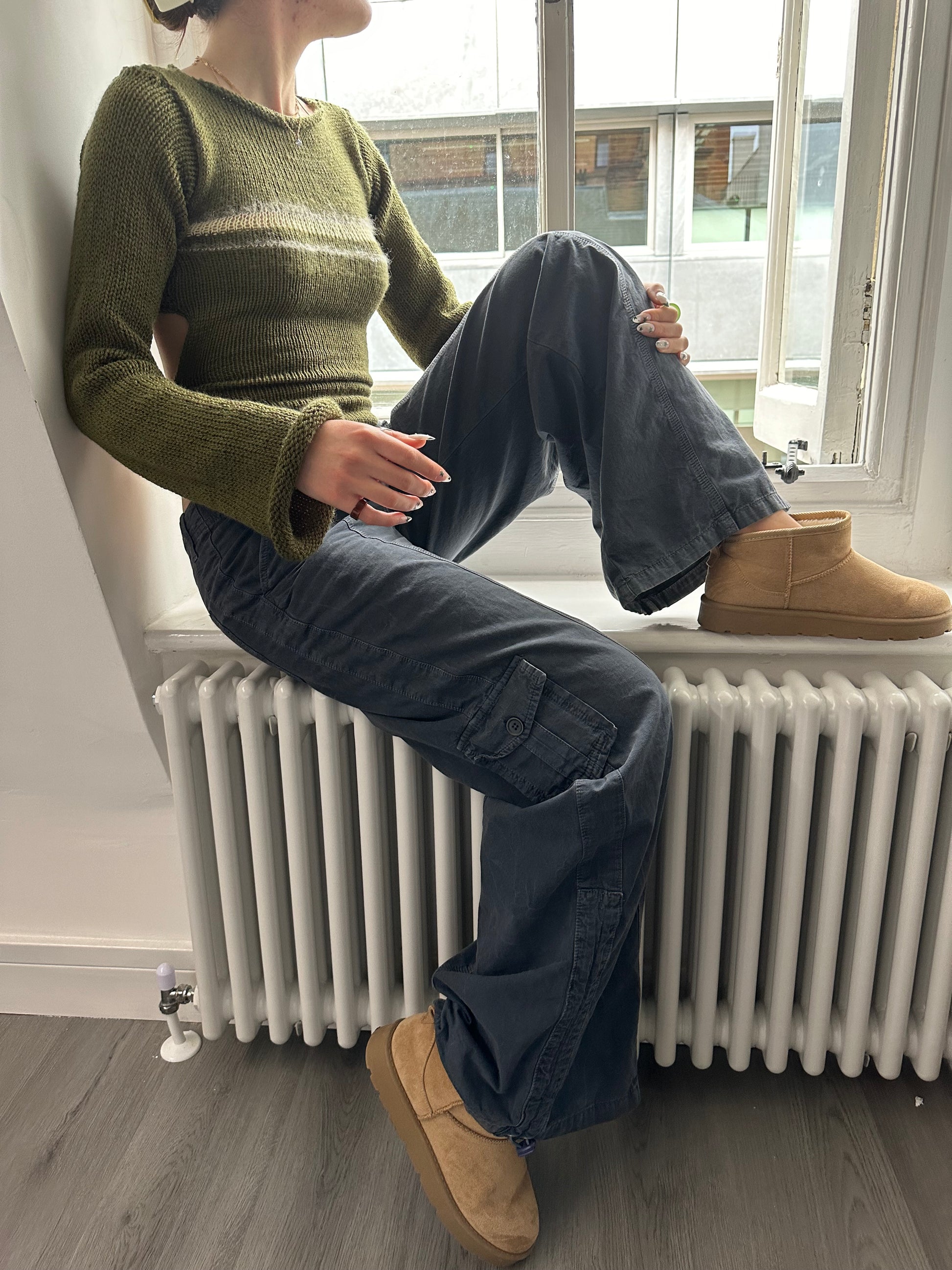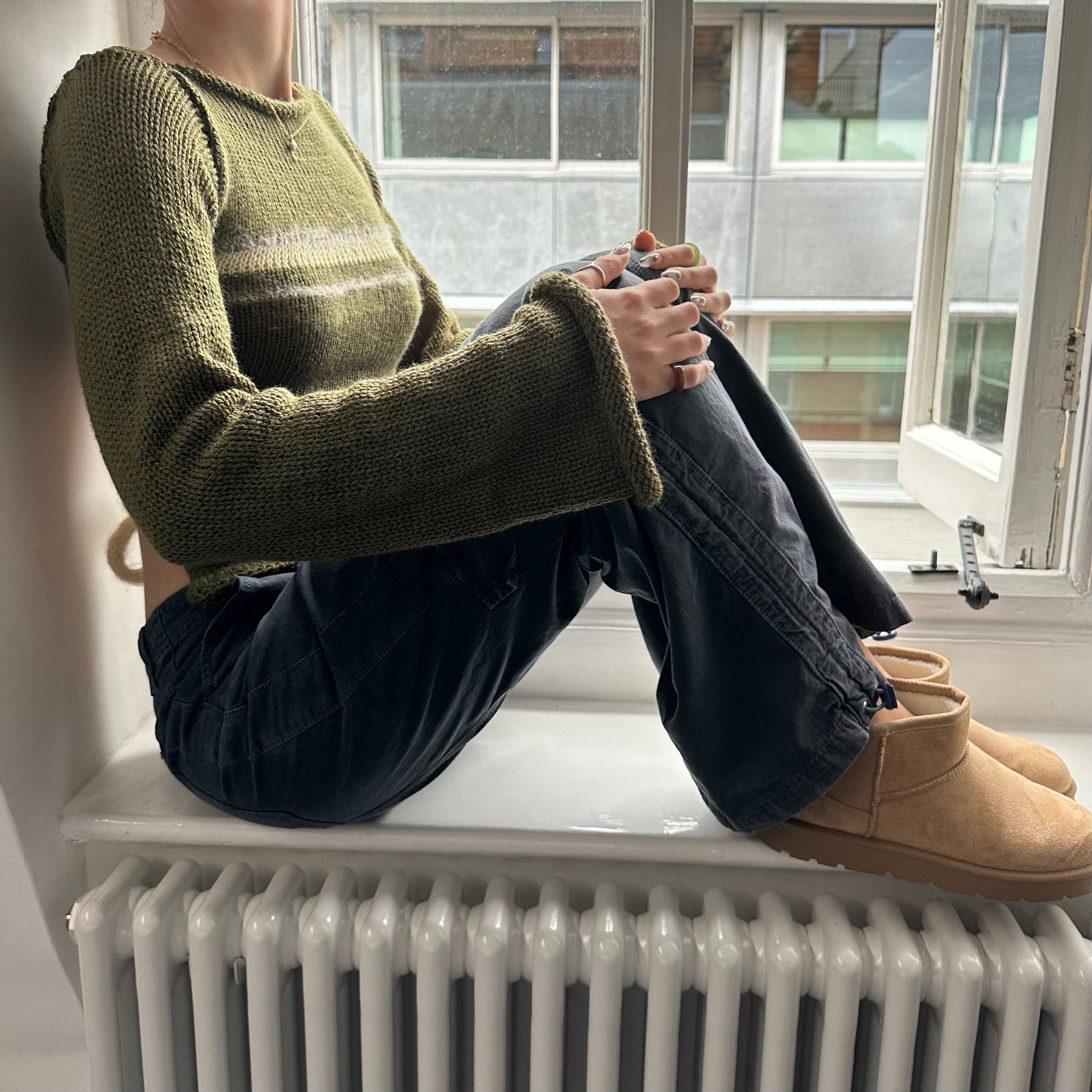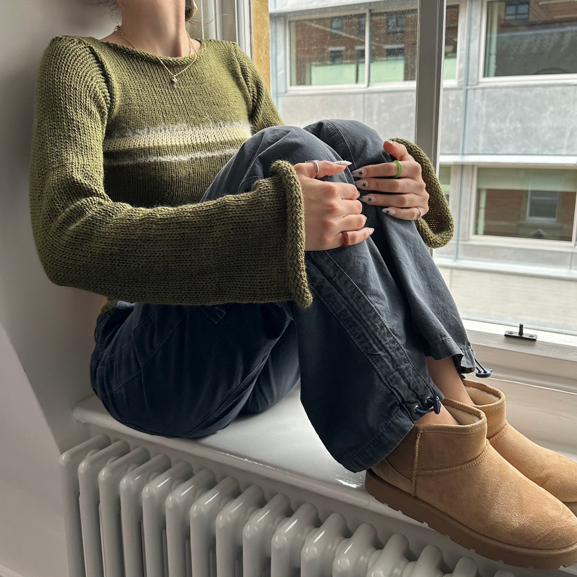Handmade khaki green striped knit jumper - choose with or without tie up bow back