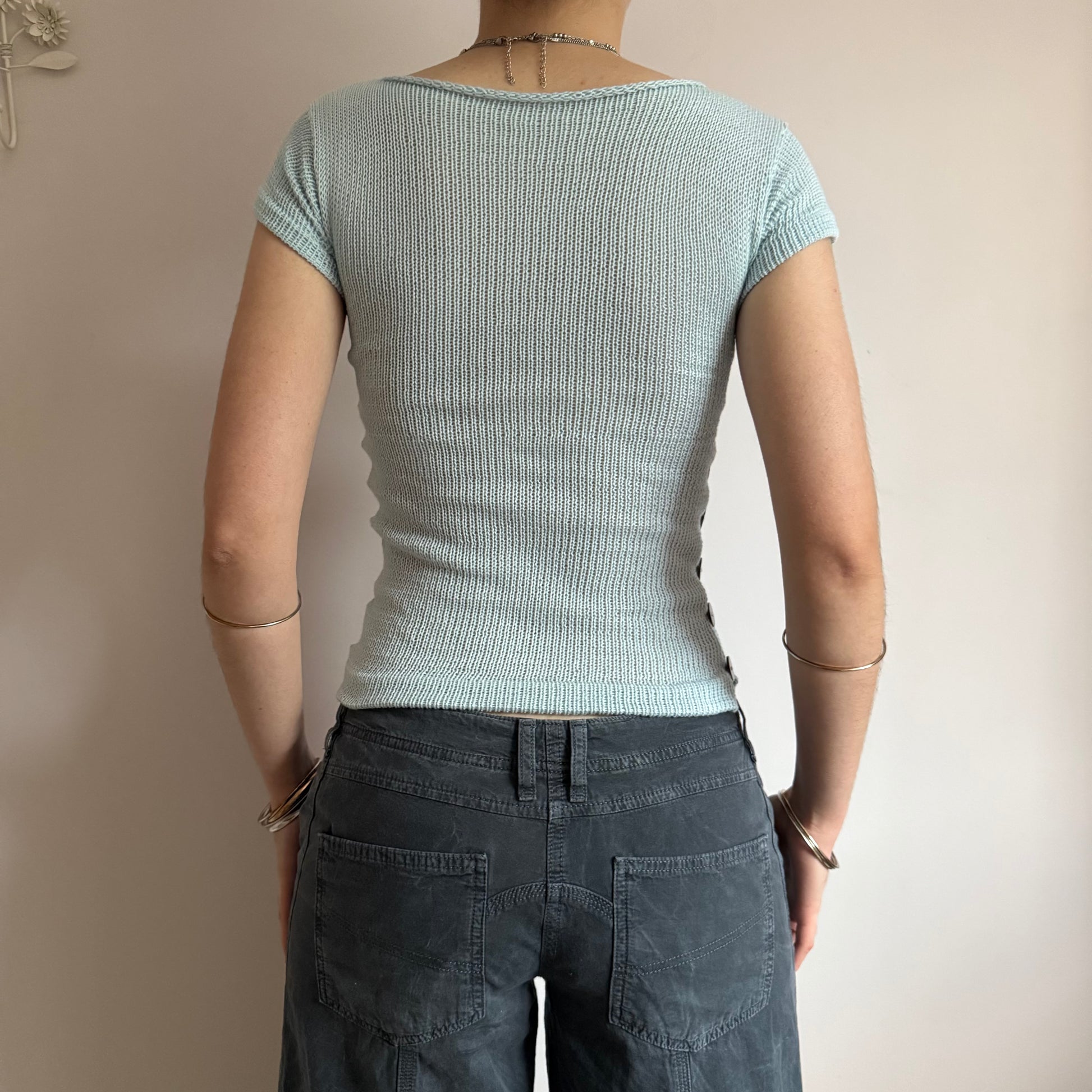 Handmade baby blue and grey striped knit button tee - limited edition 🩵