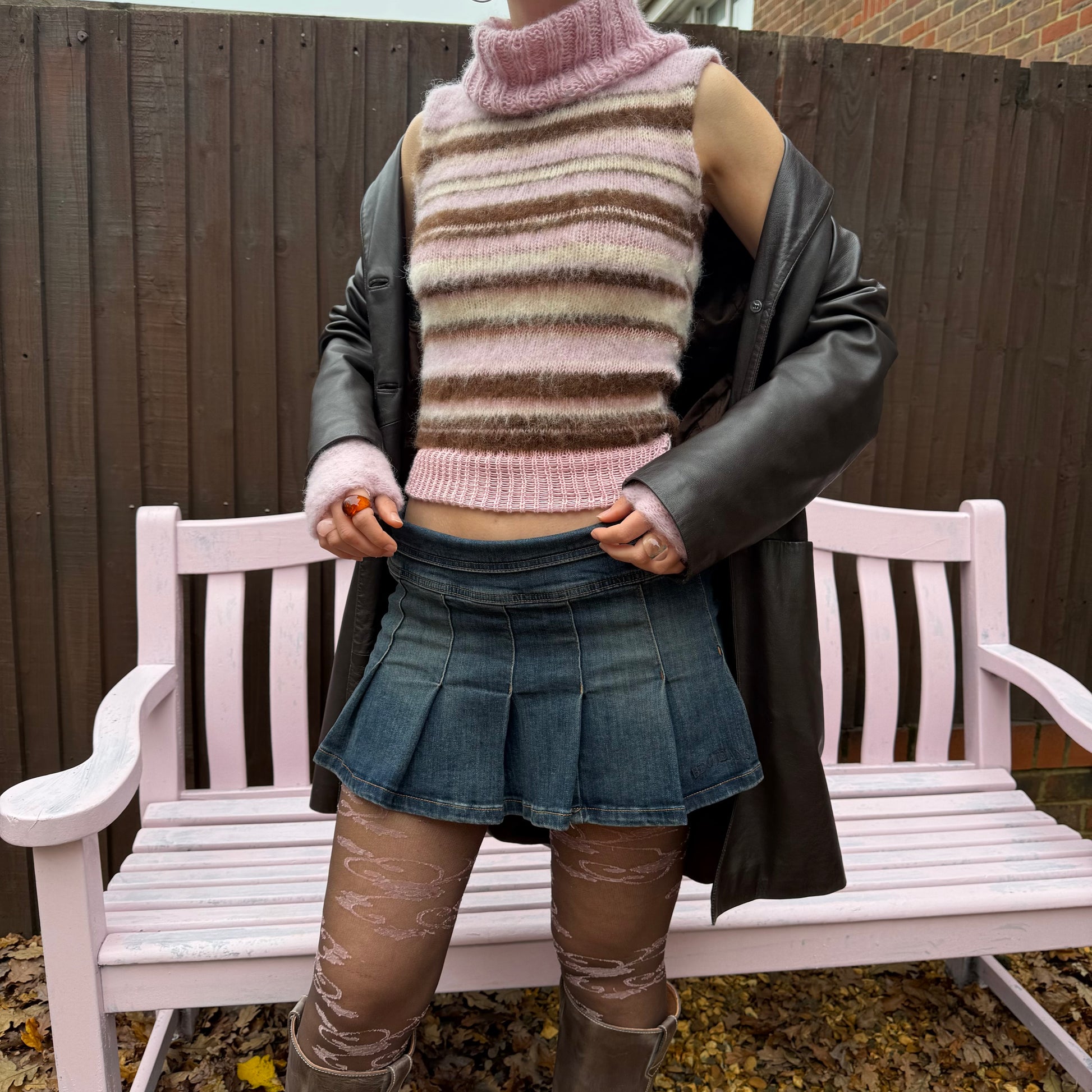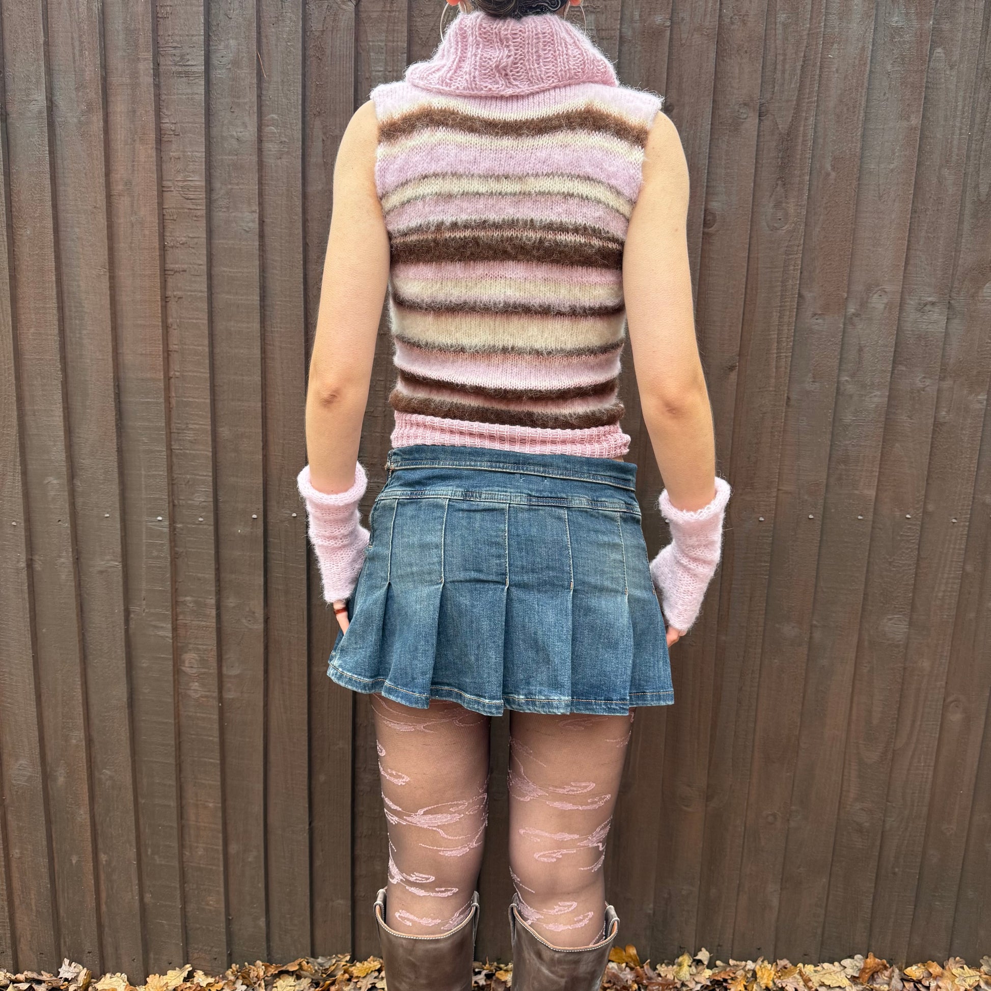 Striped knitted roll neck vest in the most gorgeous brown, pink & cream colour combo 🌸🤎 great for layering or on its own!