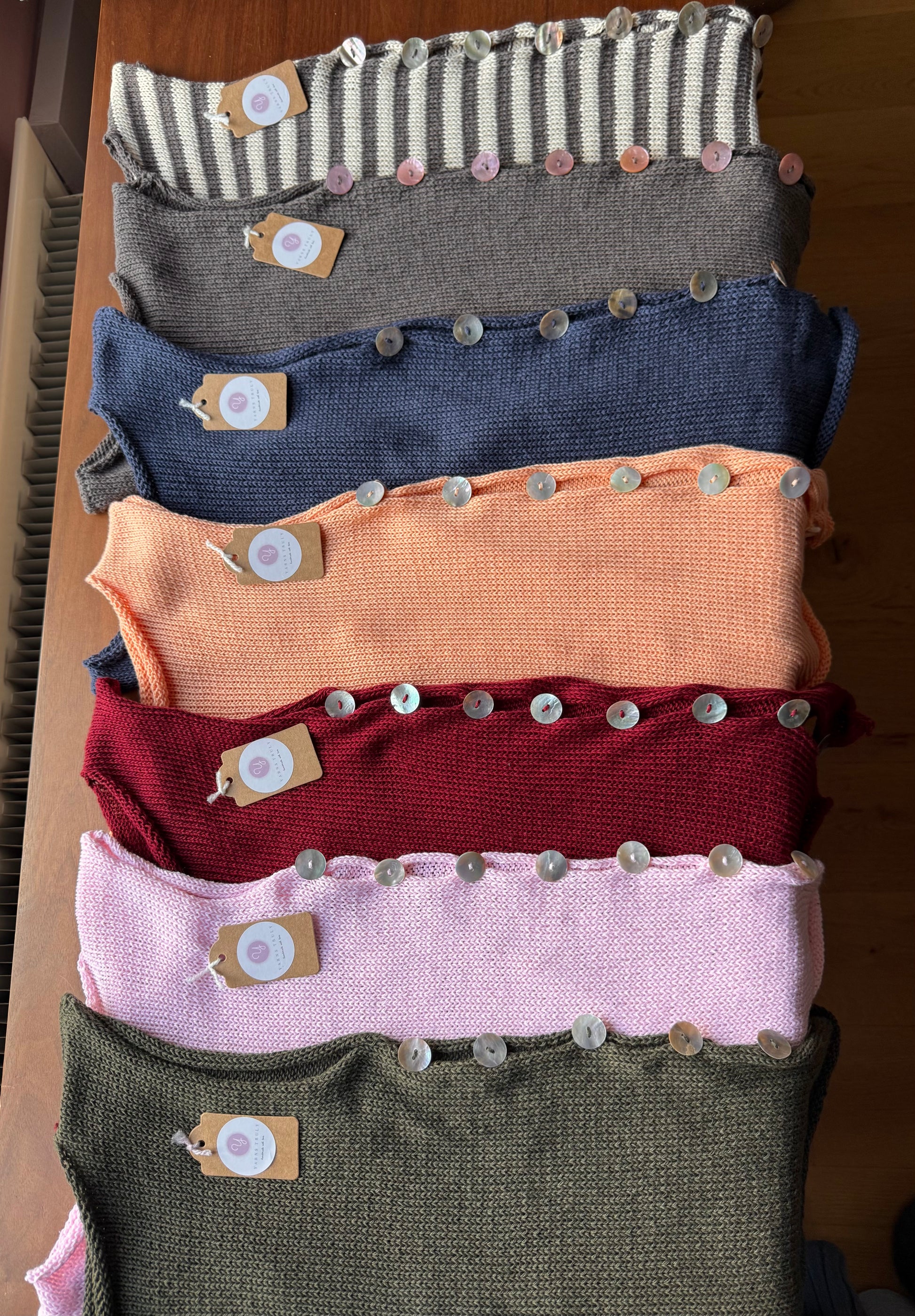 The Pearl Vest in peach - handmade knitted vest with mother of pearl buttons