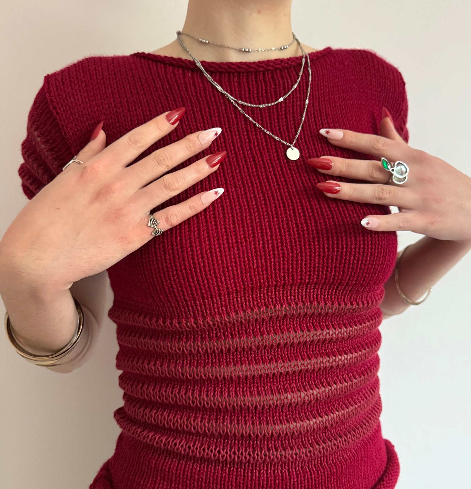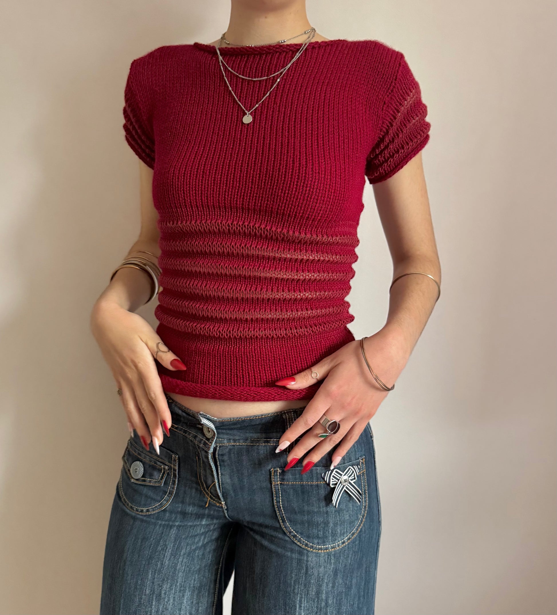 New design for AW25! ☁️ Handmade red knit short sleeve top with puff sleeves 🍒