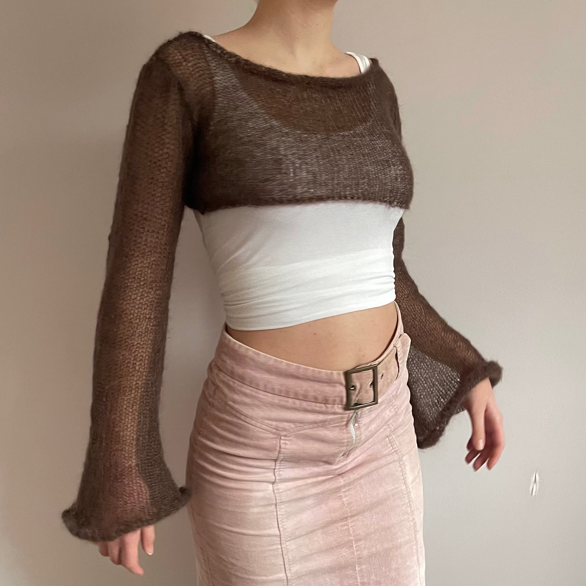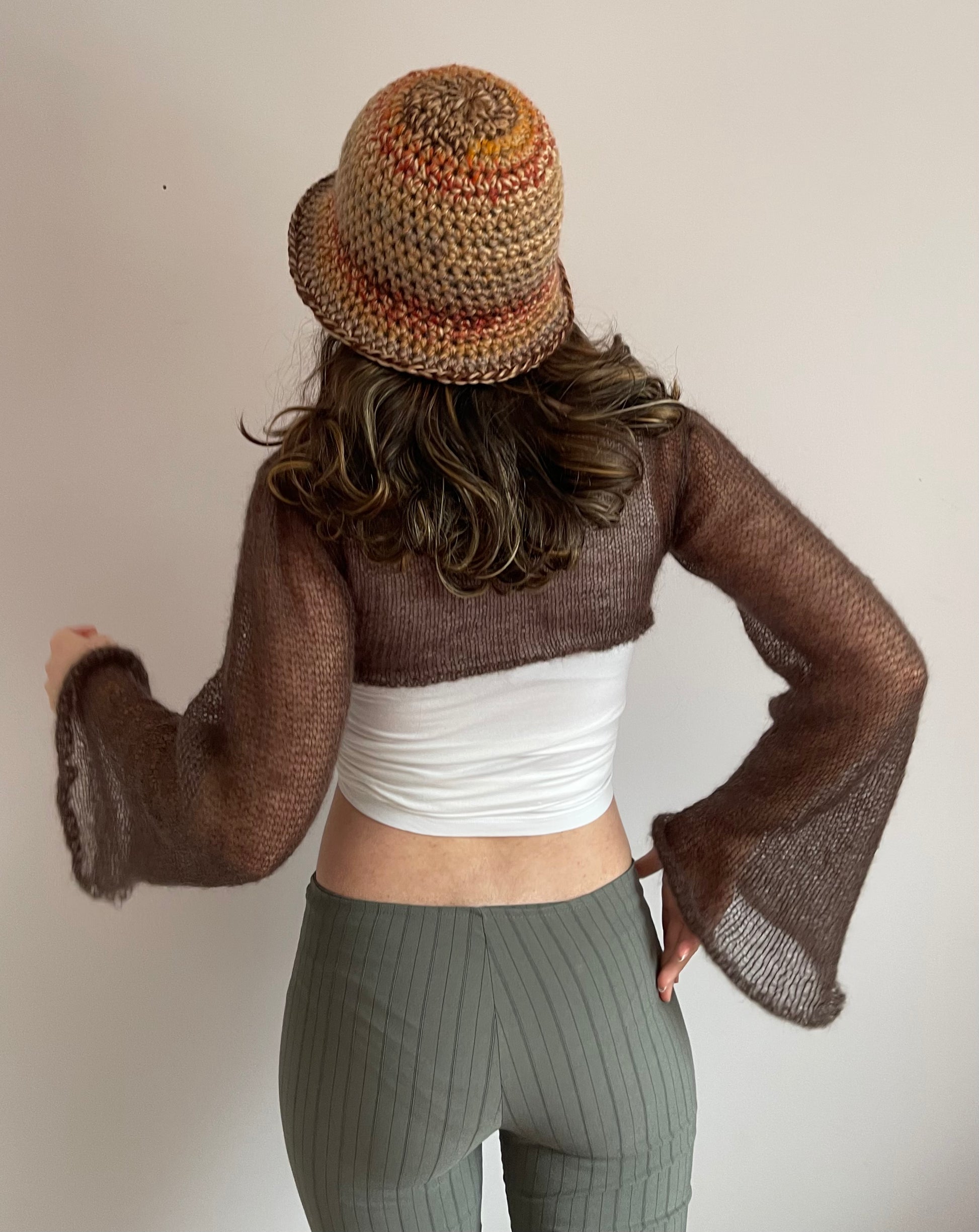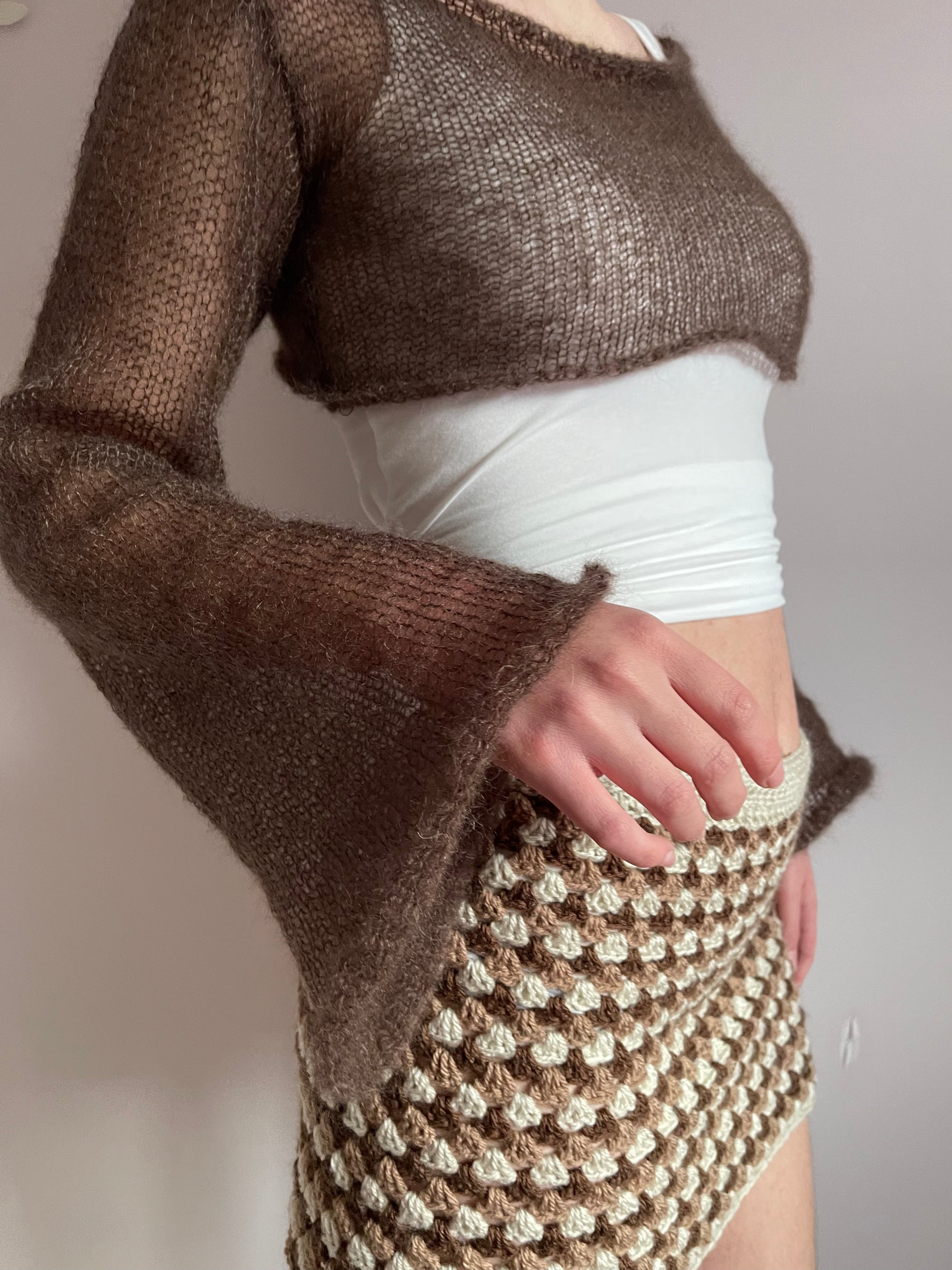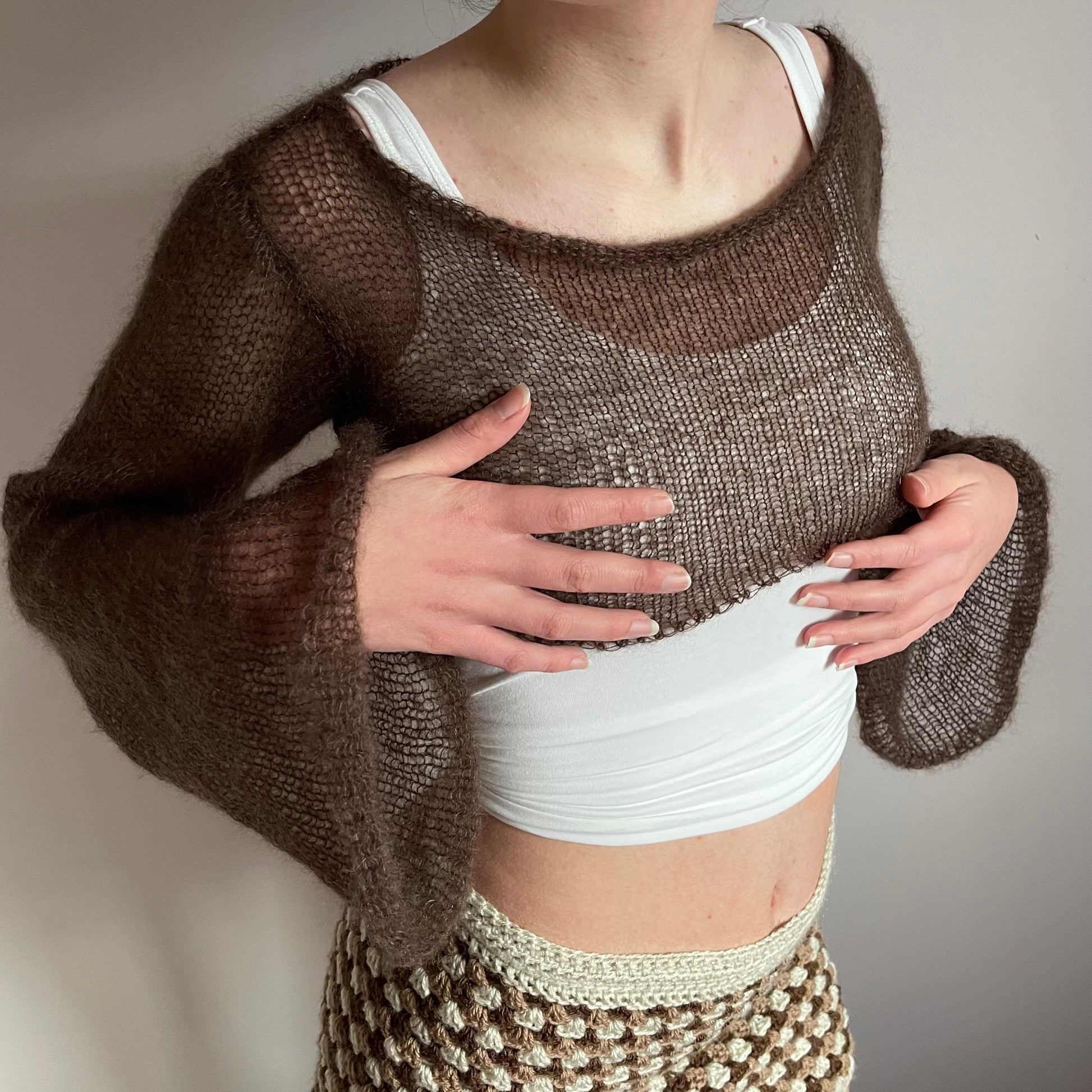 Handmade knitted brown mohair cropped jumper