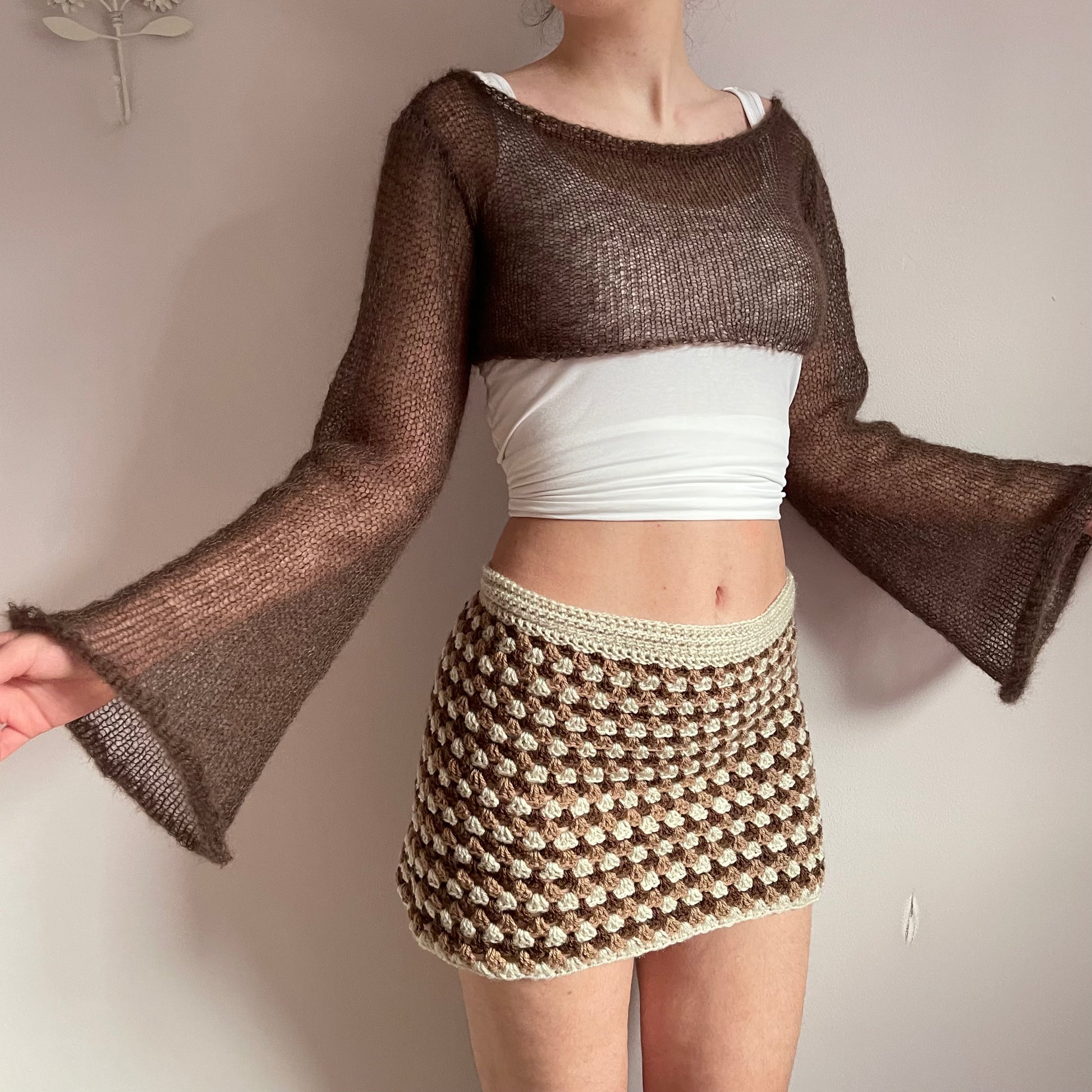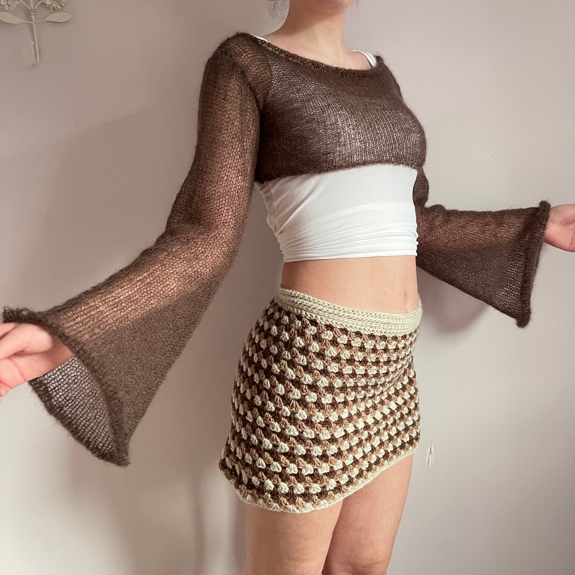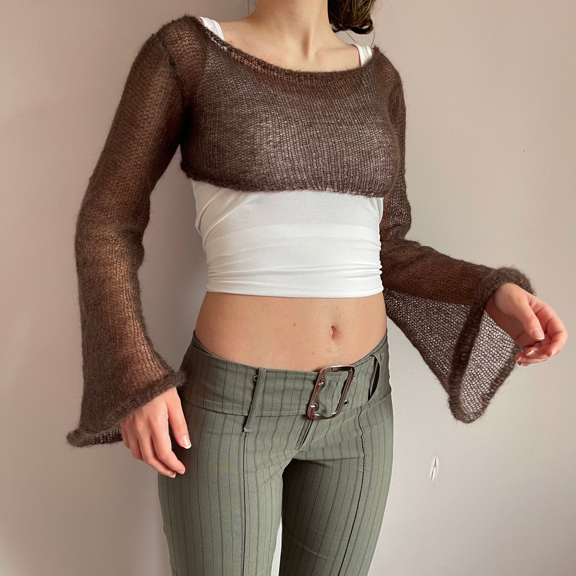 Handmade knitted brown mohair cropped jumper
