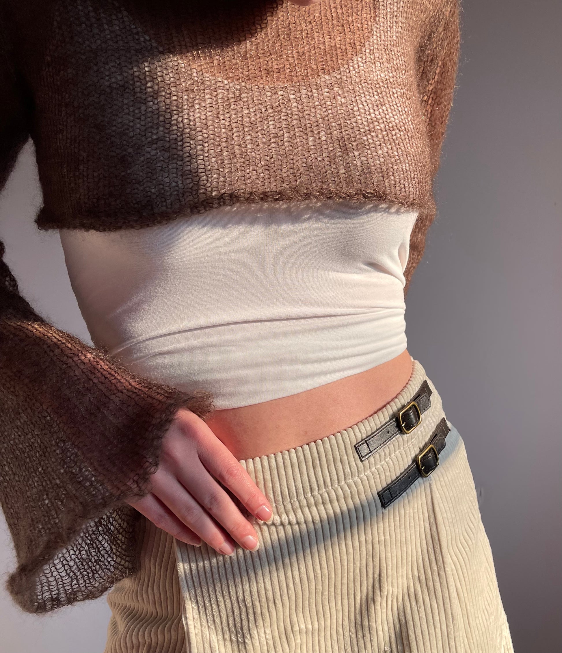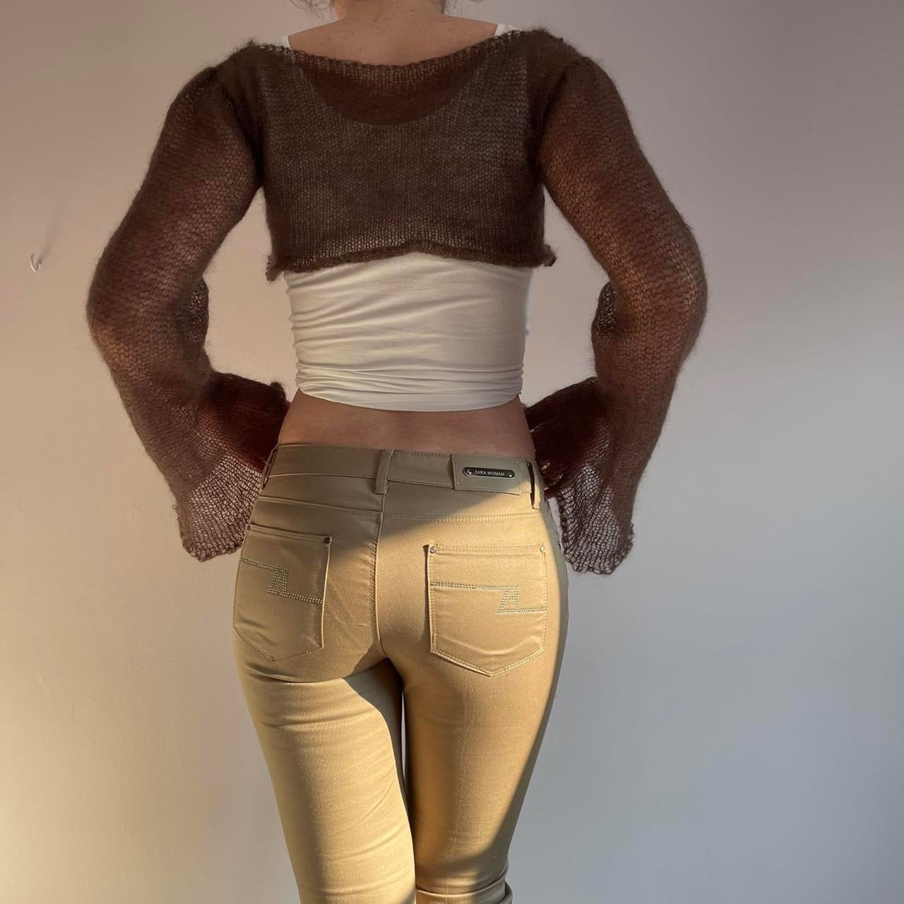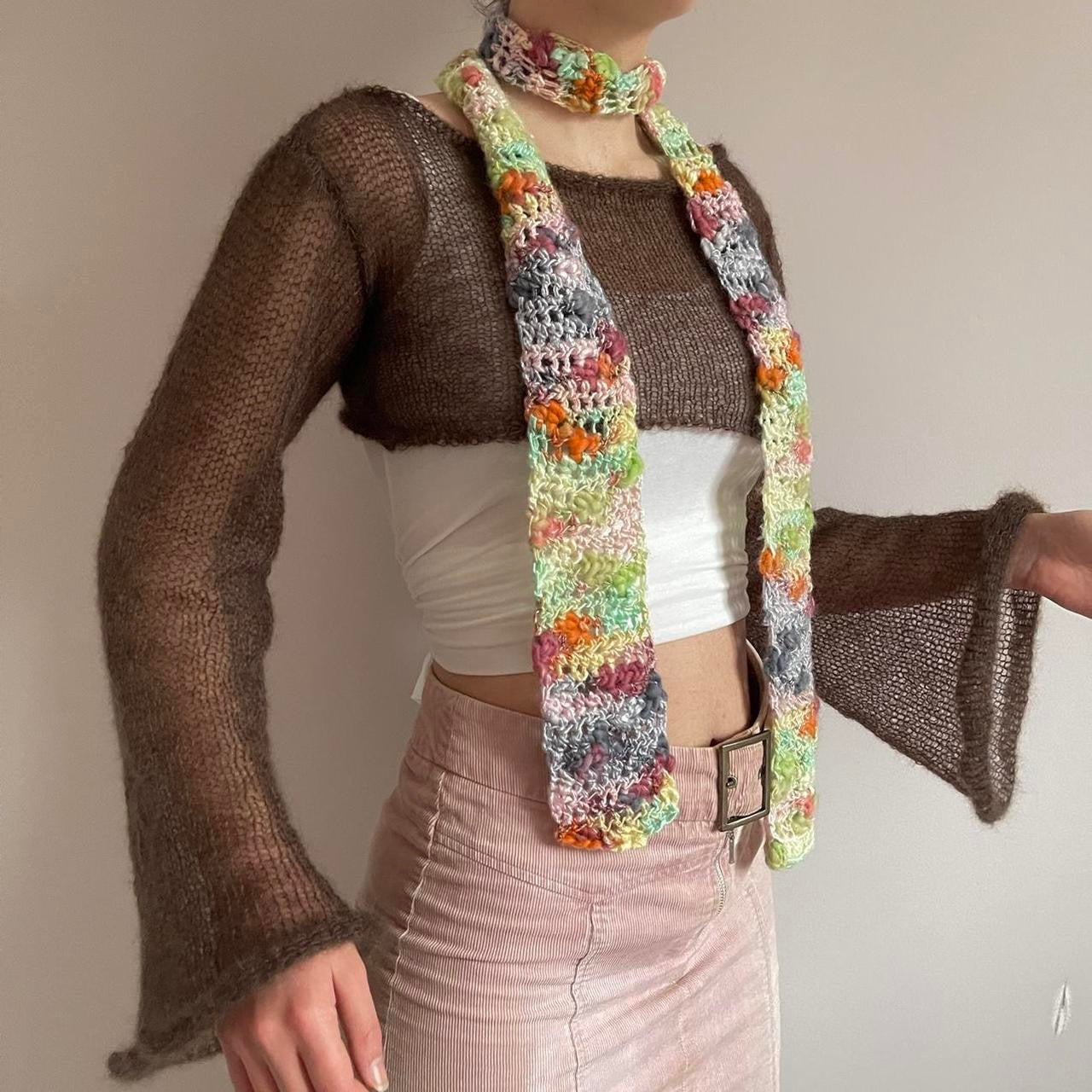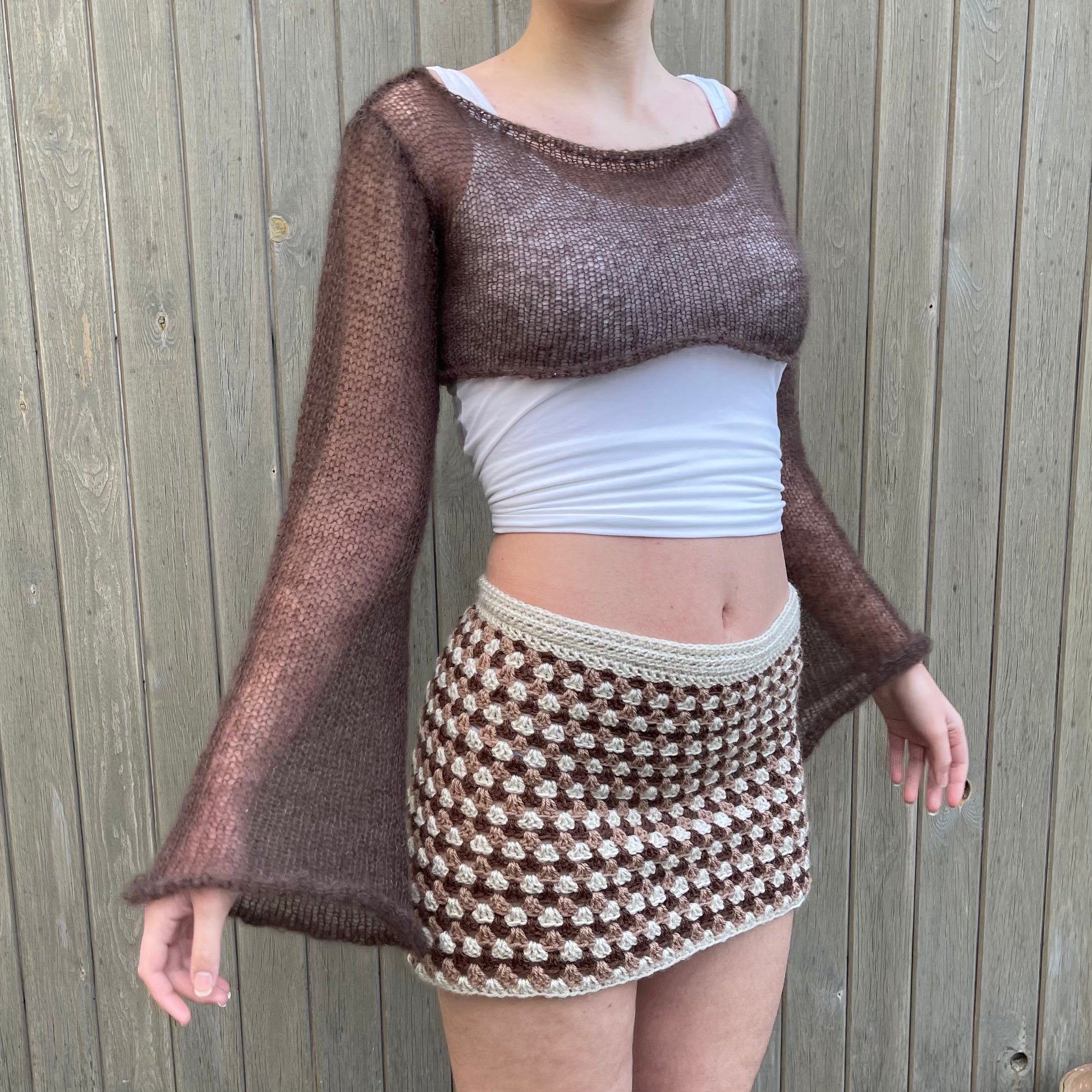 Handmade knitted brown mohair cropped jumper