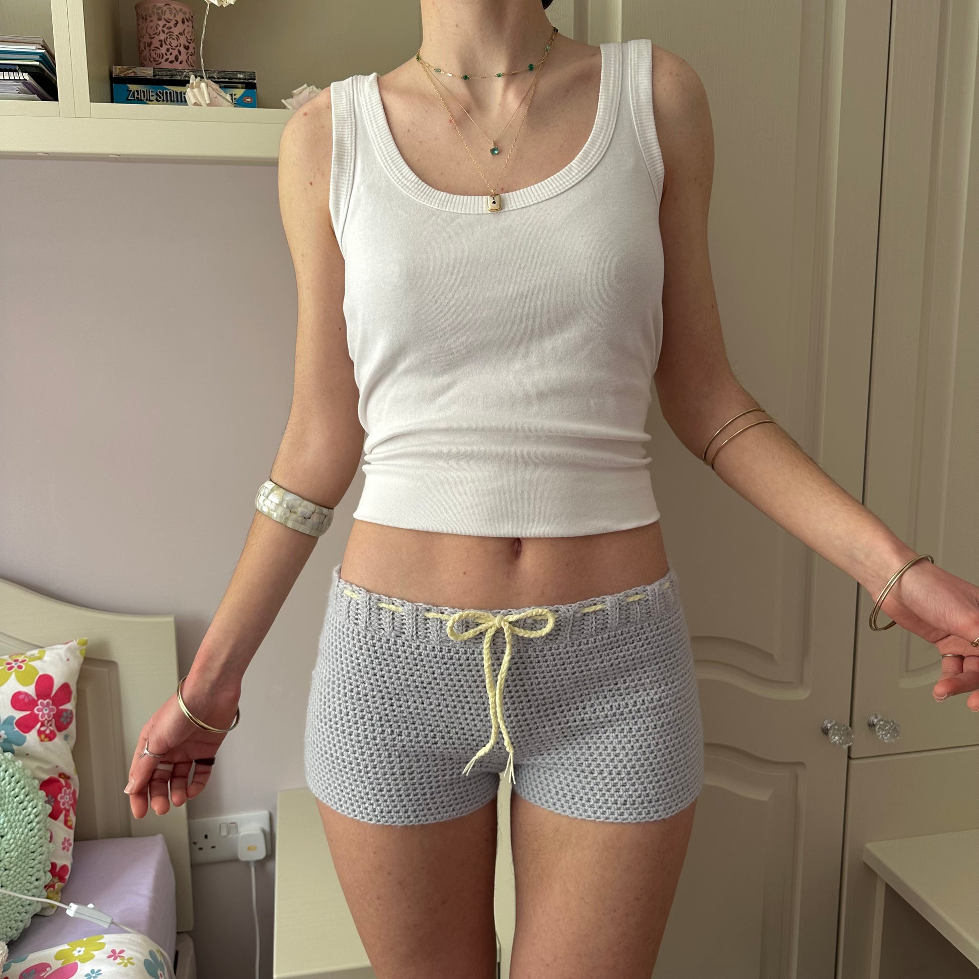 New range! Super flattering crochet bow shorts 🎀