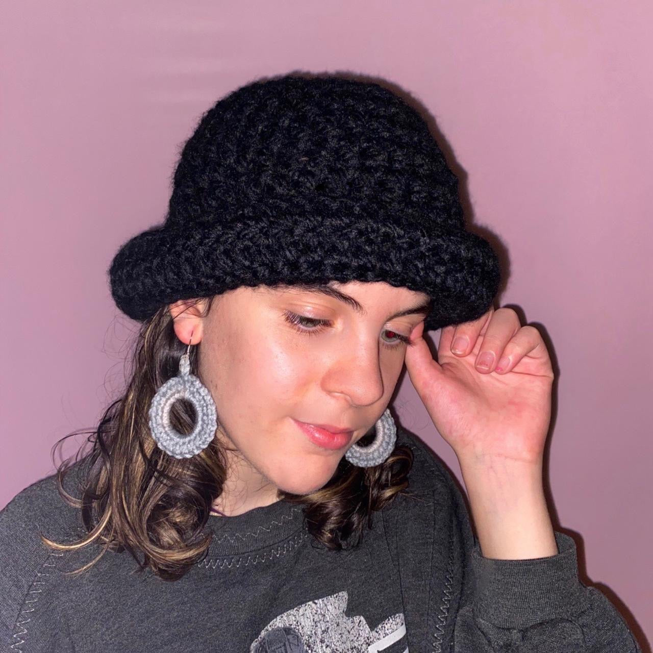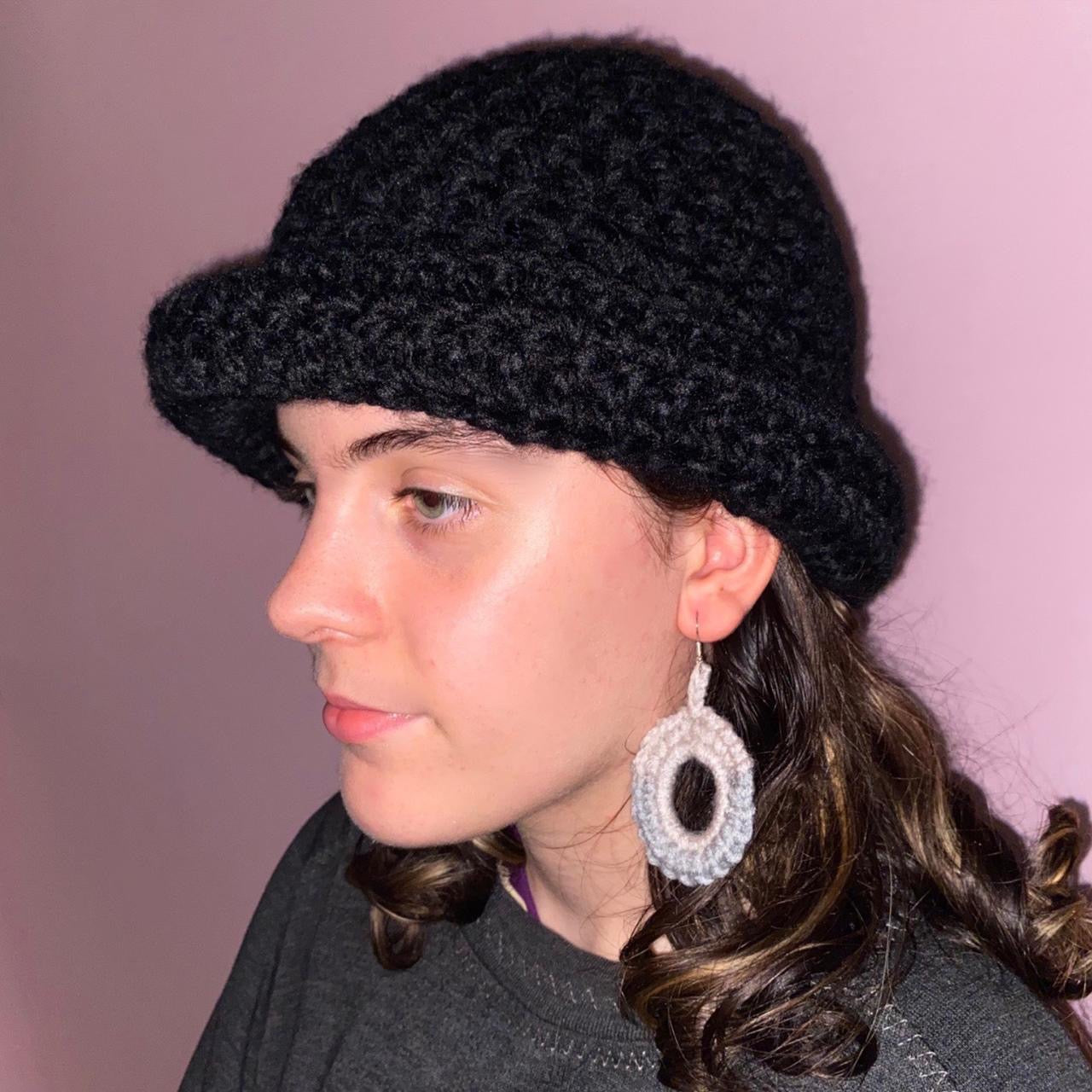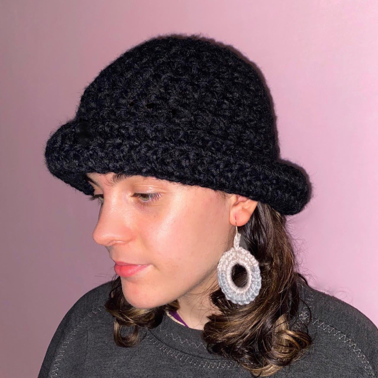 Handmade black chunky crochet bowler hat
