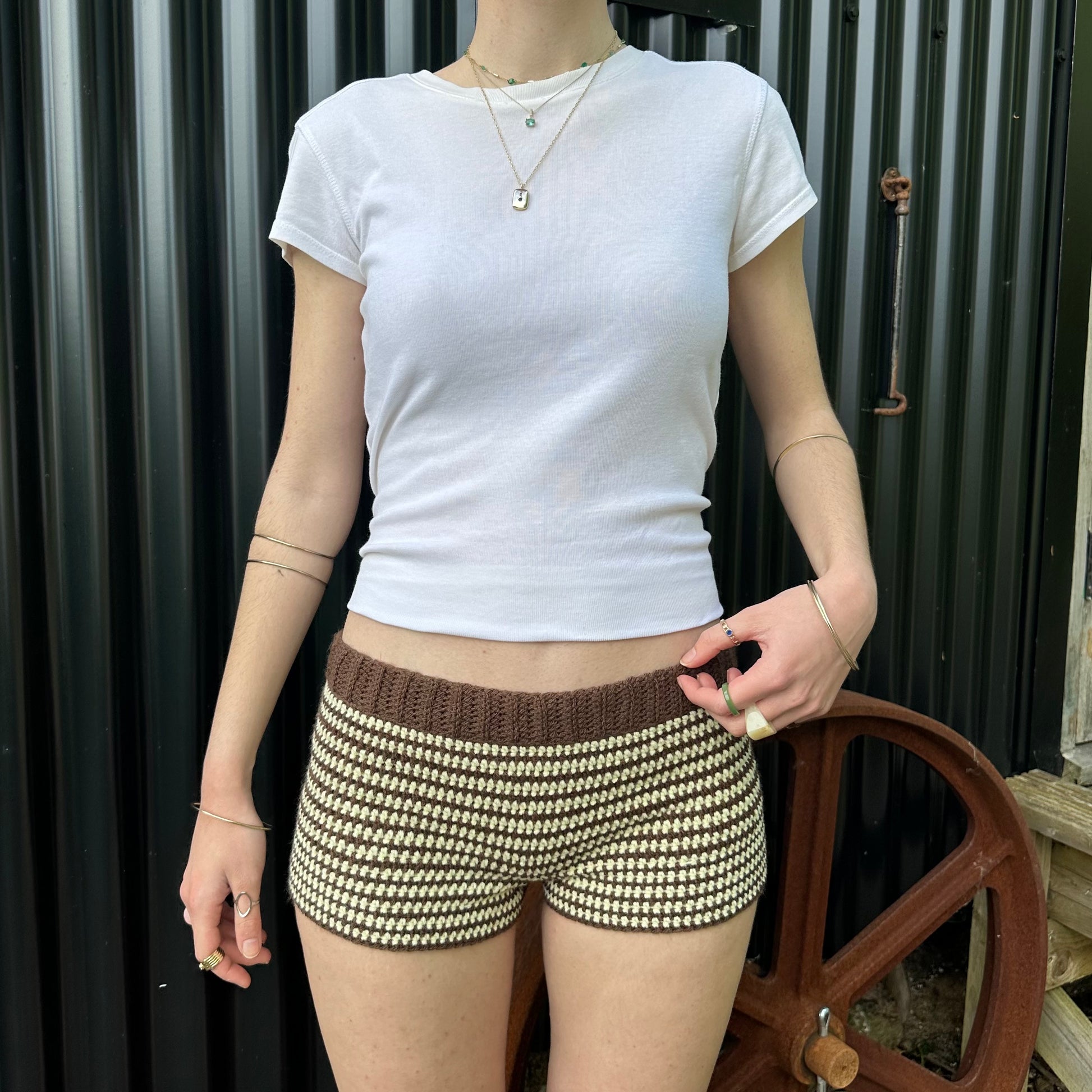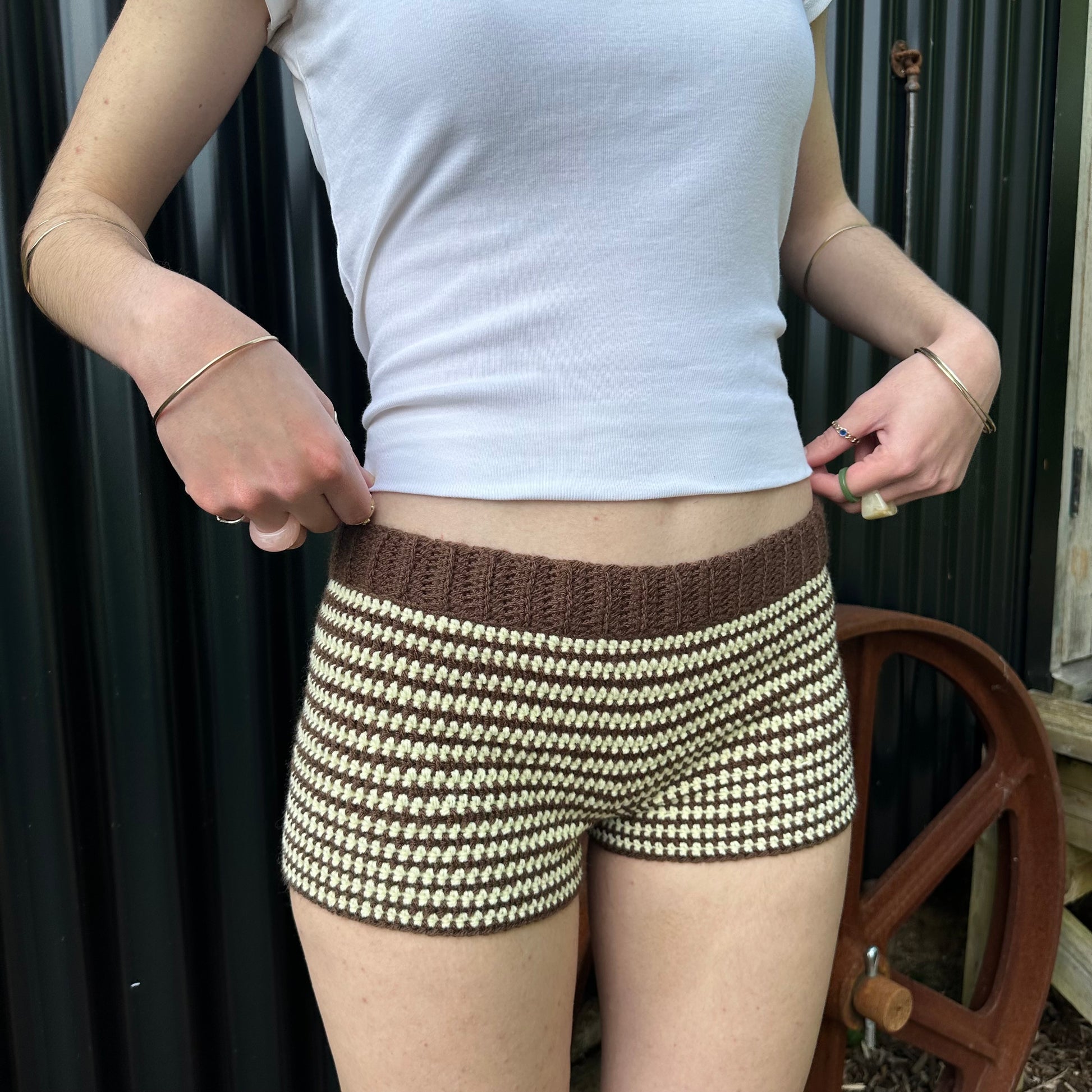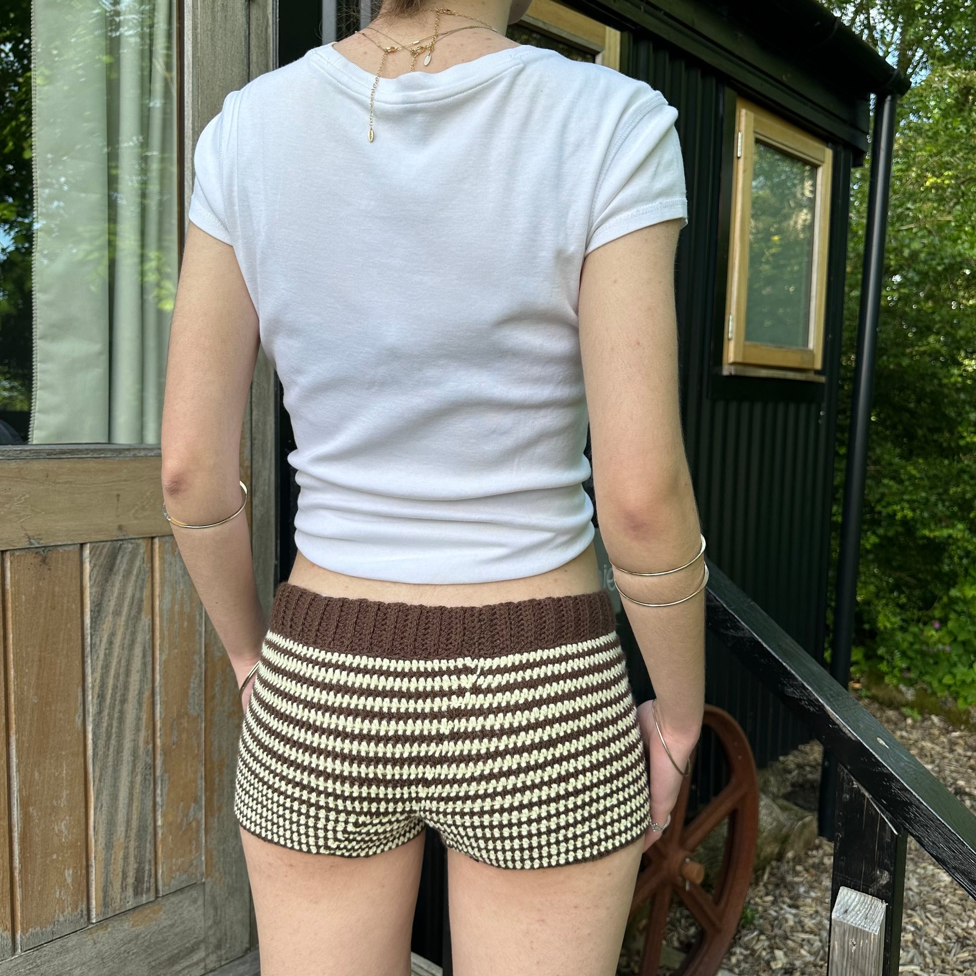 The Sienna Shorts - handmade brown and light yellow striped crochet shorts