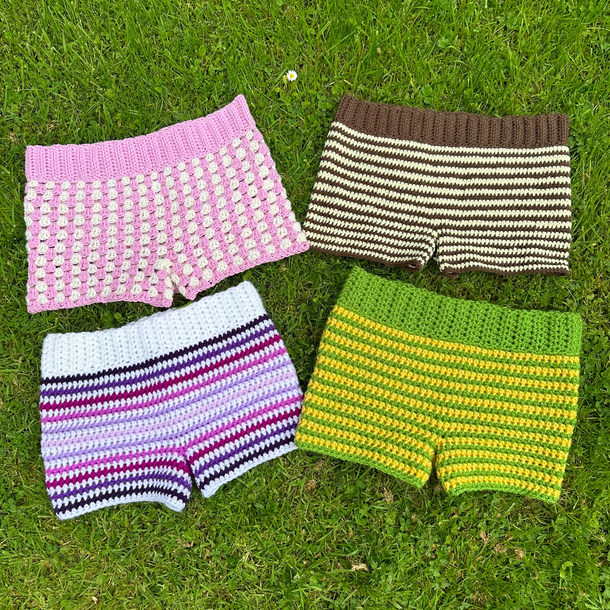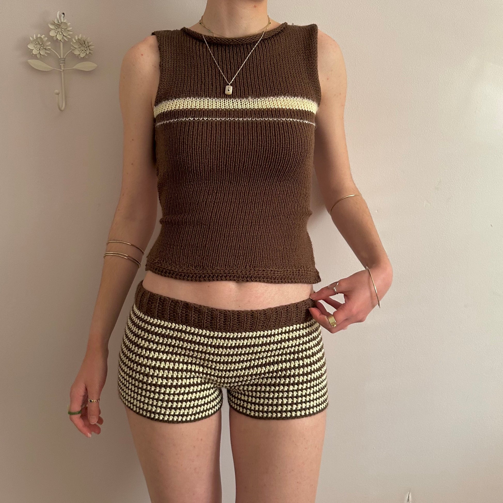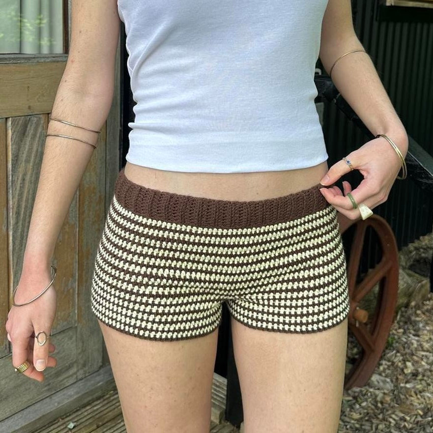 The Sienna Shorts - handmade brown and light yellow striped crochet shorts