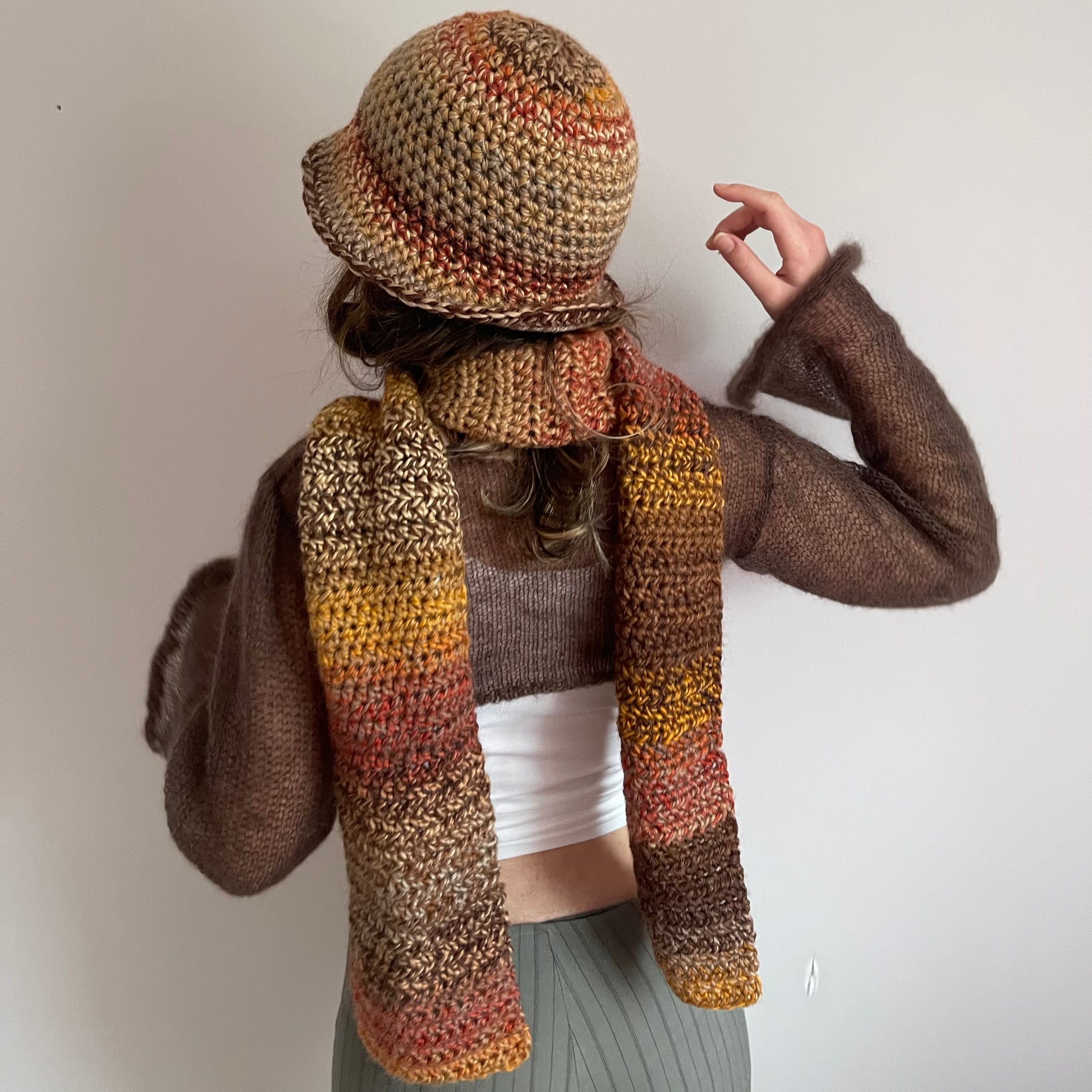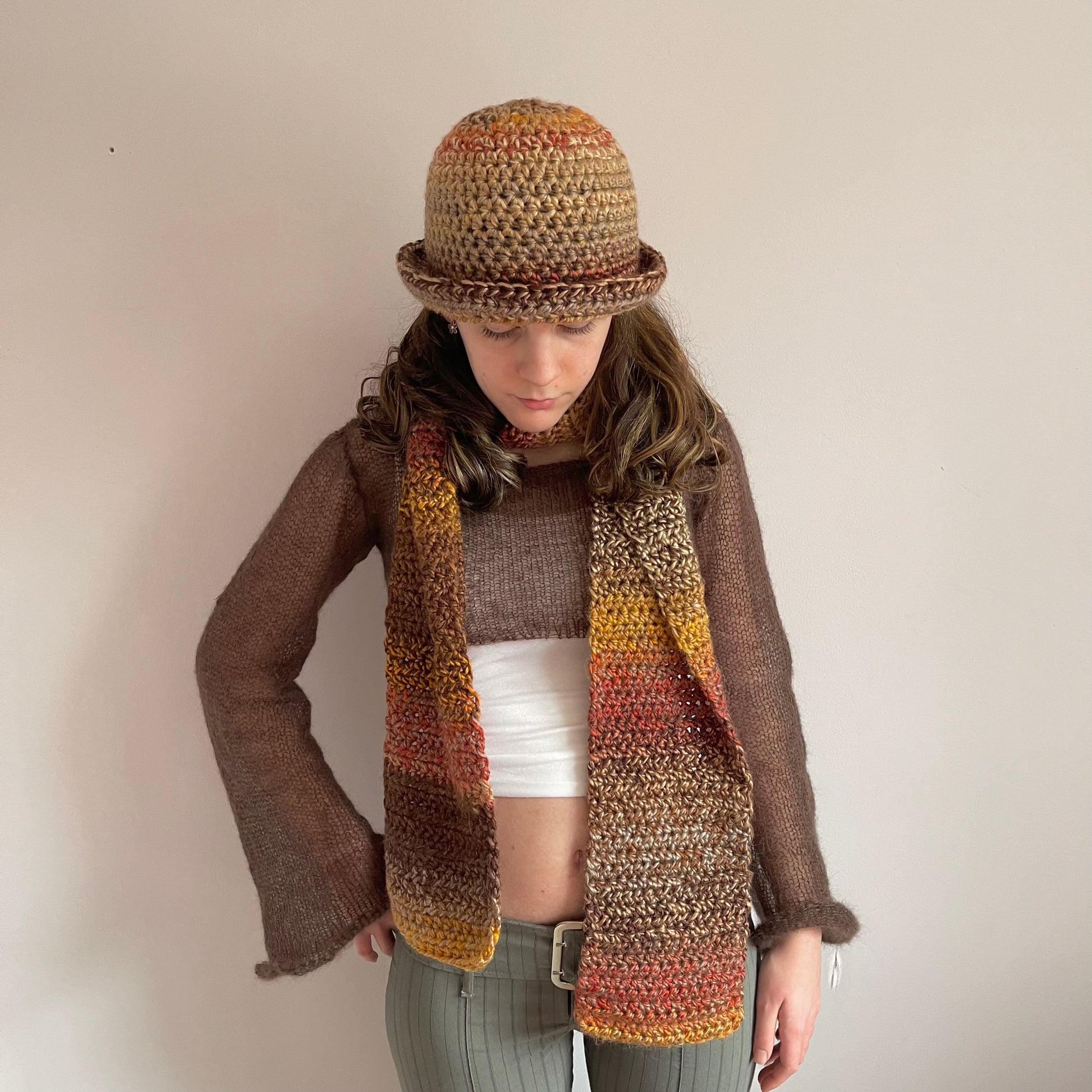 HANDMADE 🤎🧡 the perfect addition to your autumn / winter outfit, so warm and cosy! Can be worn either rolled up like a bowler hat or as a normal bucket hat as shown :)