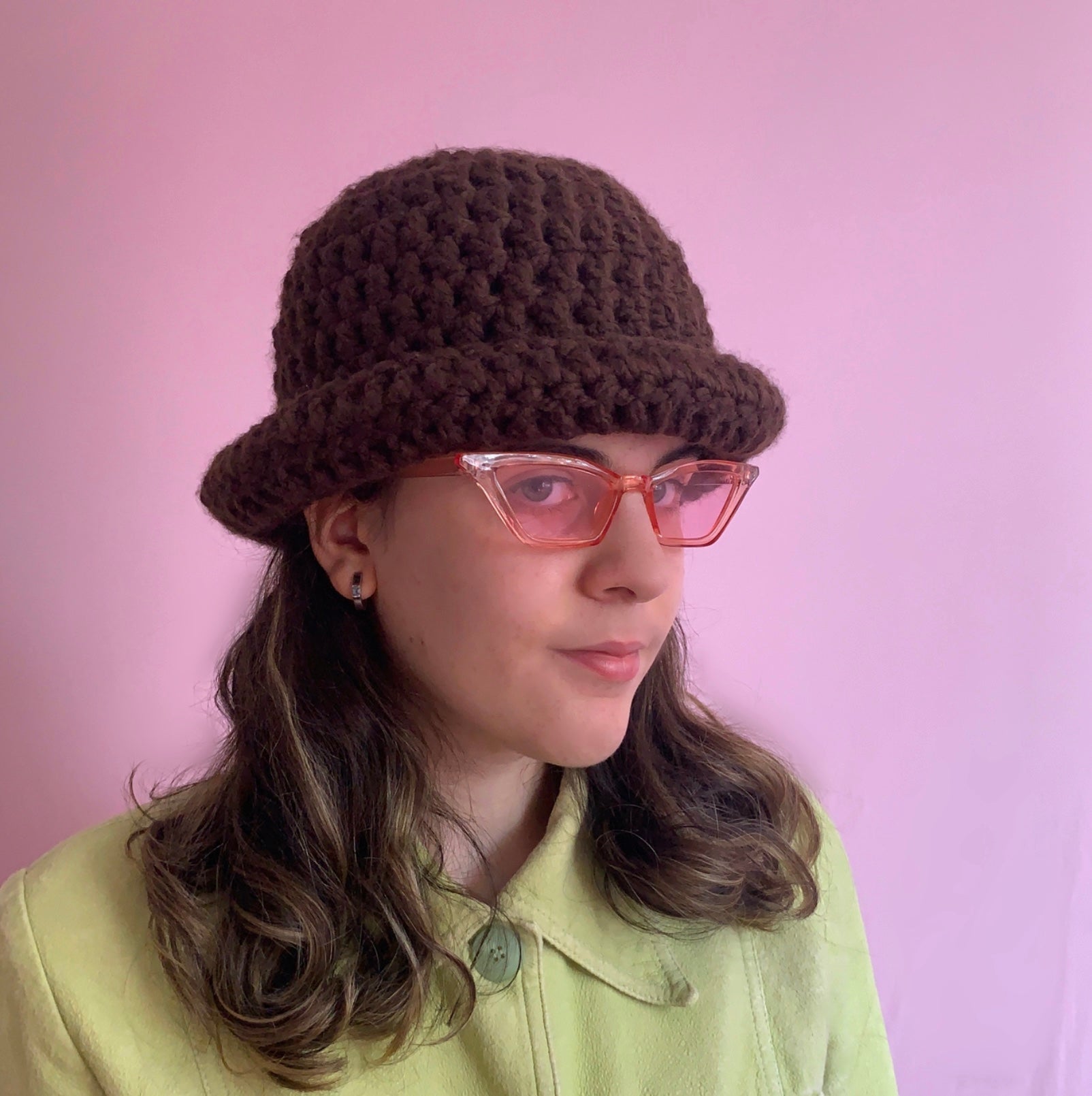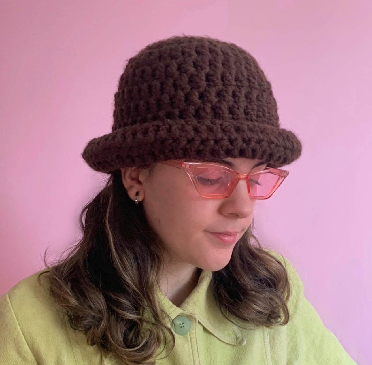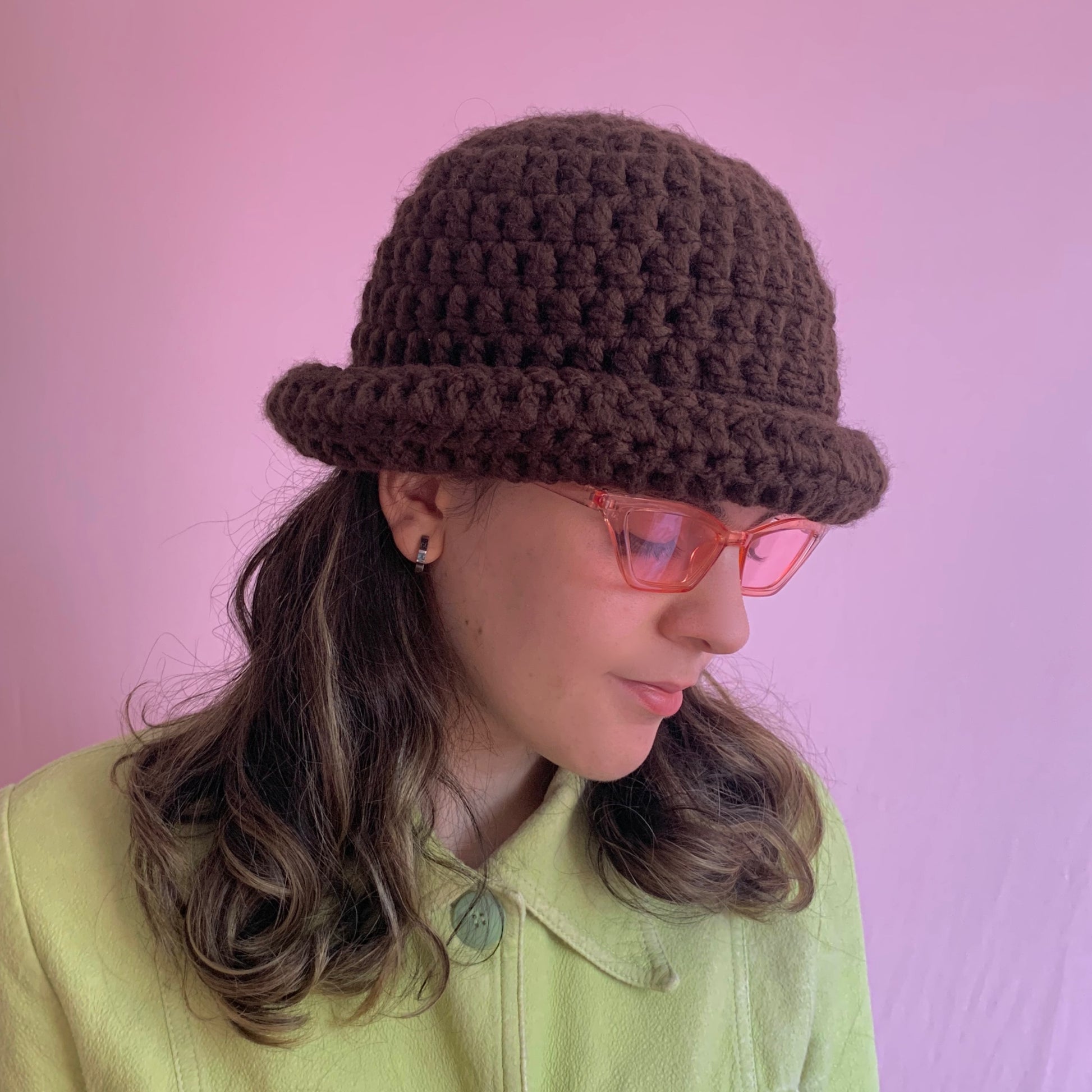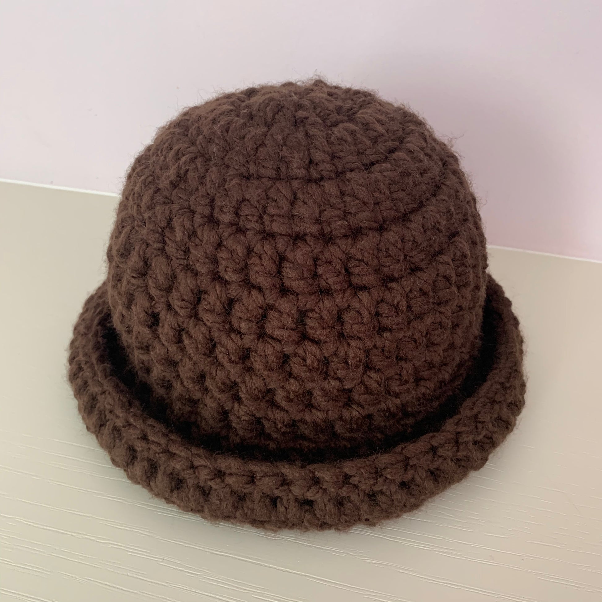 Handmade brown chunky crochet bowler hat