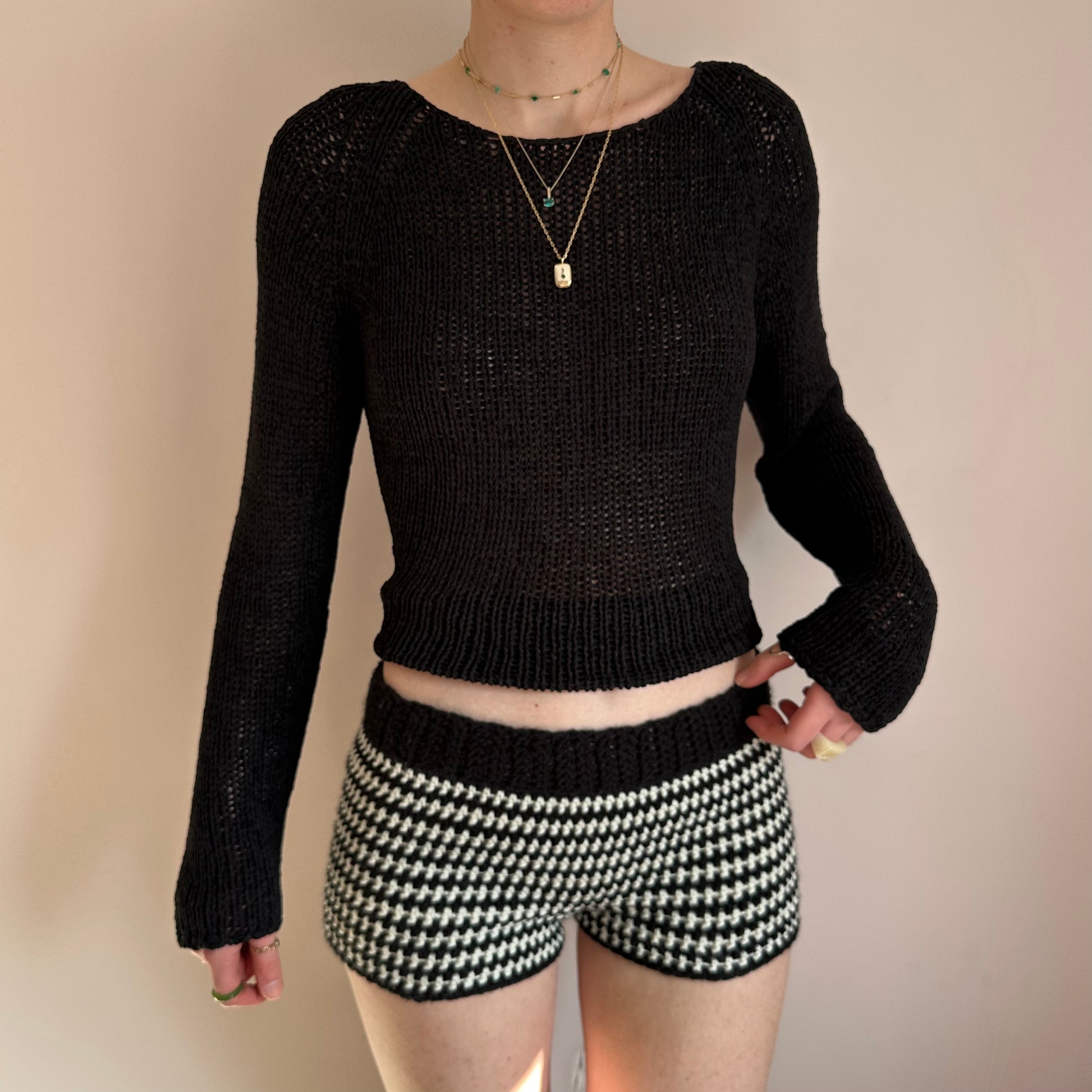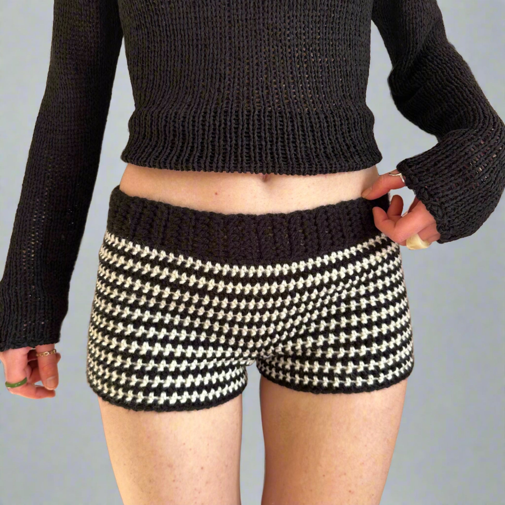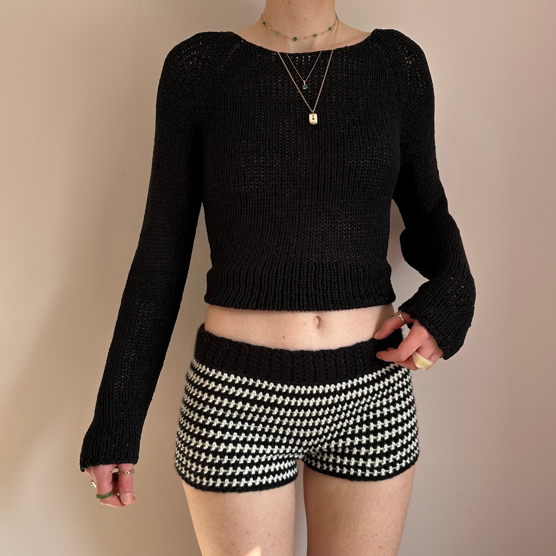 Handmade cream and black striped crochet shorts