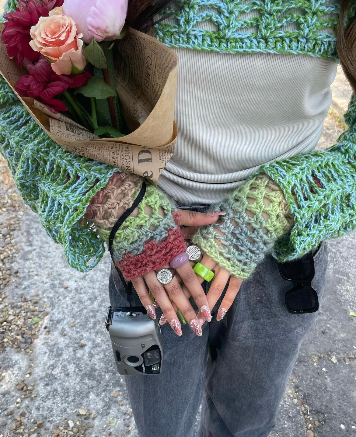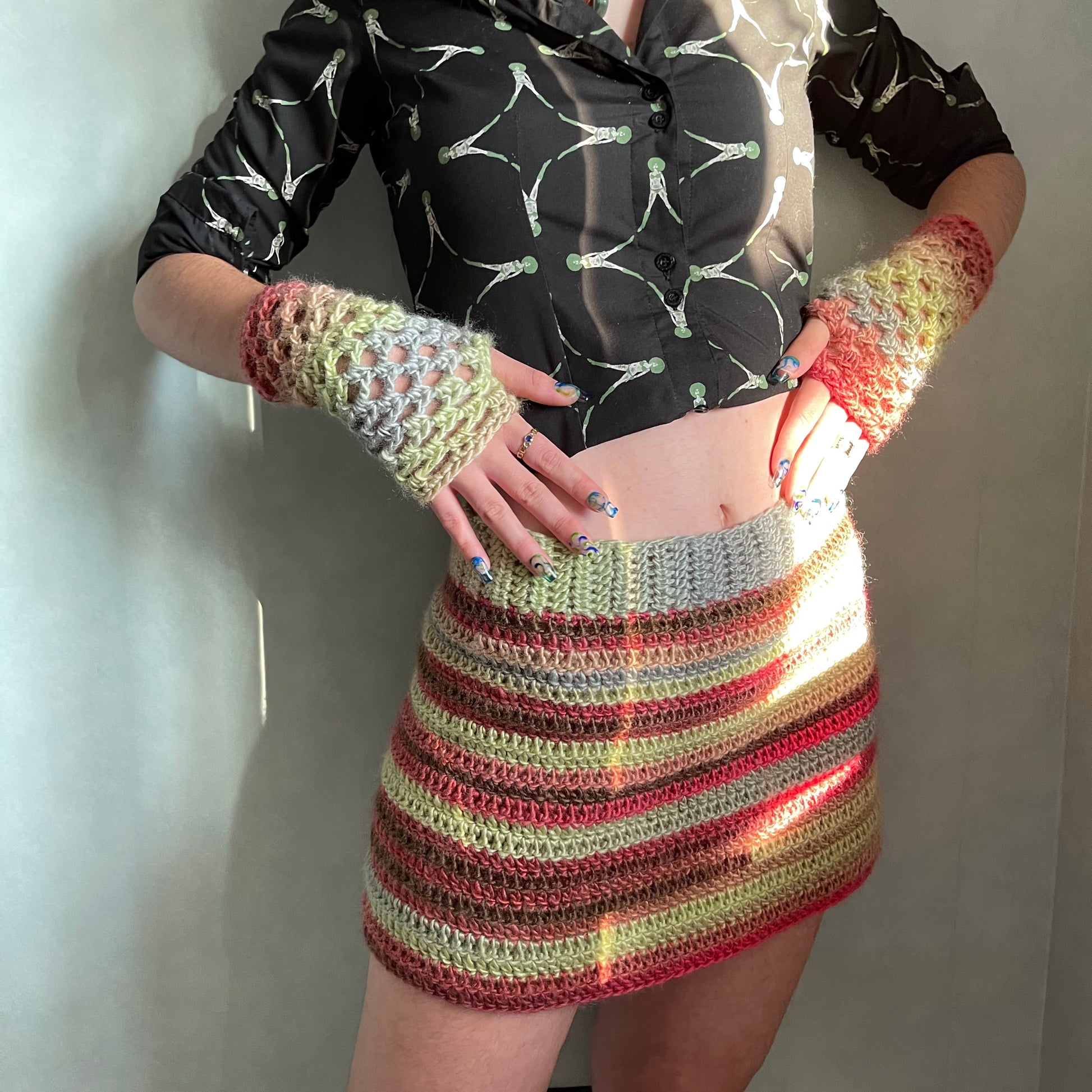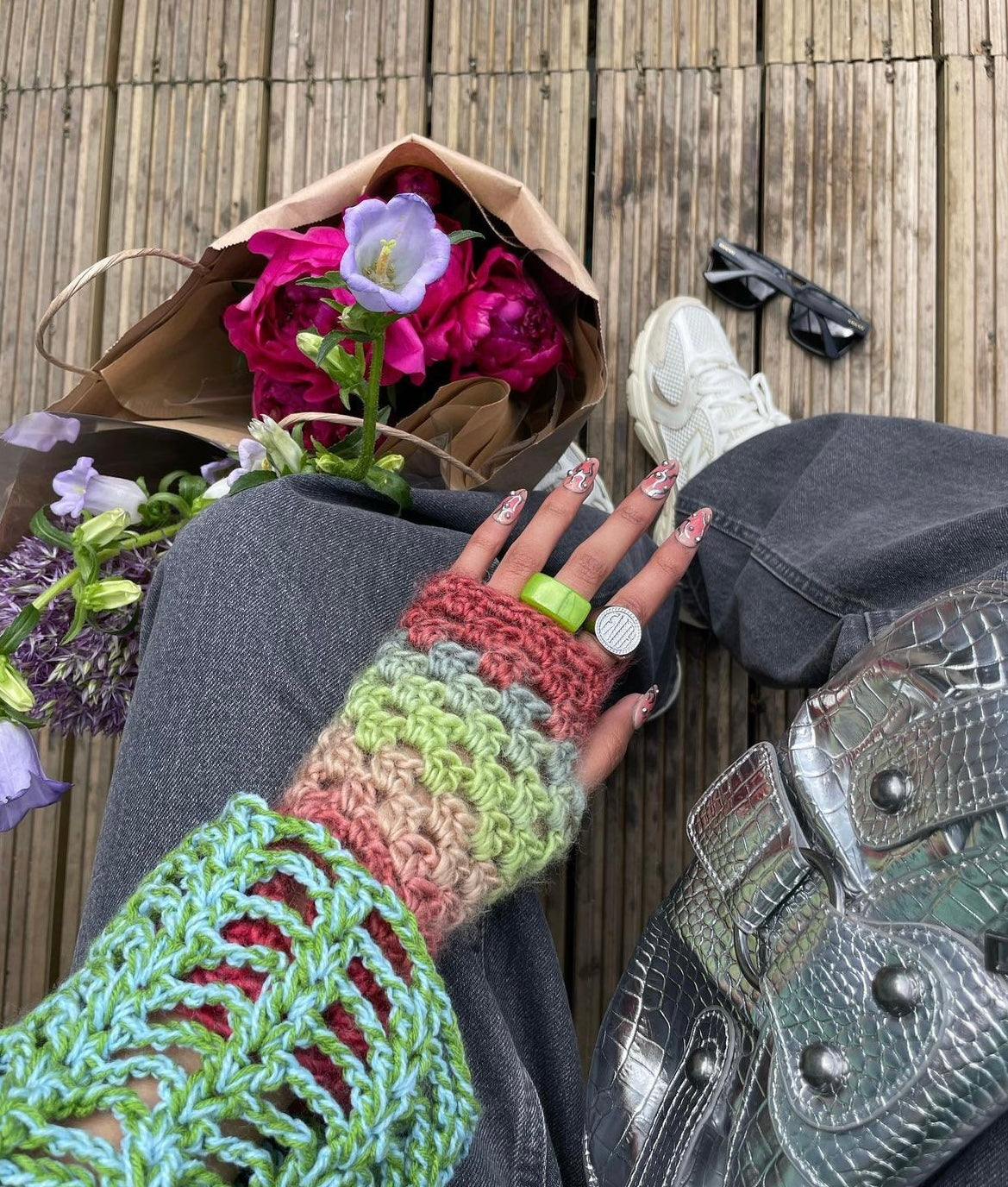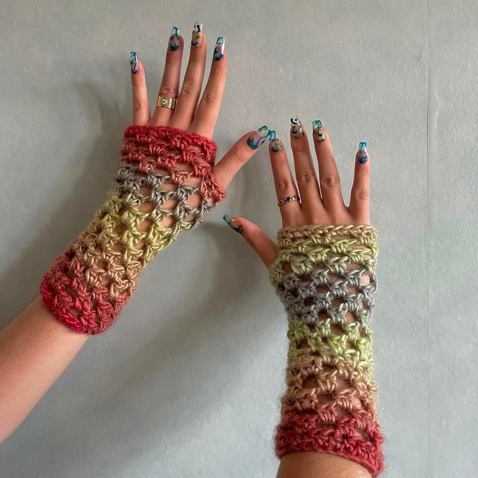 Handmade crochet fishnet fingerless gloves in a gorgeous ombré colourway! 🧚🏼🦋