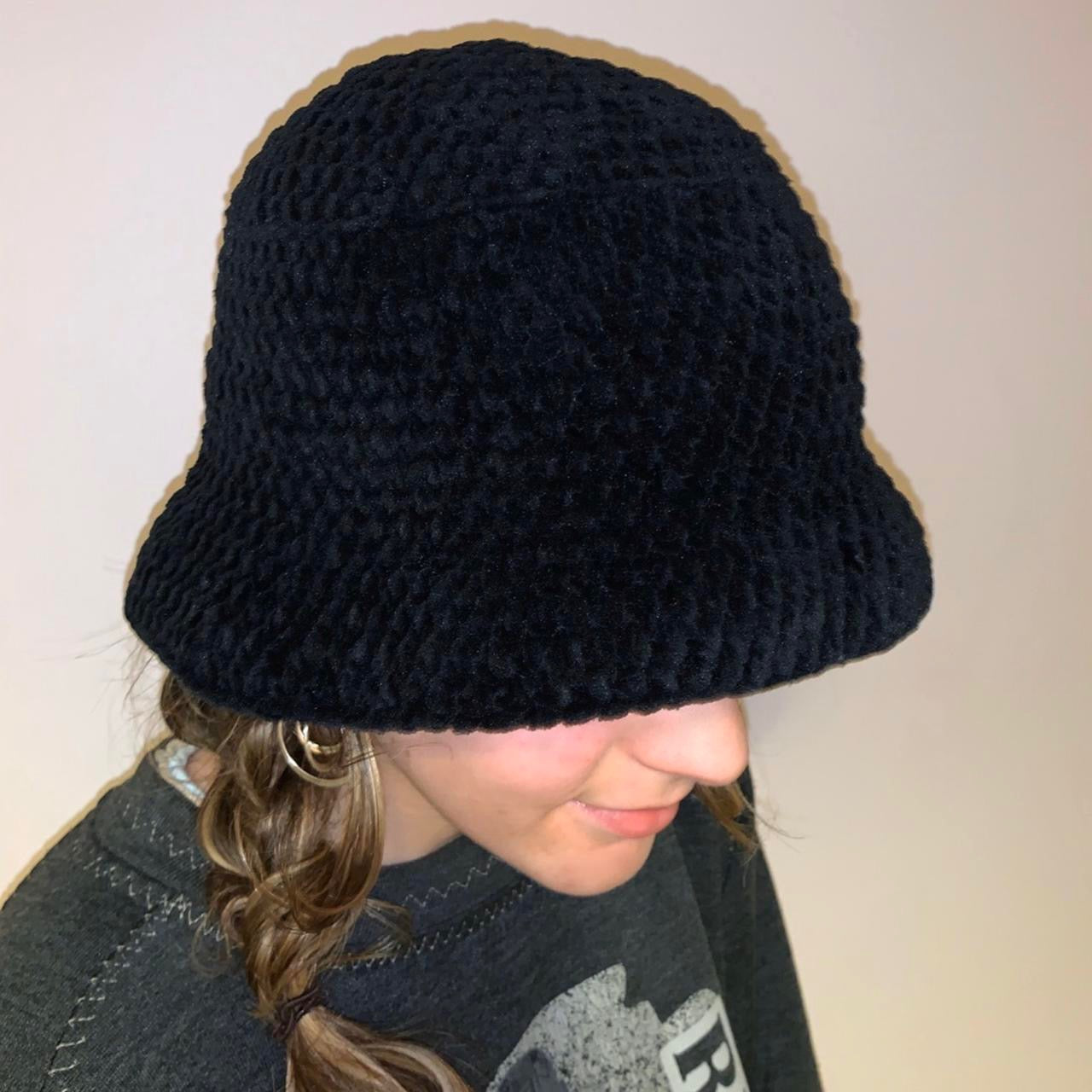 HANDMADE TO ORDER super soft crushed velvet black crochet bucket hat 🖤