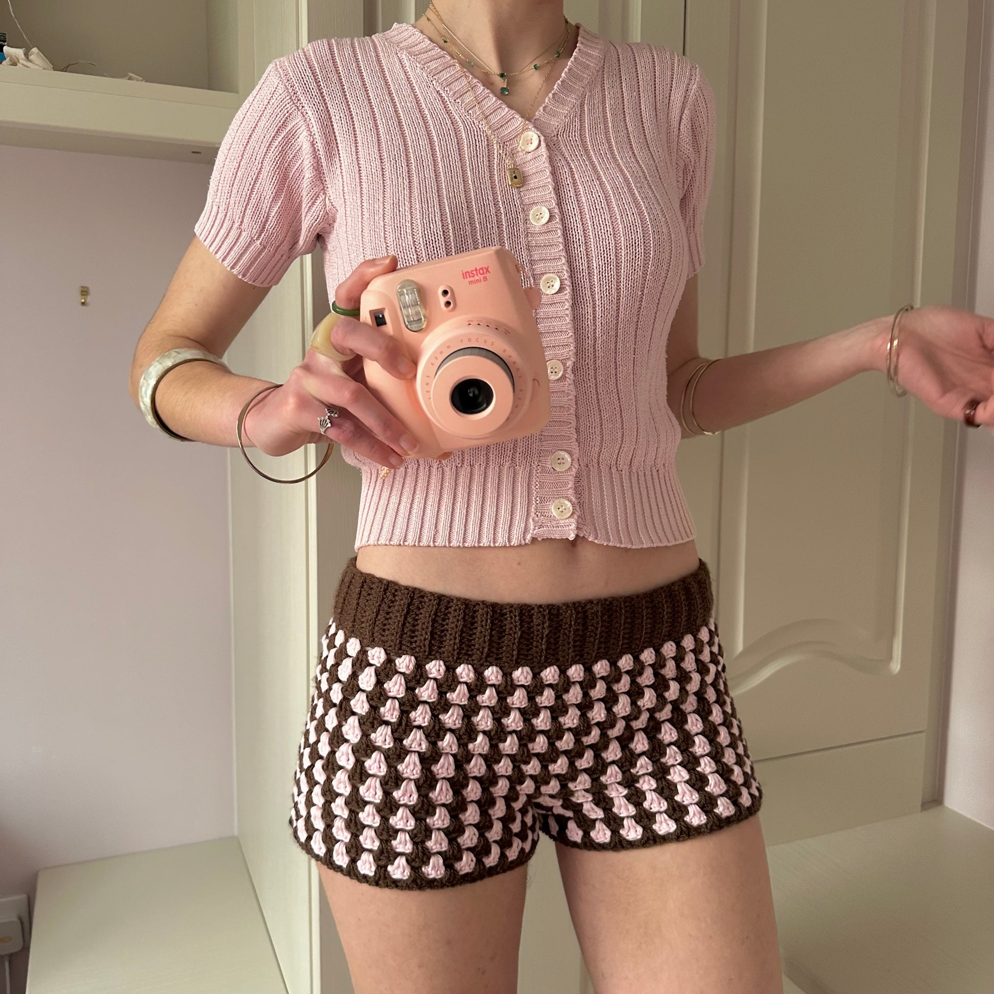 Super flattering fit! ๐ค๐ธ Retro pink and brown checkered patternย