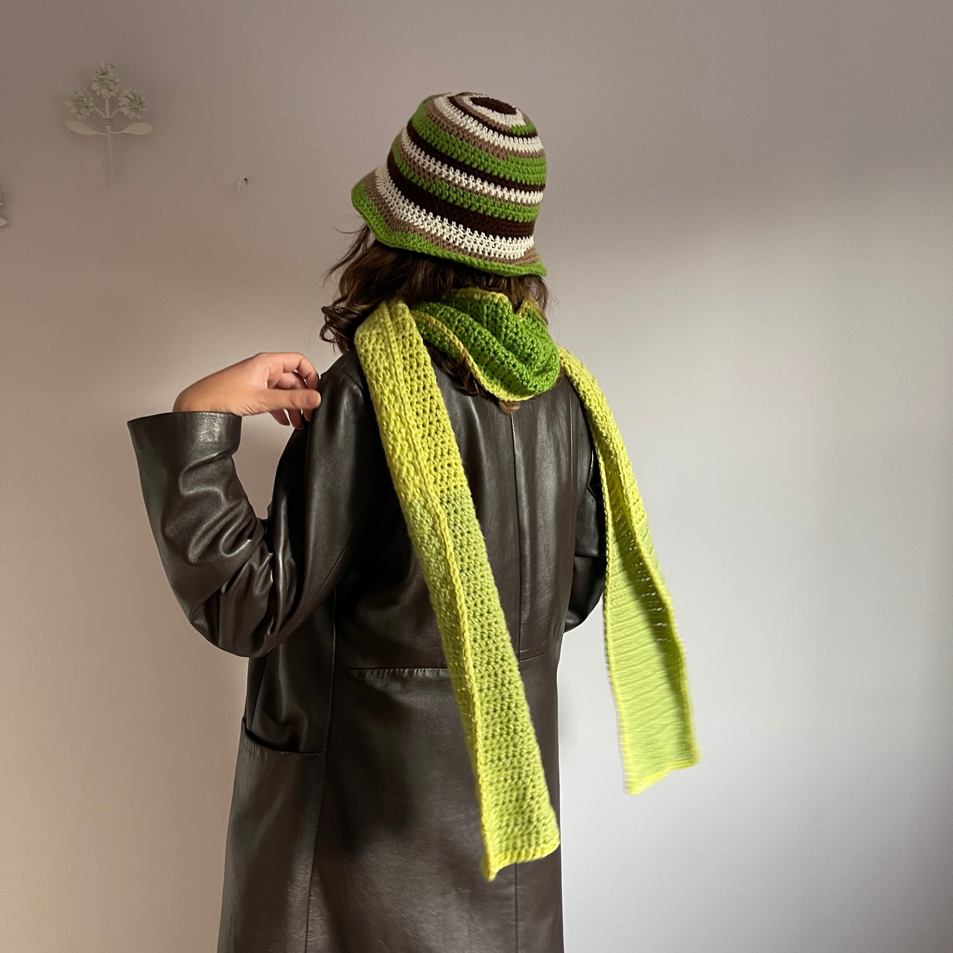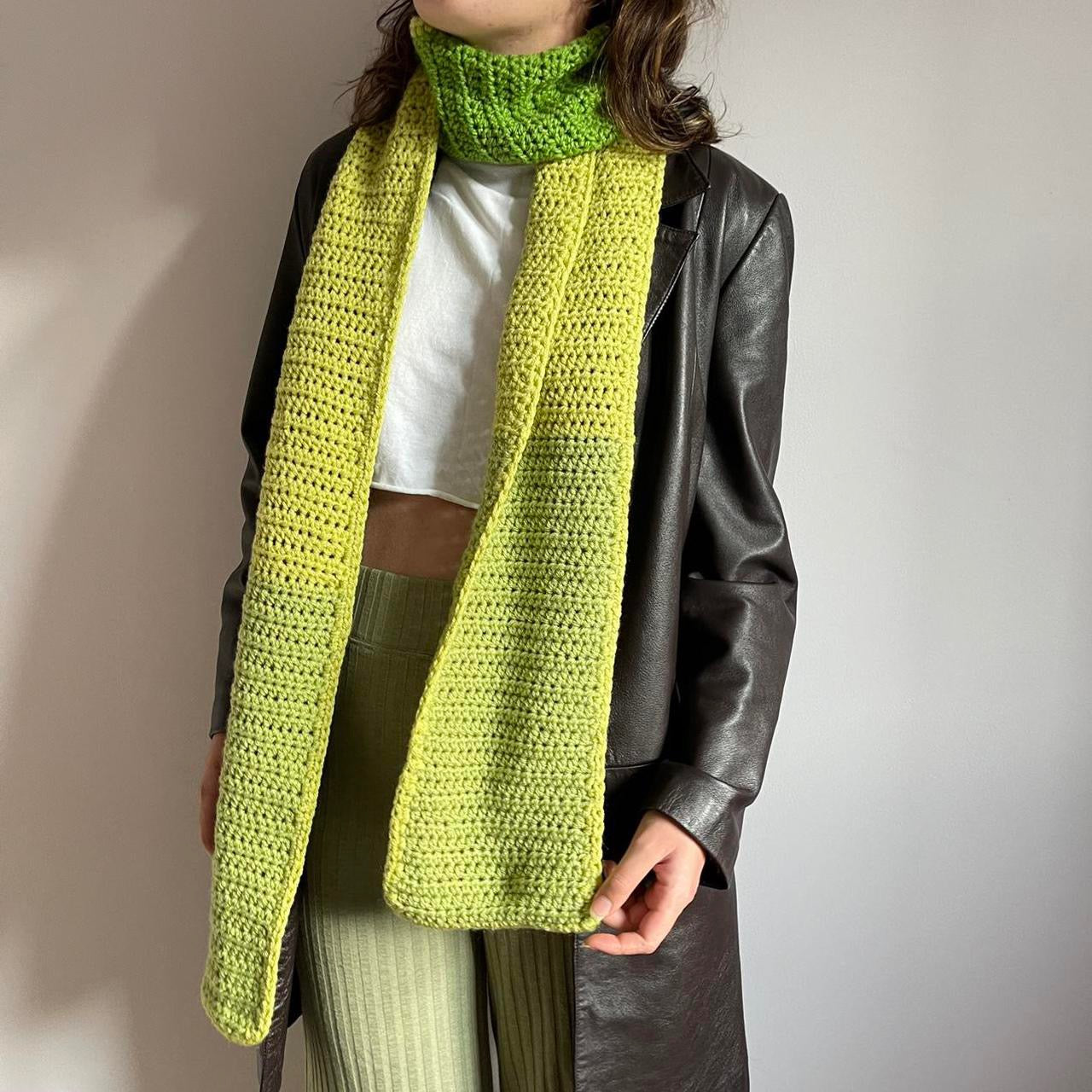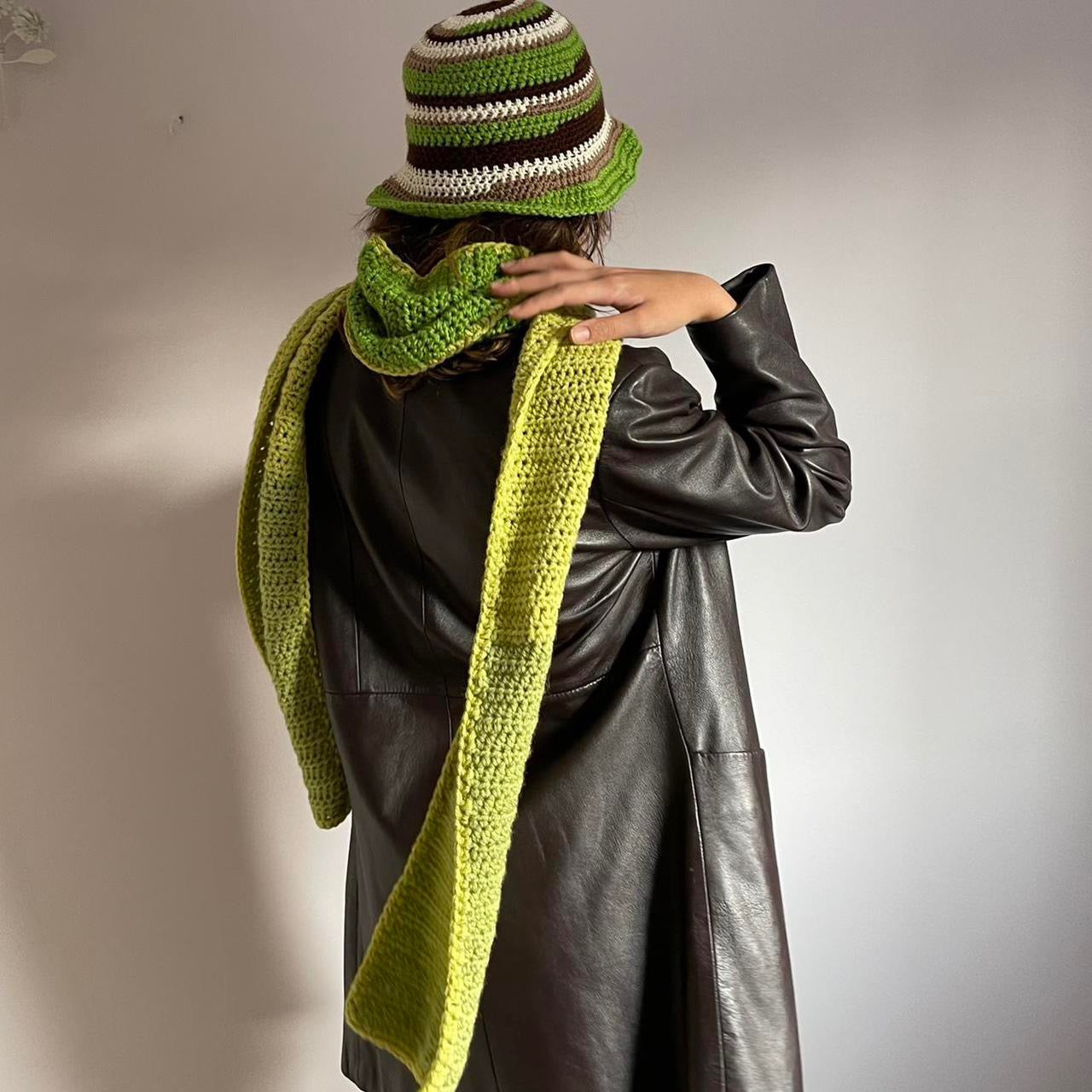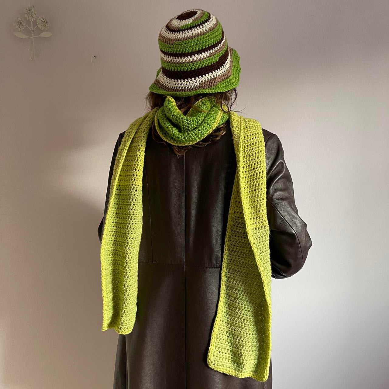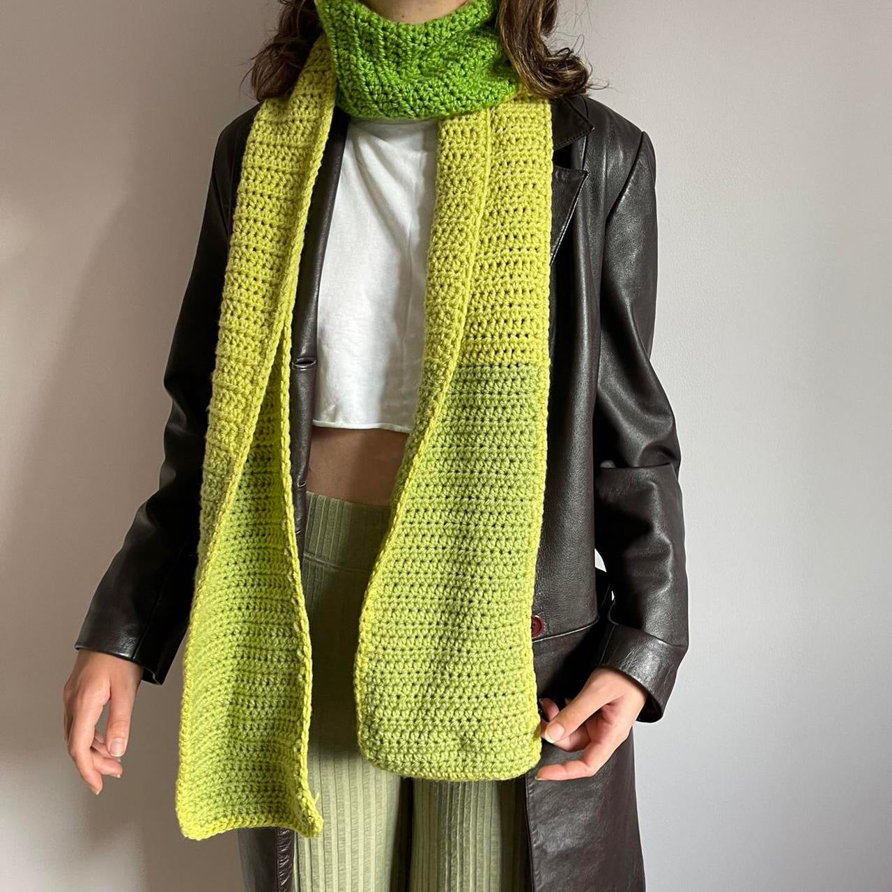 🍏 The cutest handmade to order colour block green crochet scarf 🧝🏽♀️