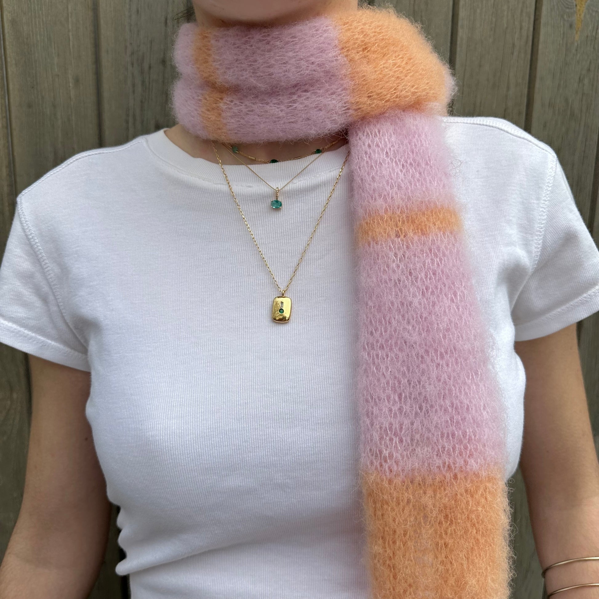 Knit mohair stripy scarf in pastel pink and orange, the perfect addition to your outfit! So cosy 🌸🍊
