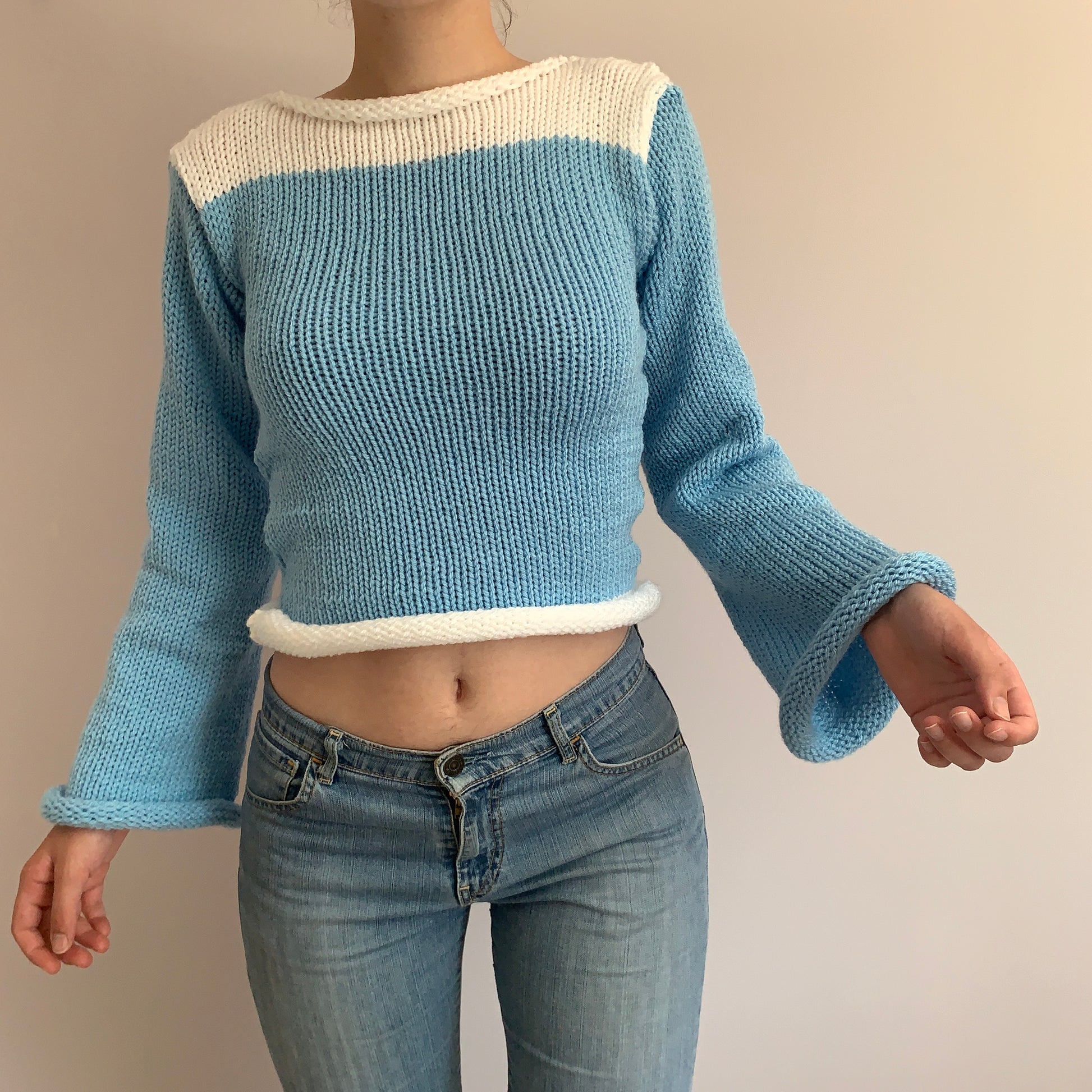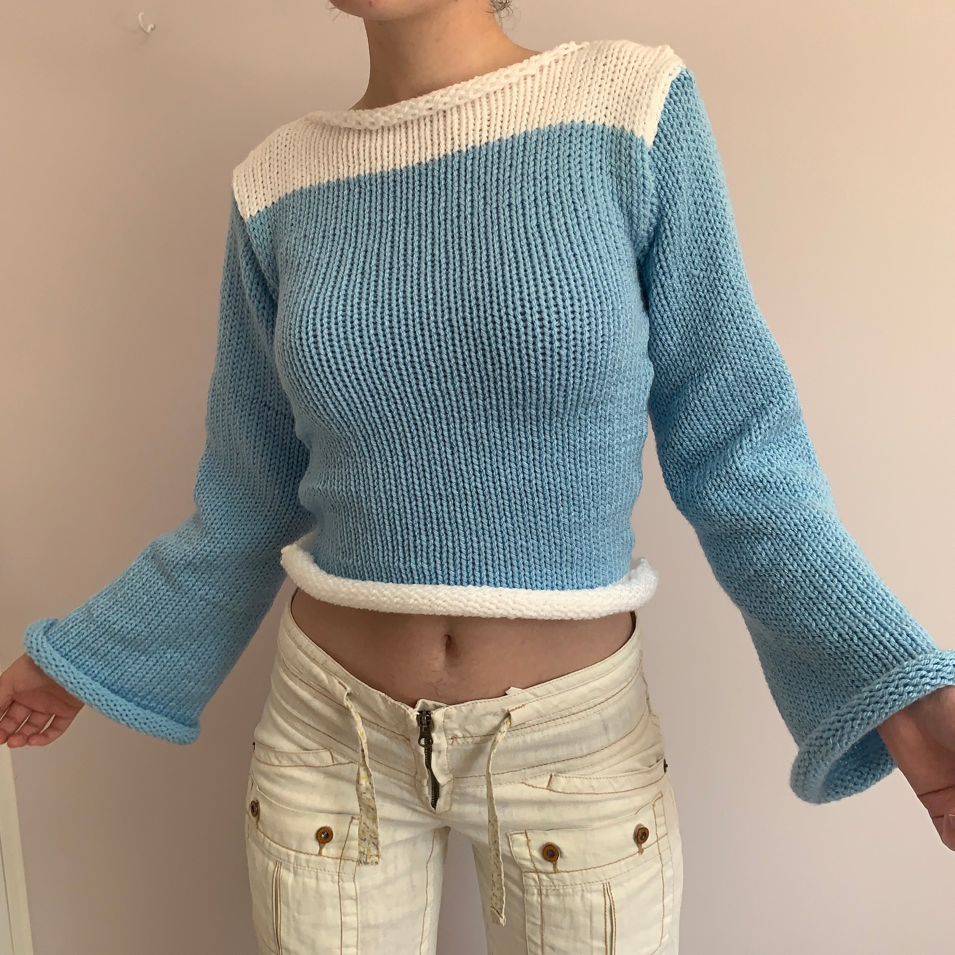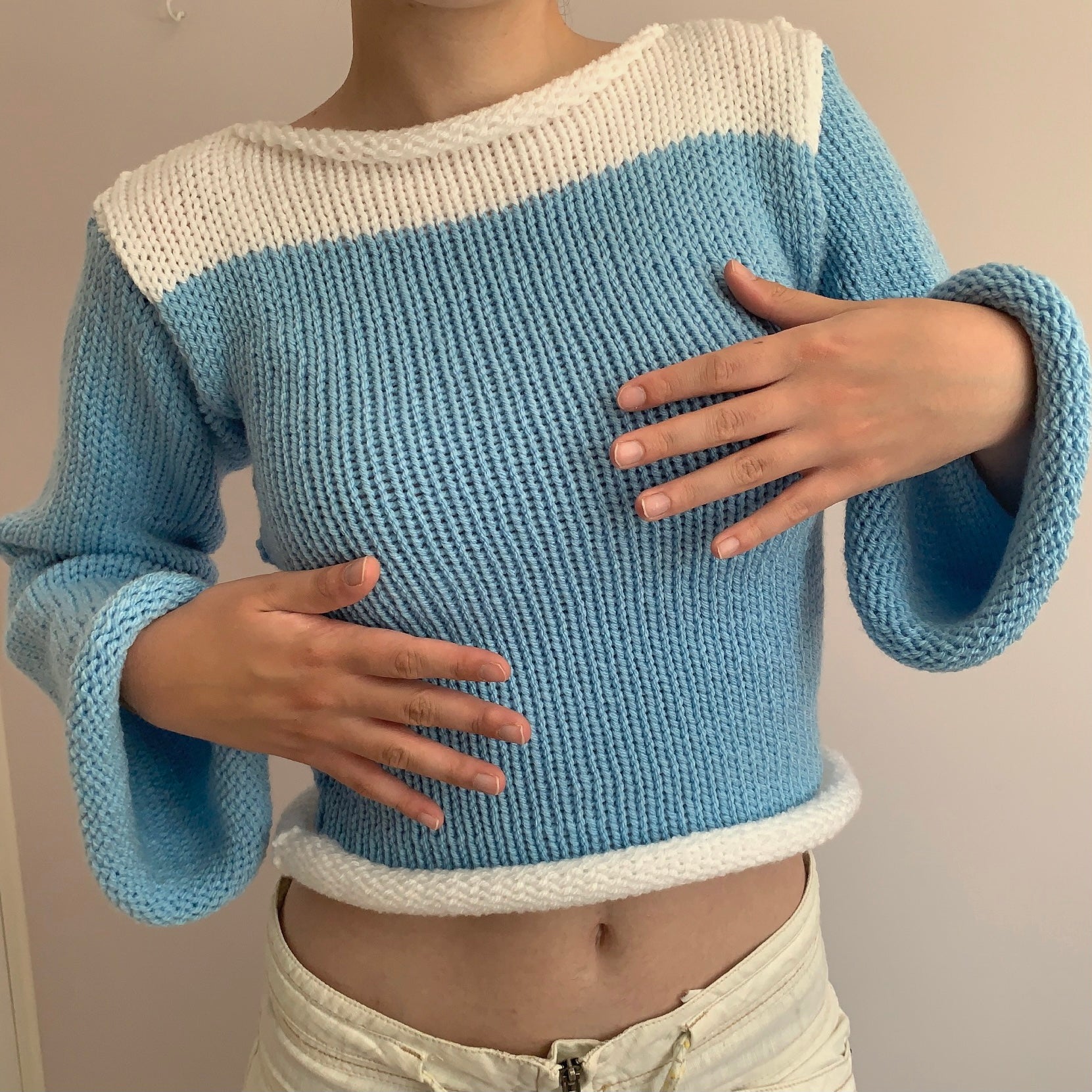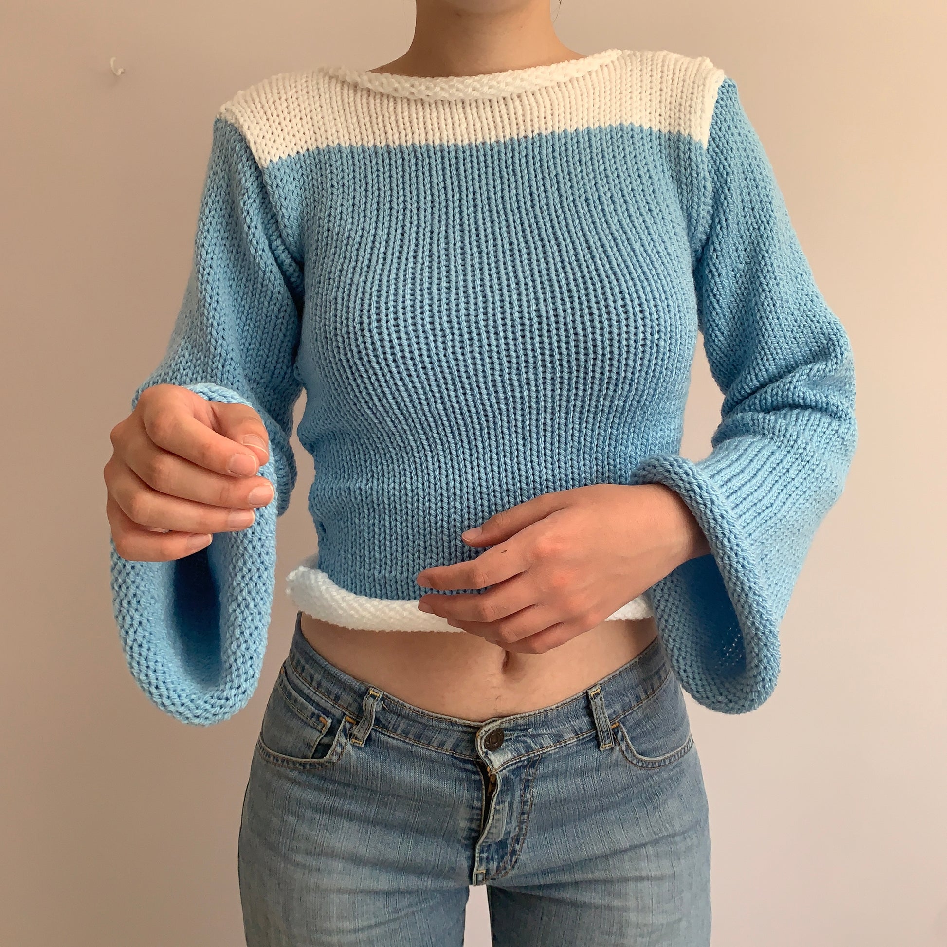 Handmade knitted colour jumper with the cutest flared / bell sleeves! The most beautiful colours and the perfect statement piece 🐬