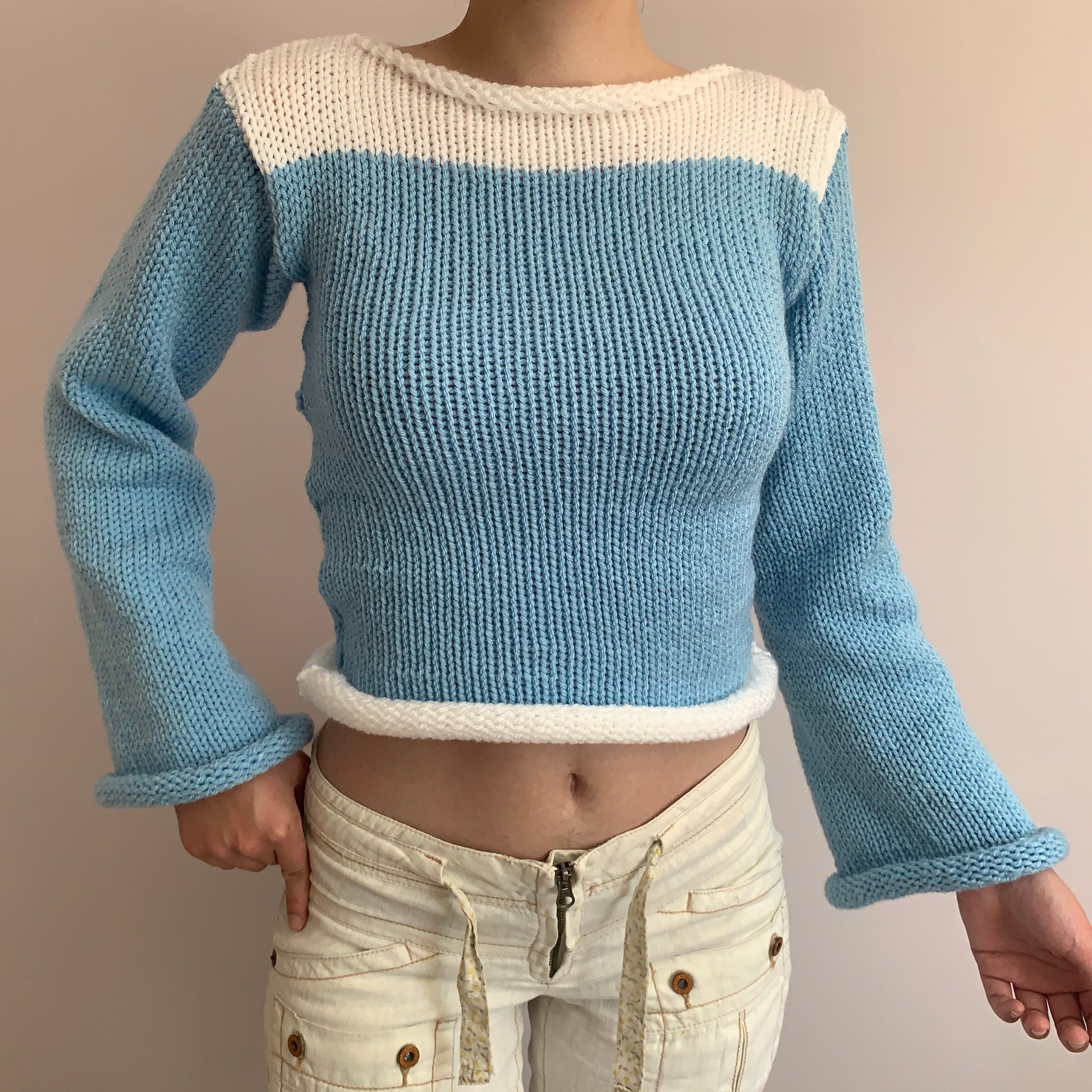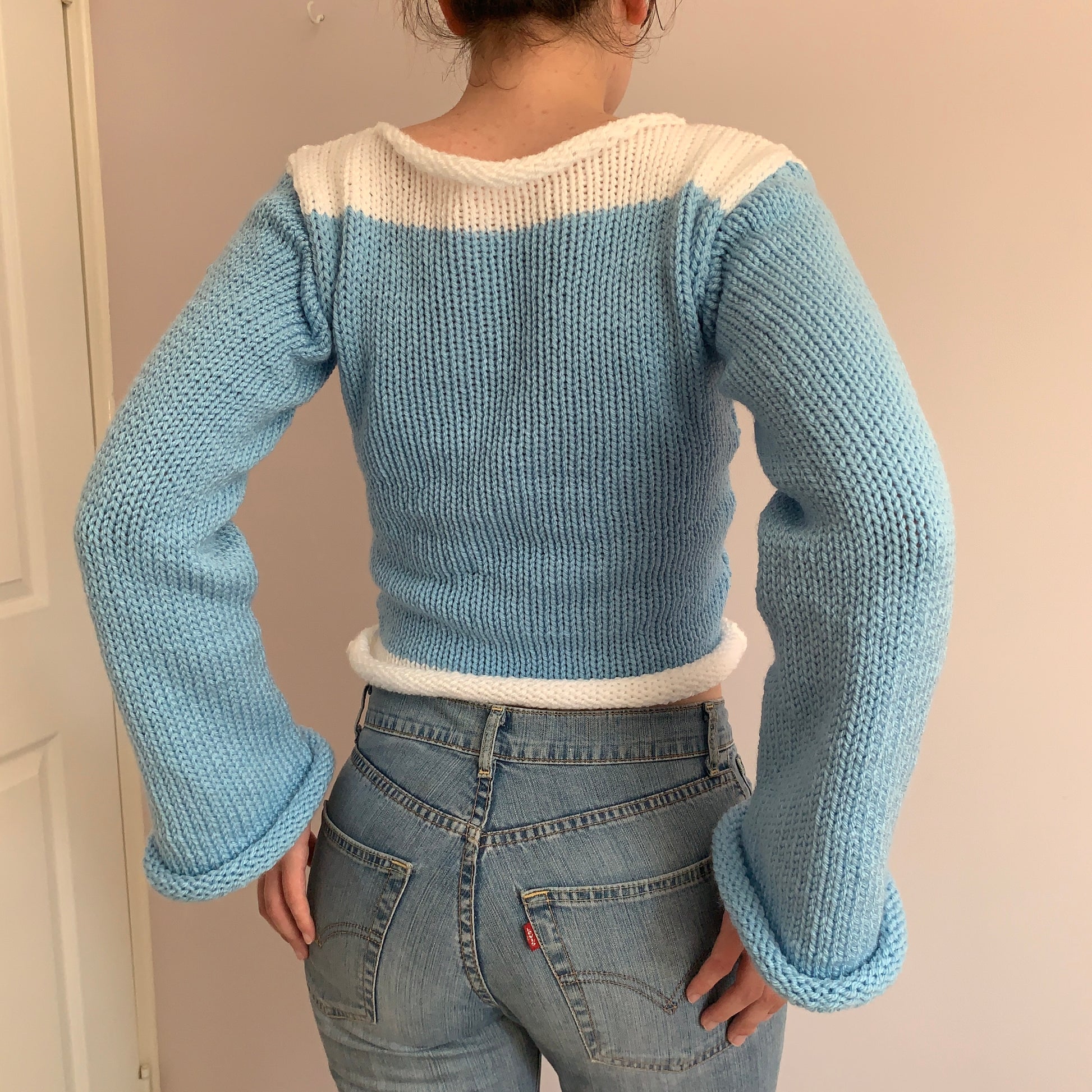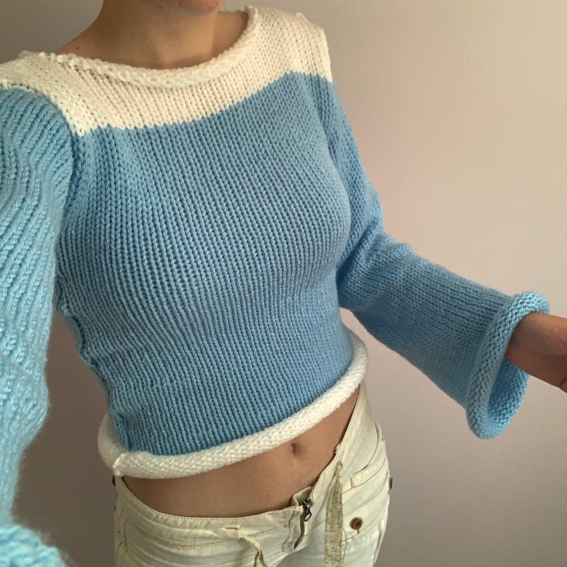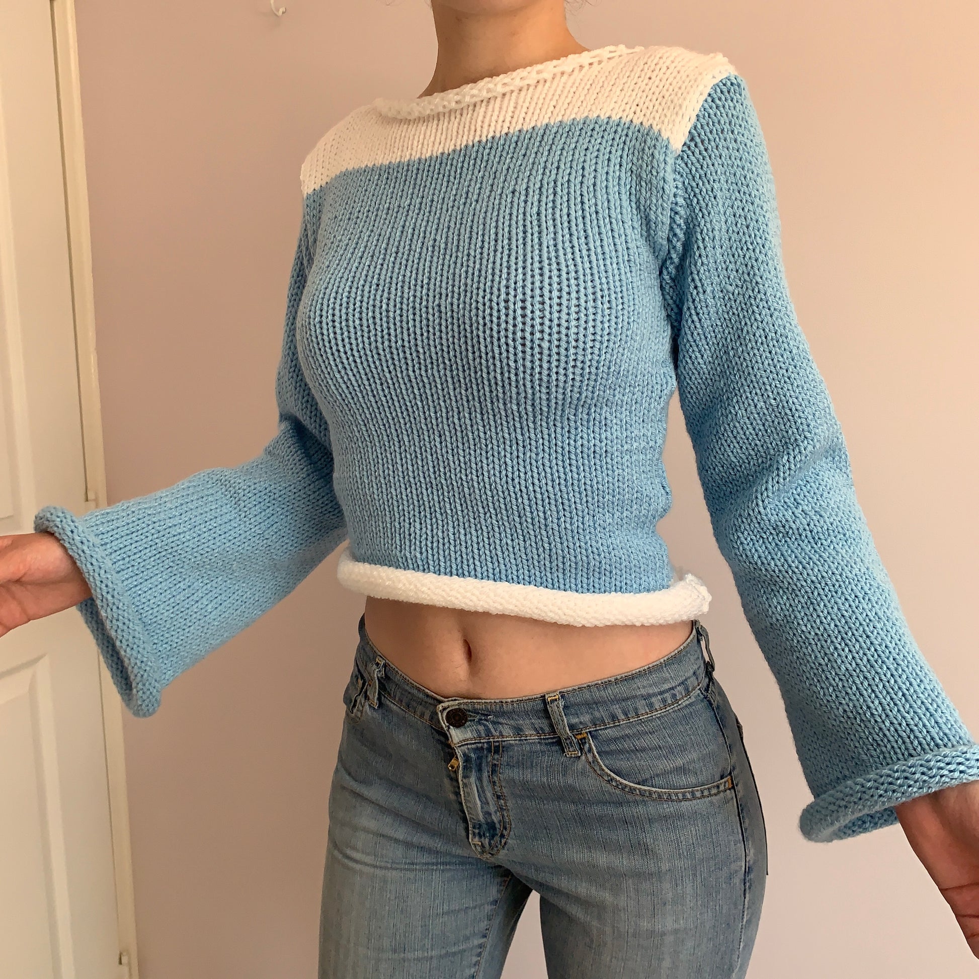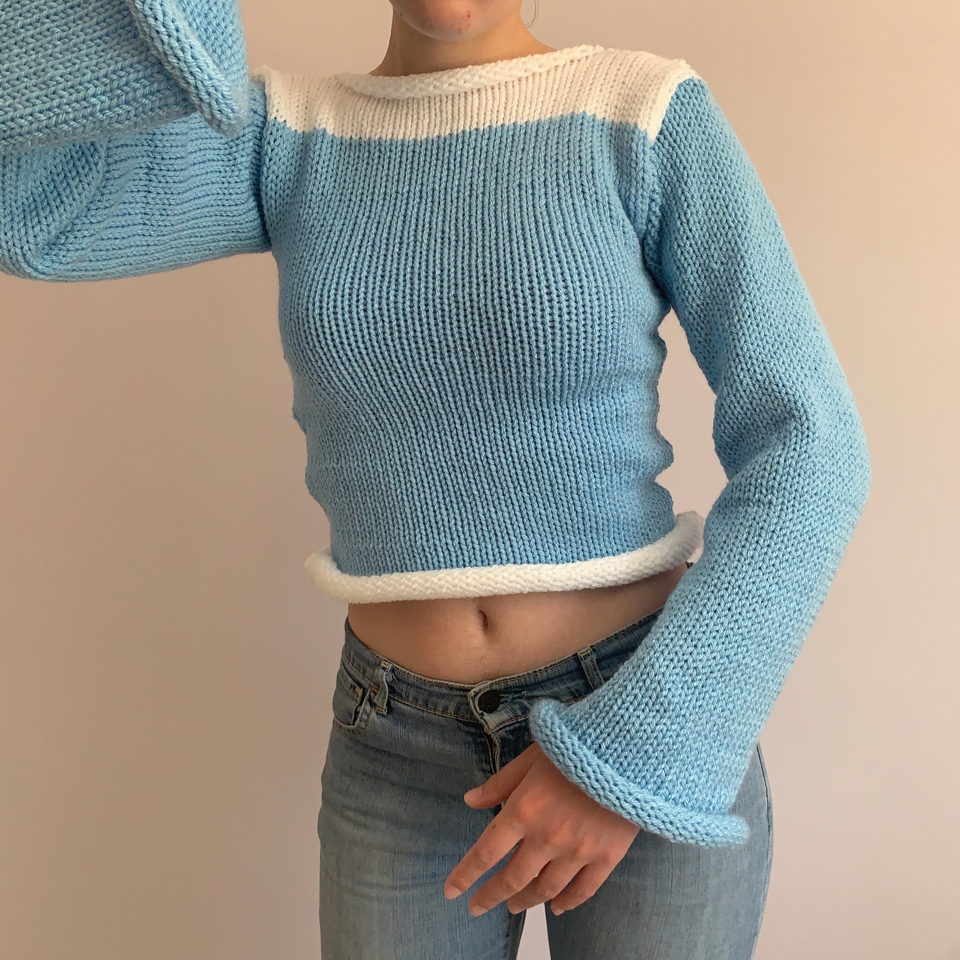 Handmade knitted colour jumper with the cutest flared / bell sleeves! The most beautiful colours and the perfect statement piece 🐬