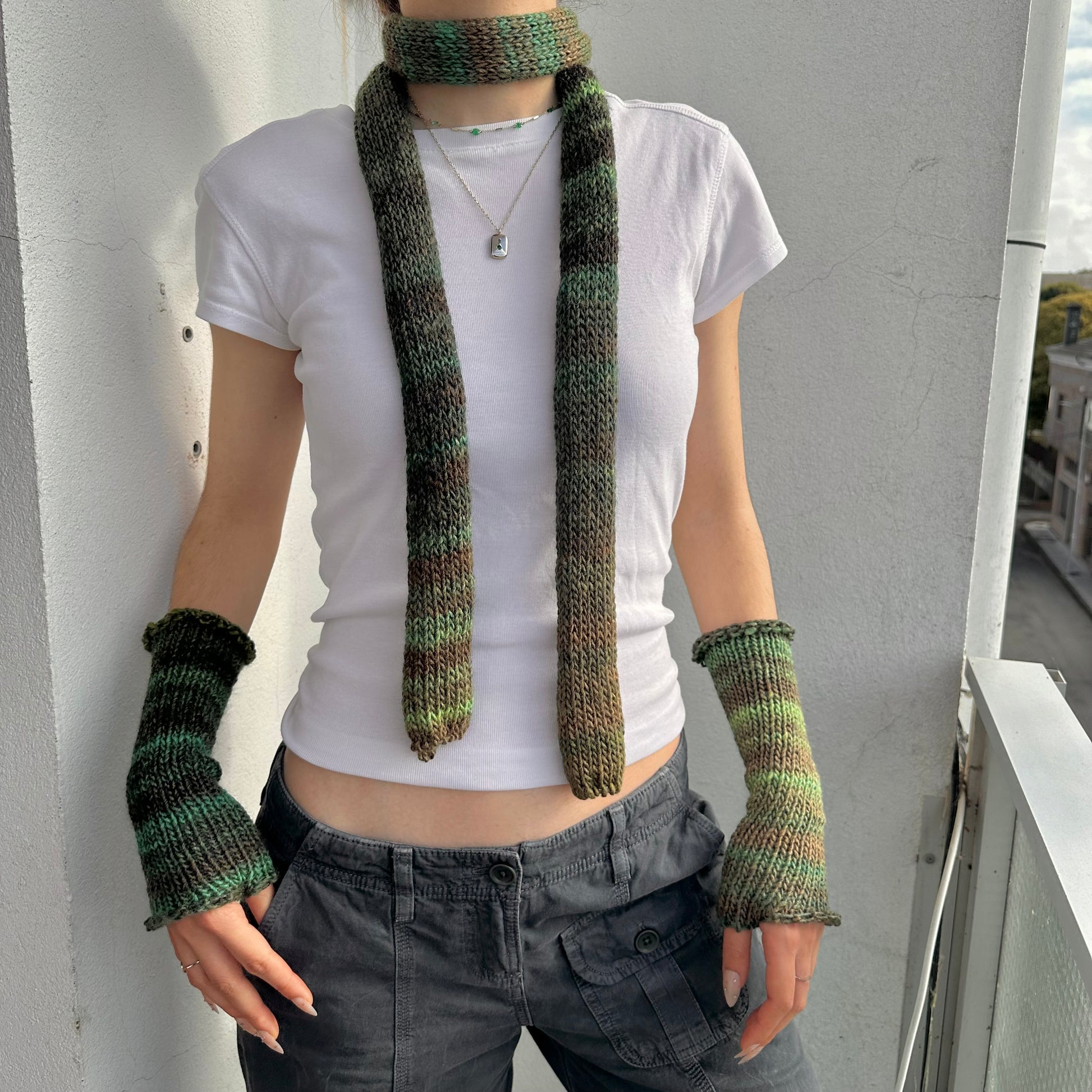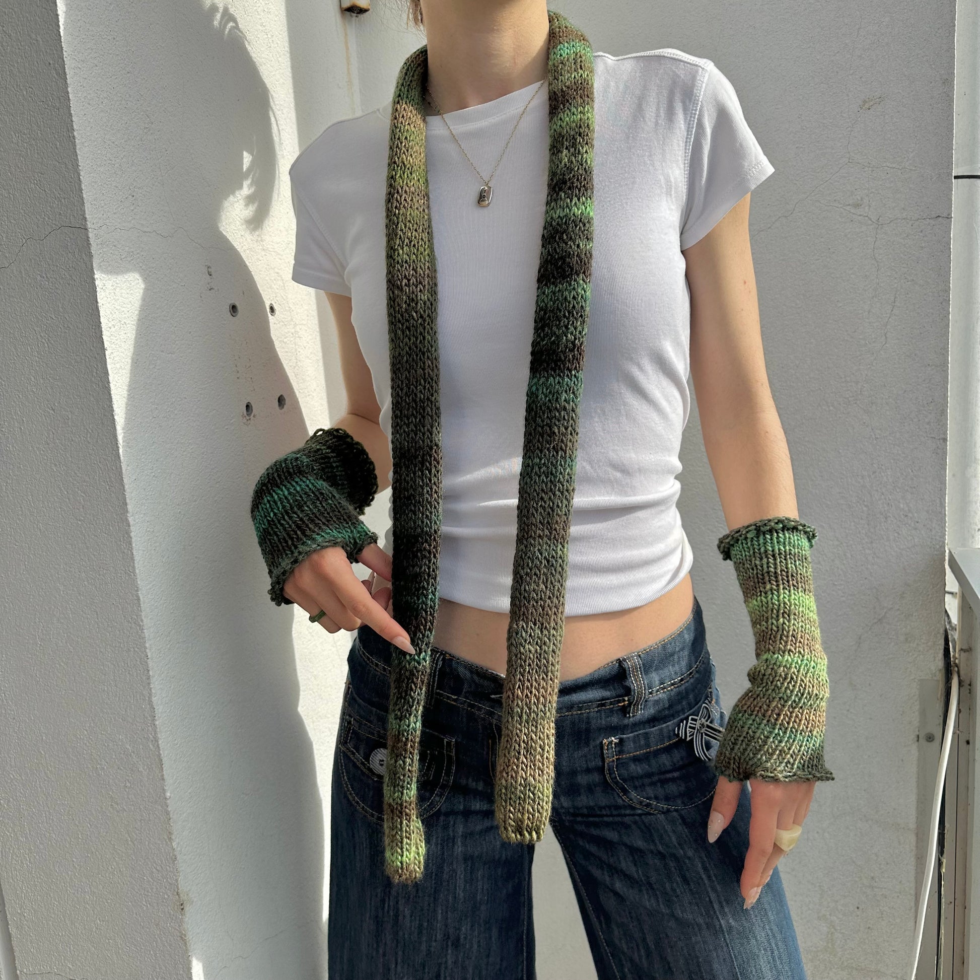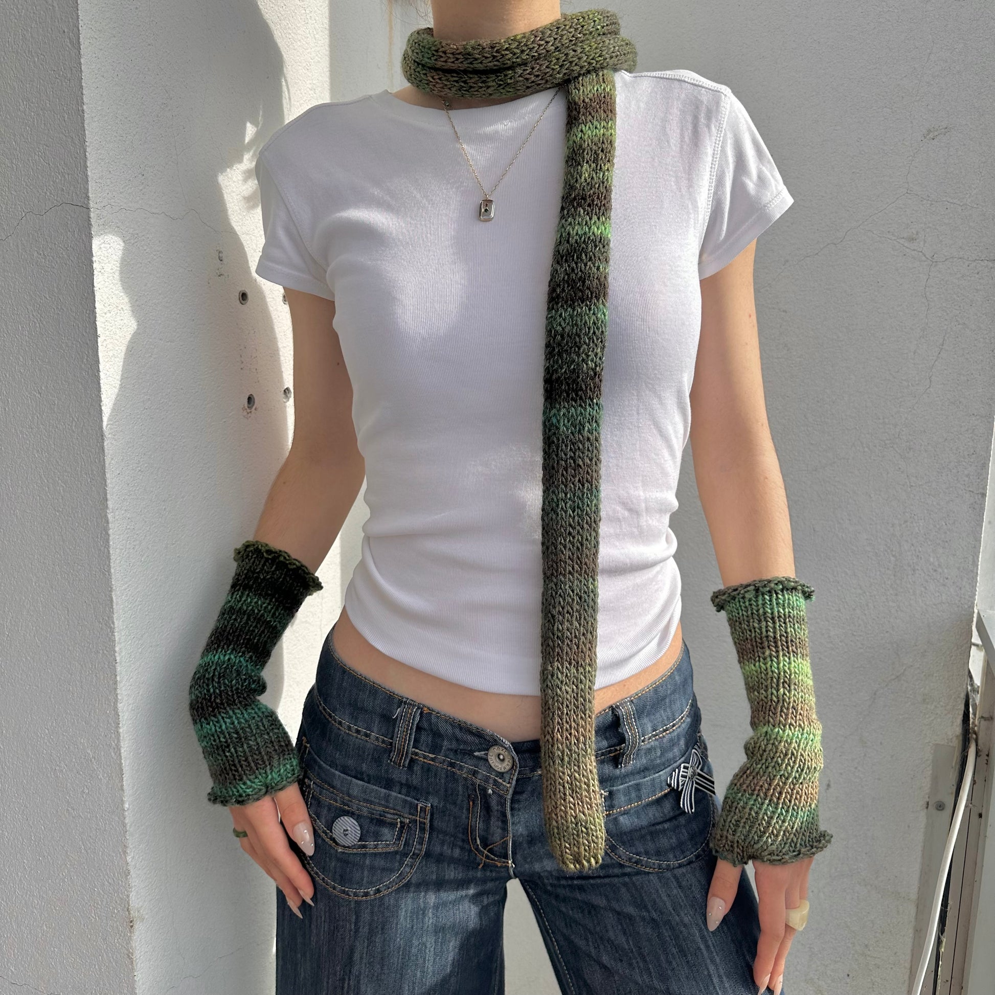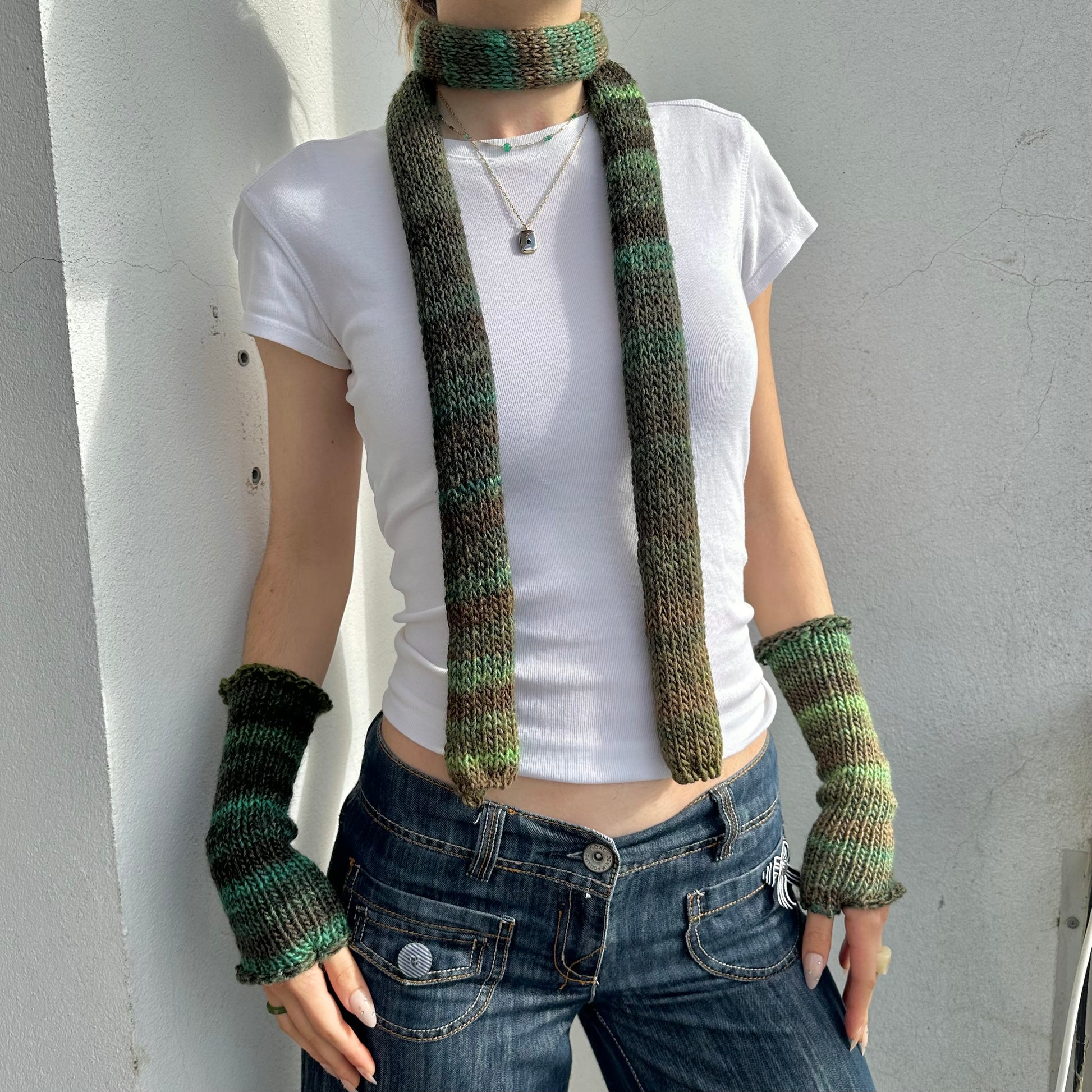 Ombré knit skinny scarf in the most gorgeous green colours - the perfect addition to your outfit. Great for all year round! 🍃