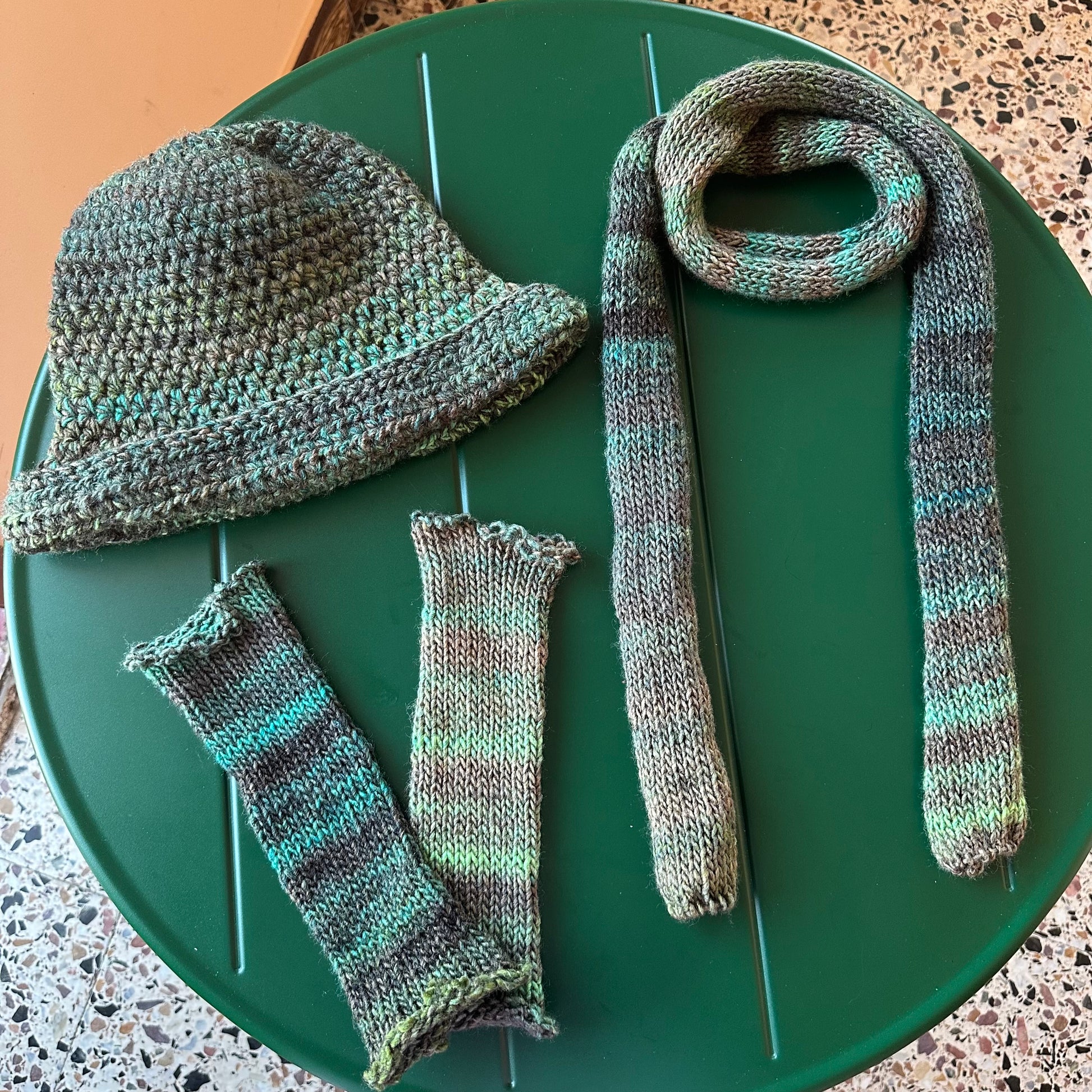 Handmade knitted green ombré skinny scarf