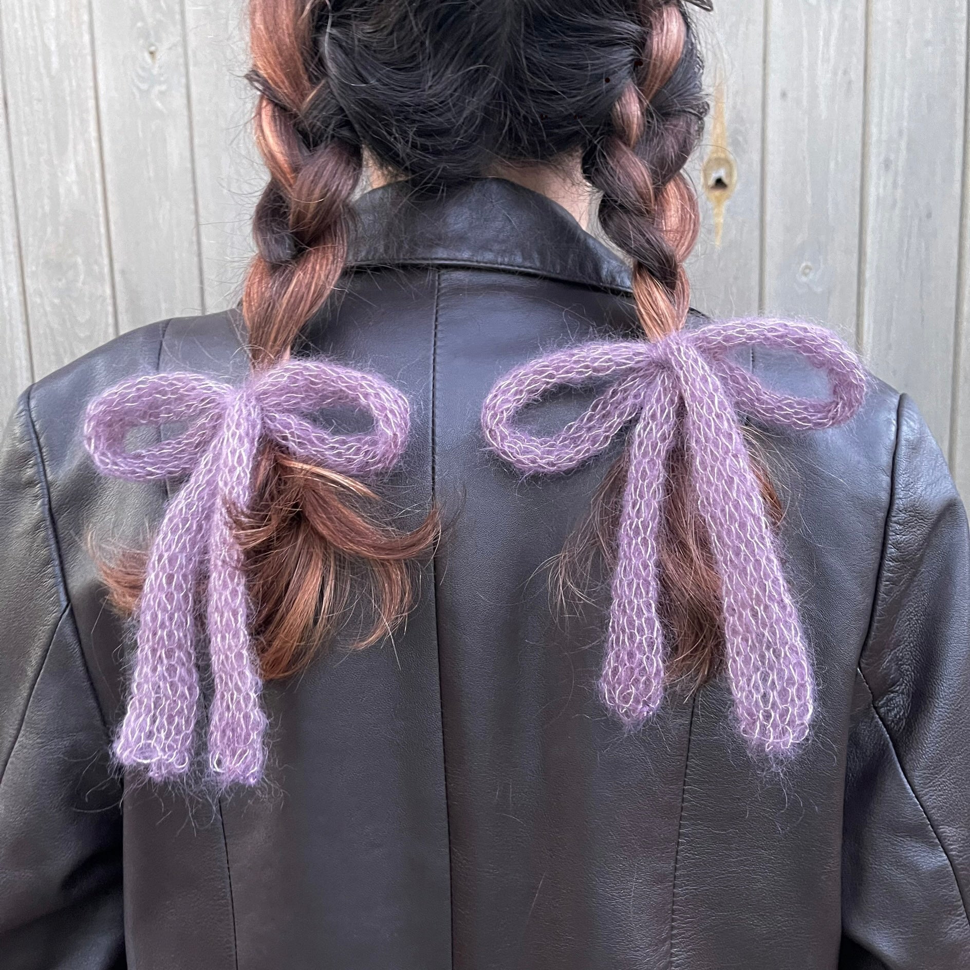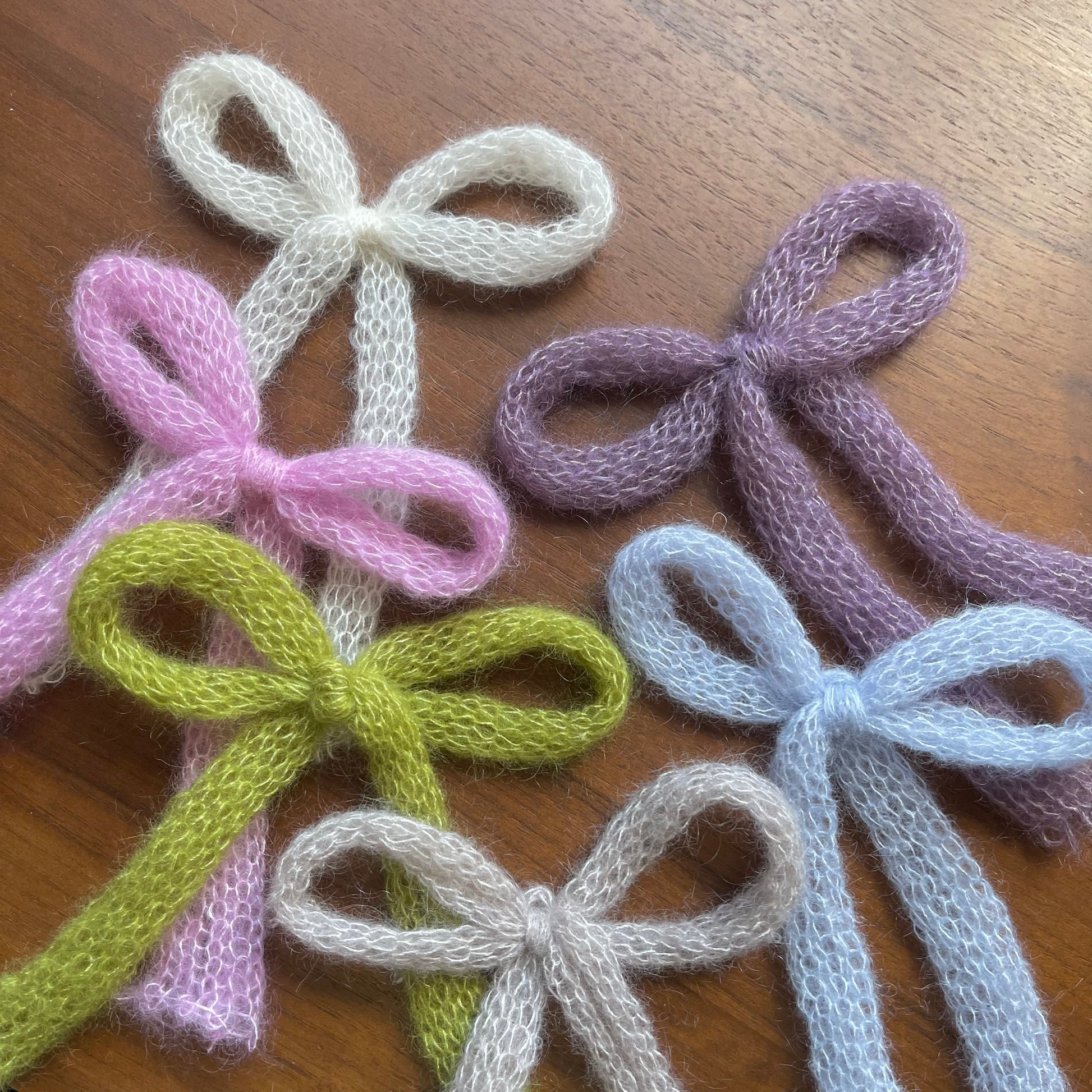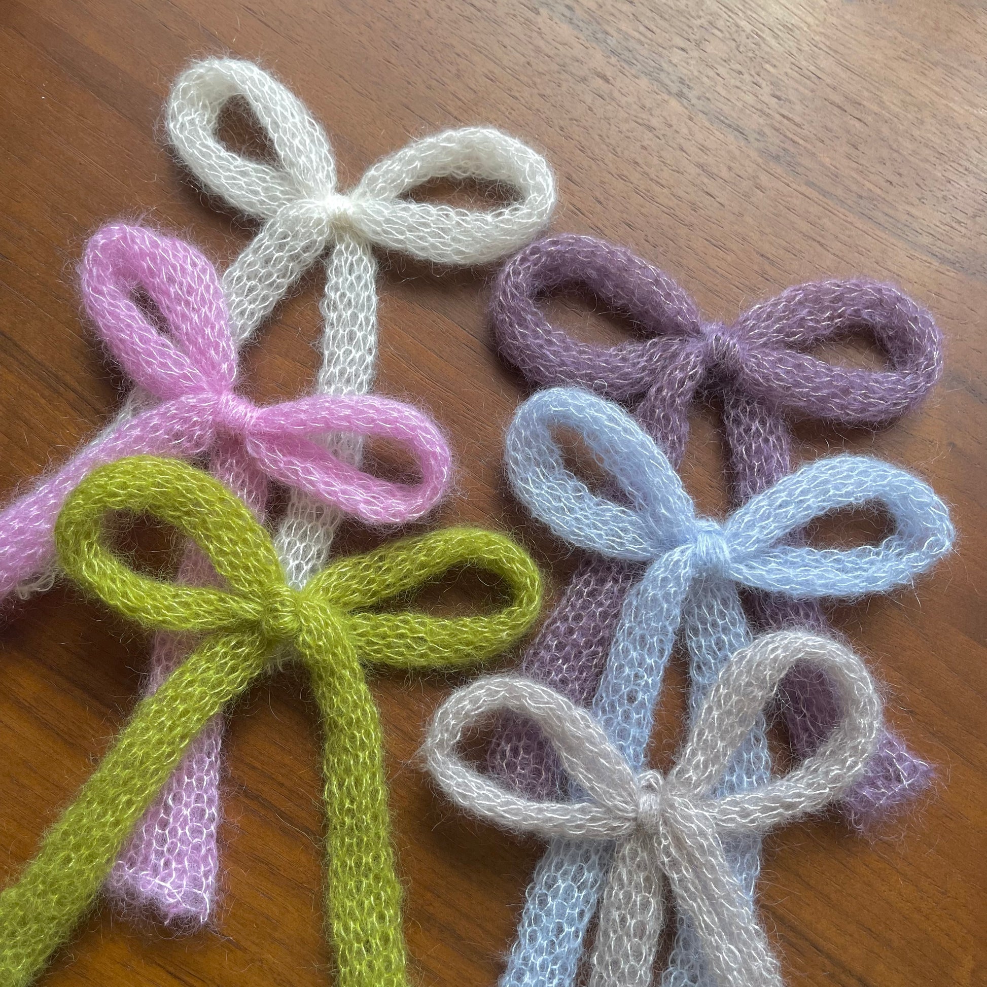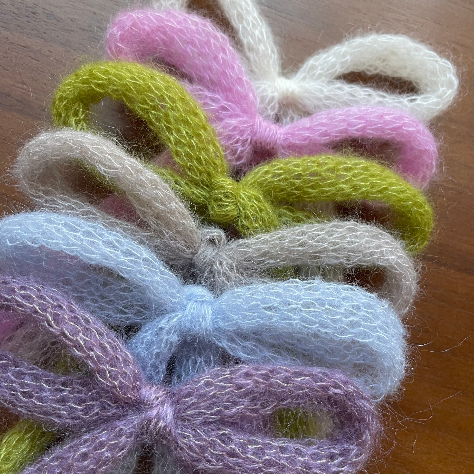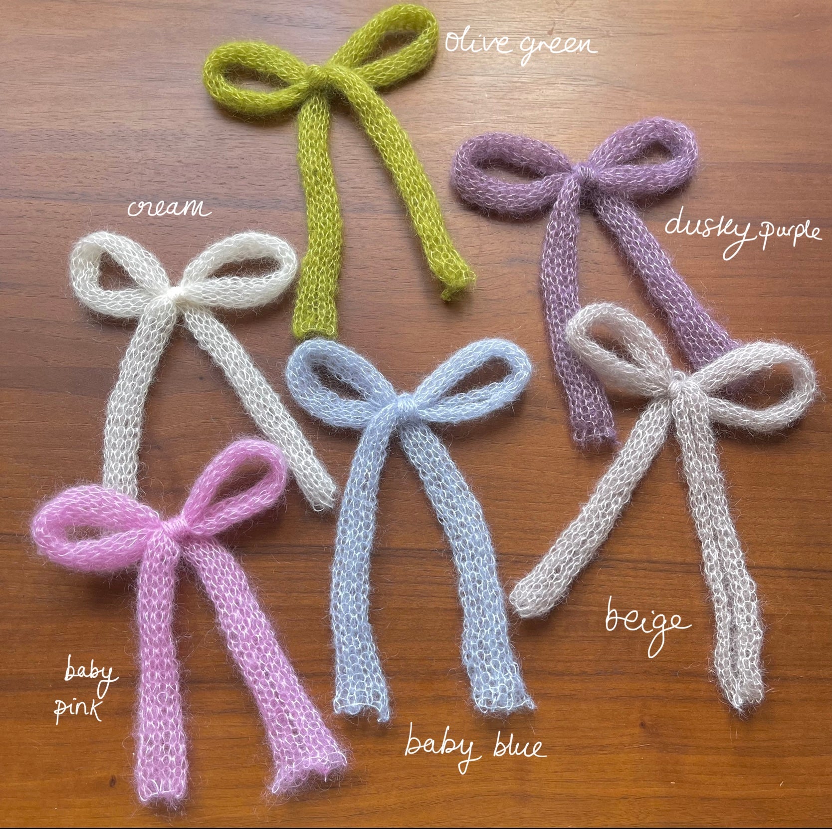 x2 handmade knitted mohair hair bows (pair) - 5 COLOUR OPTIONS
