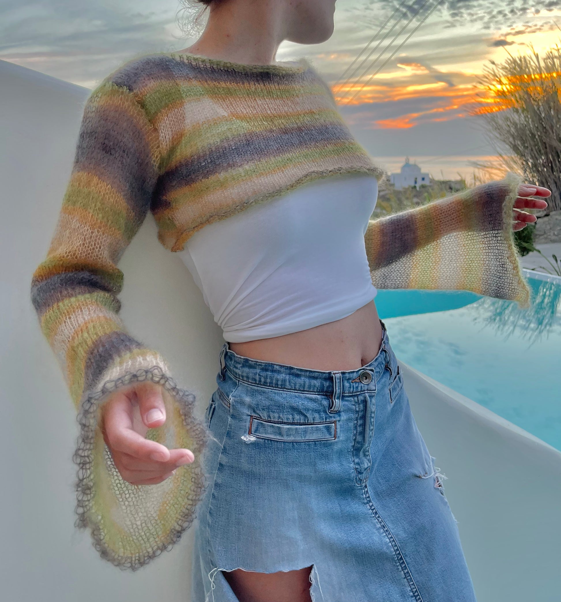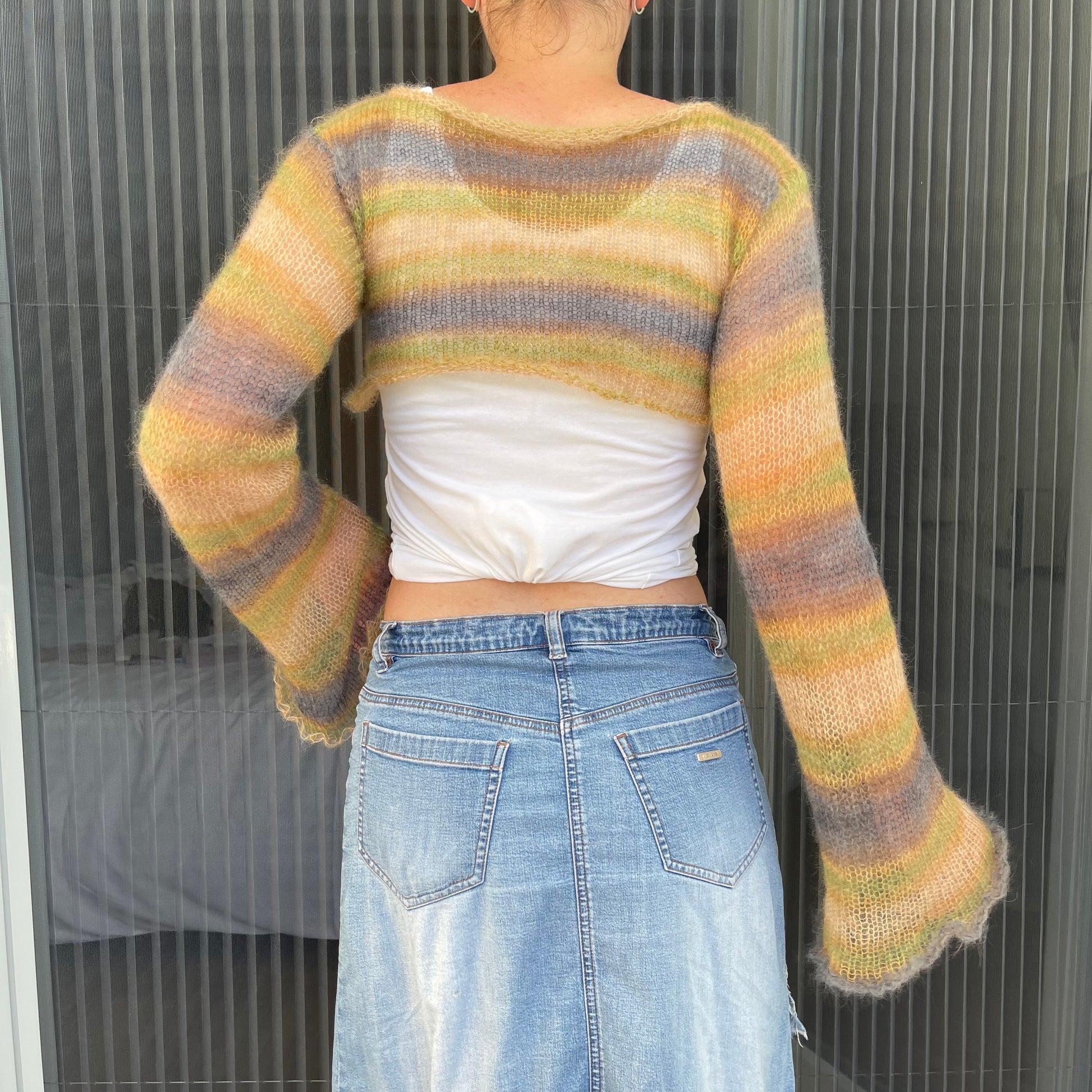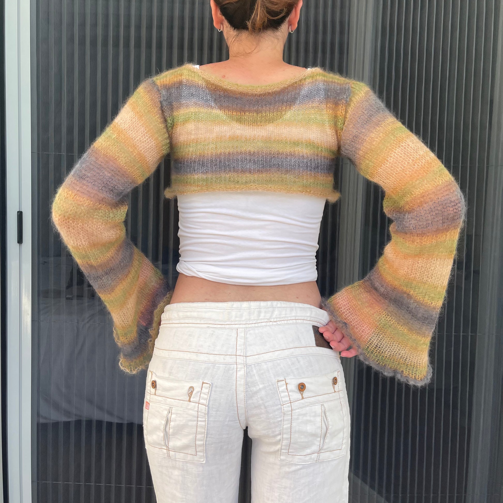 Handmade knitted mohair cropped jumper in ombré earth tones