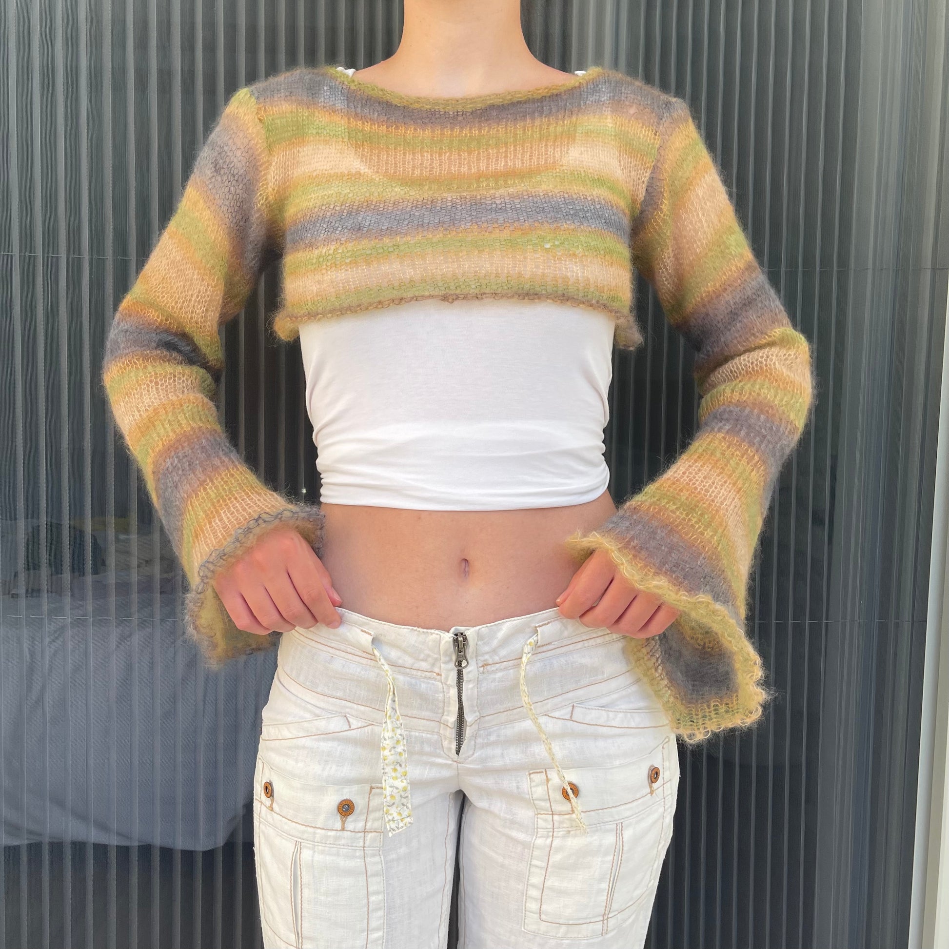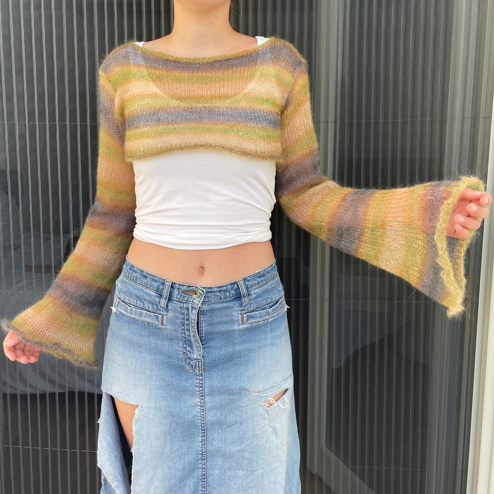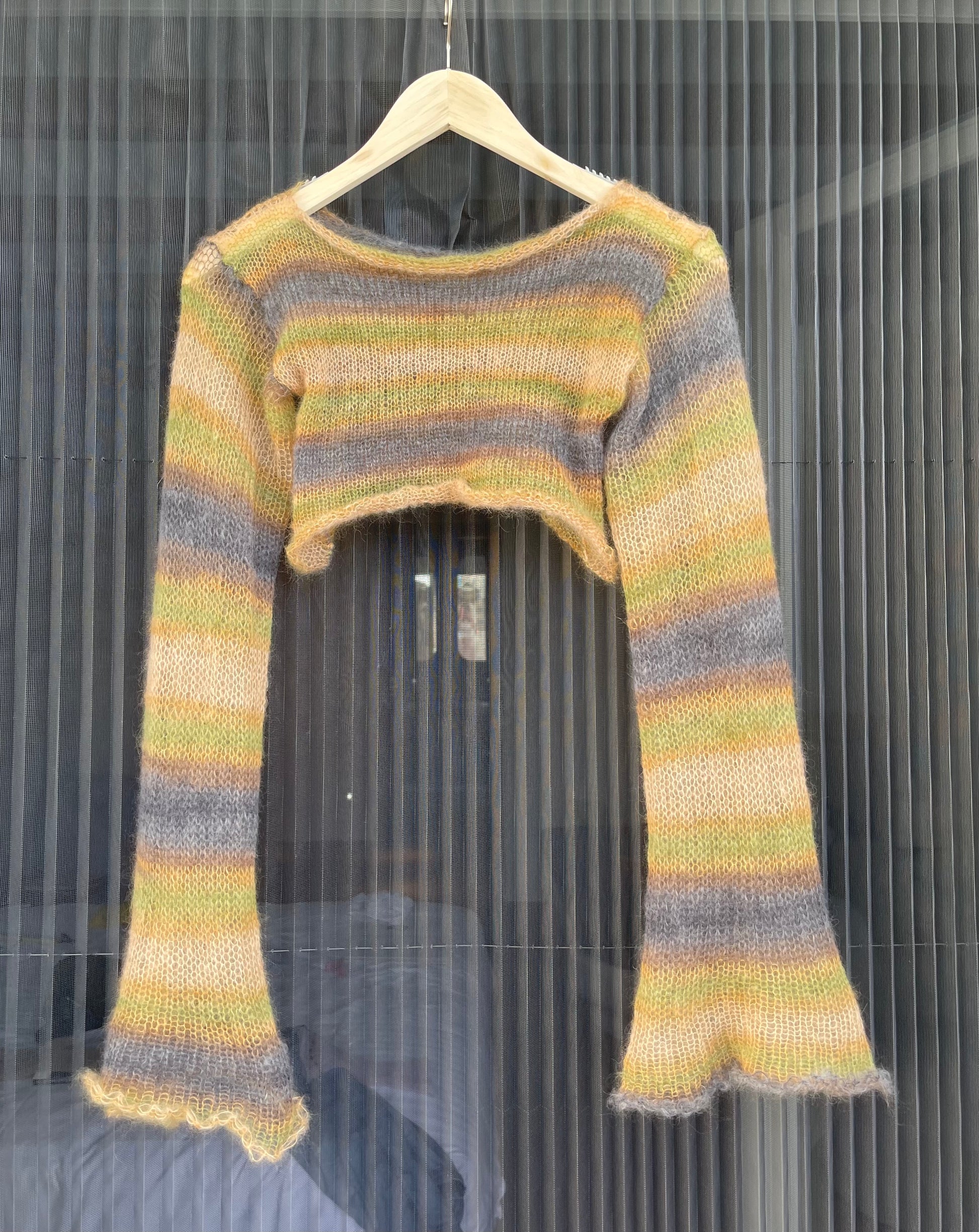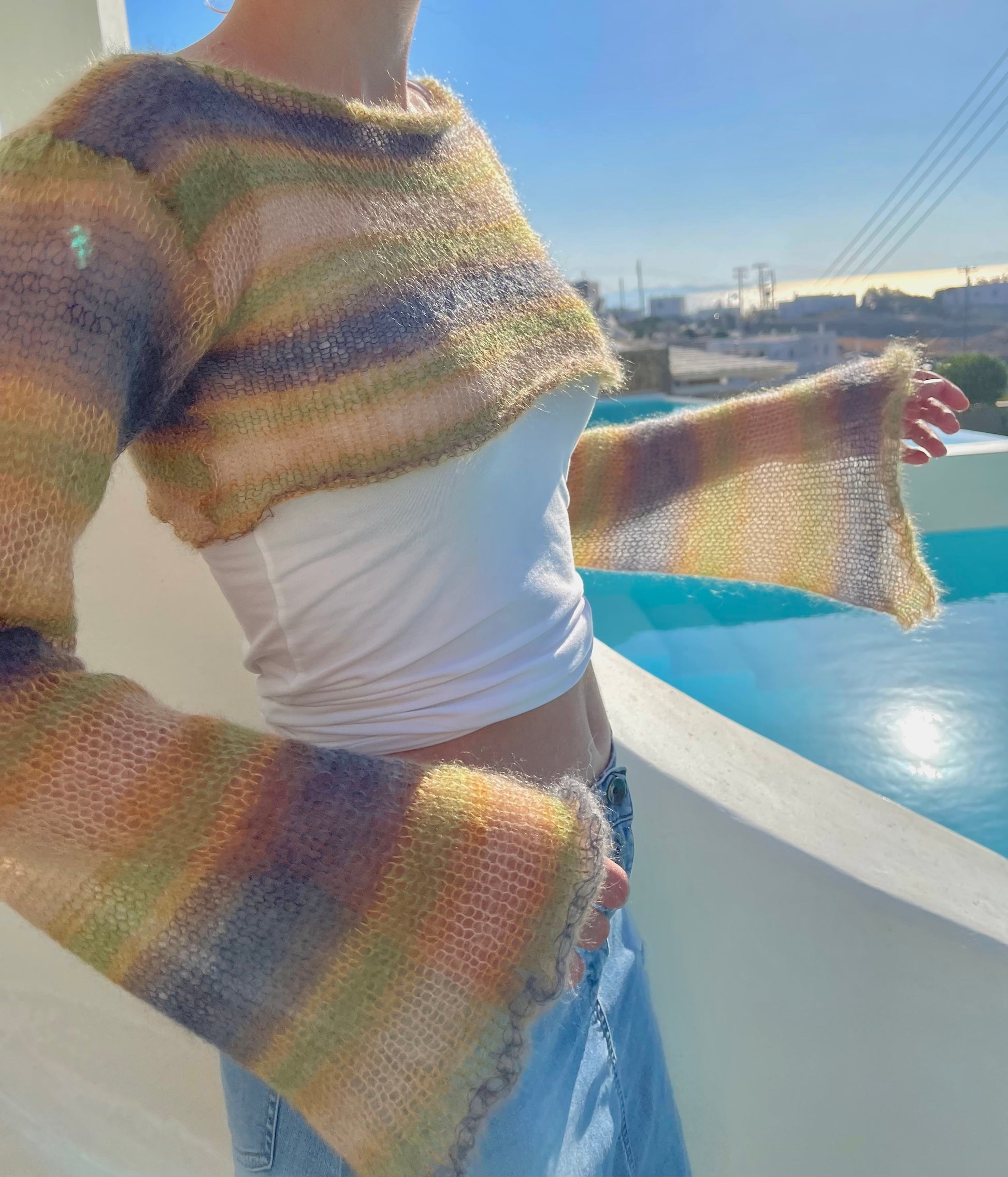 Handmade knitted mohair cropped jumper in ombré earth tones