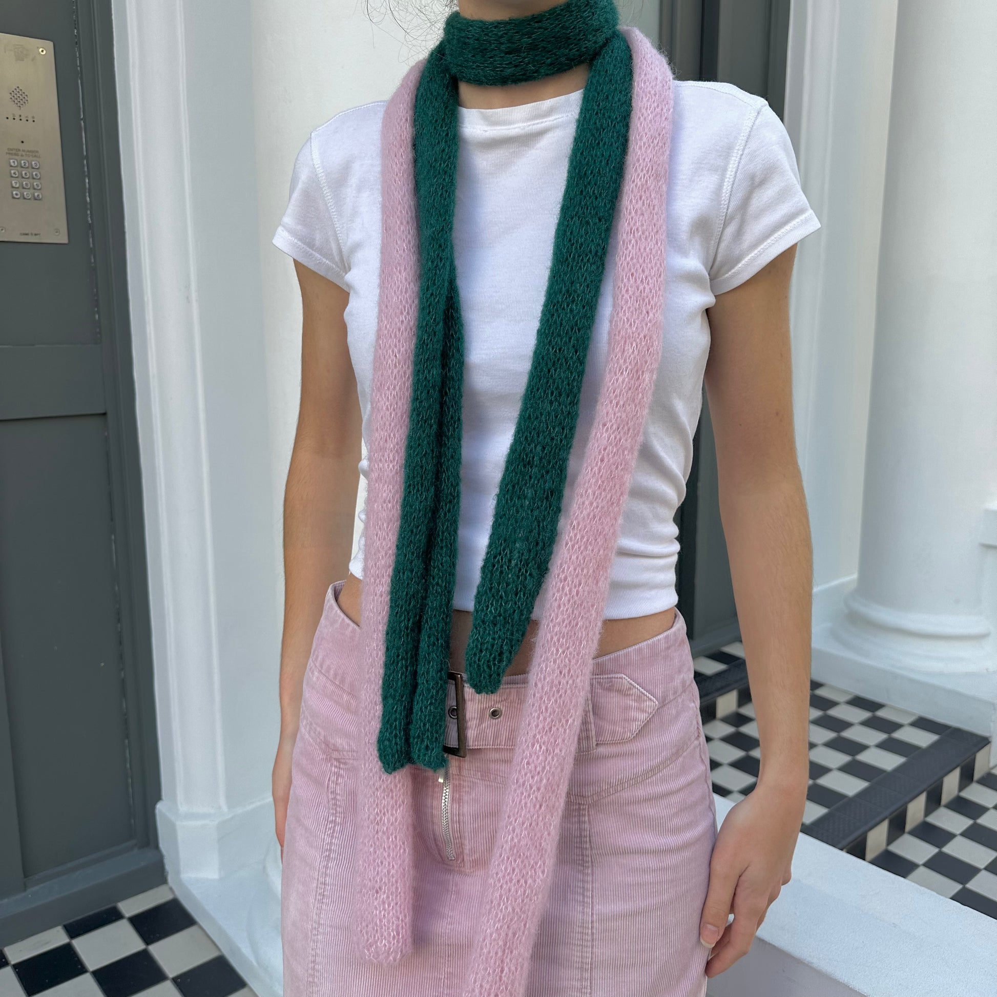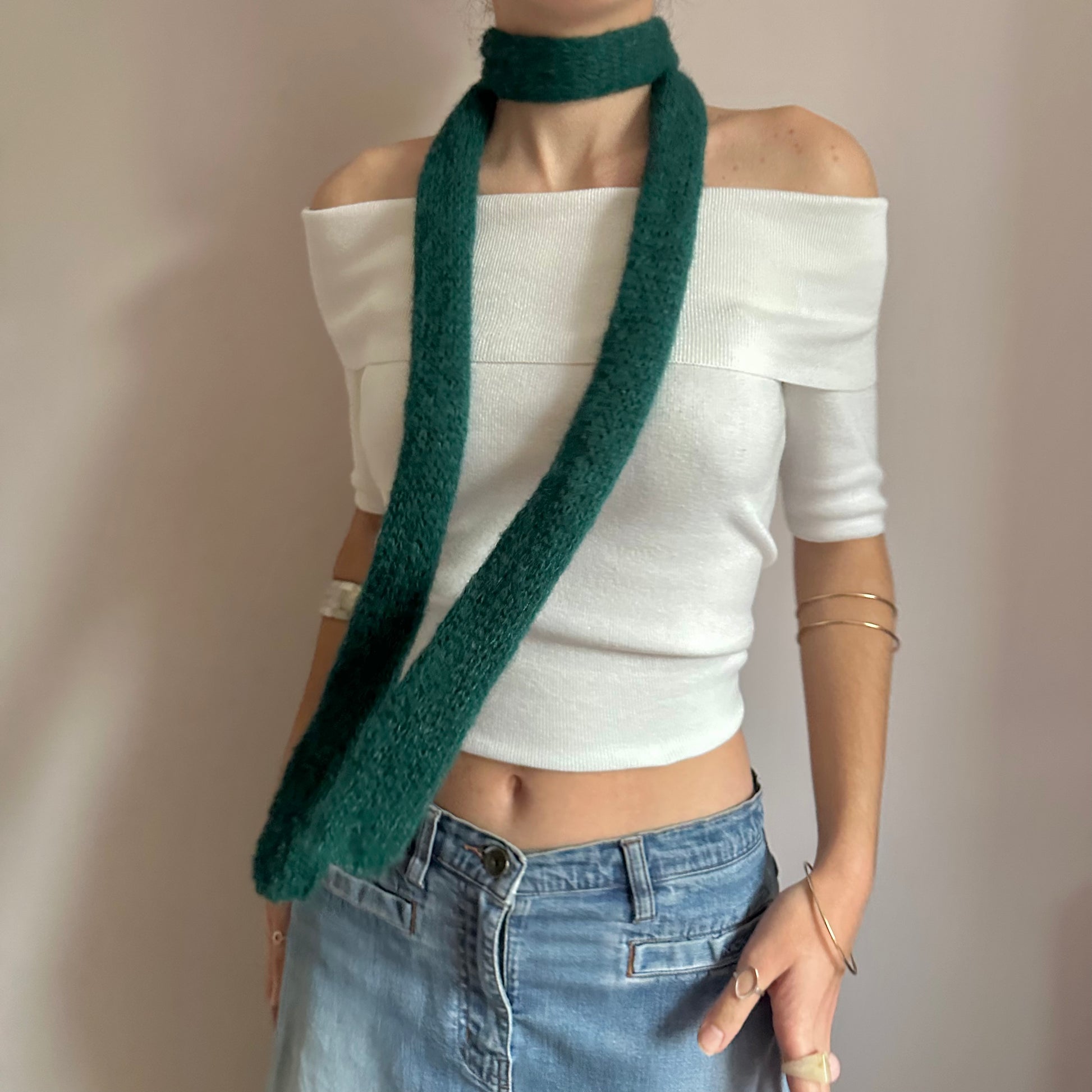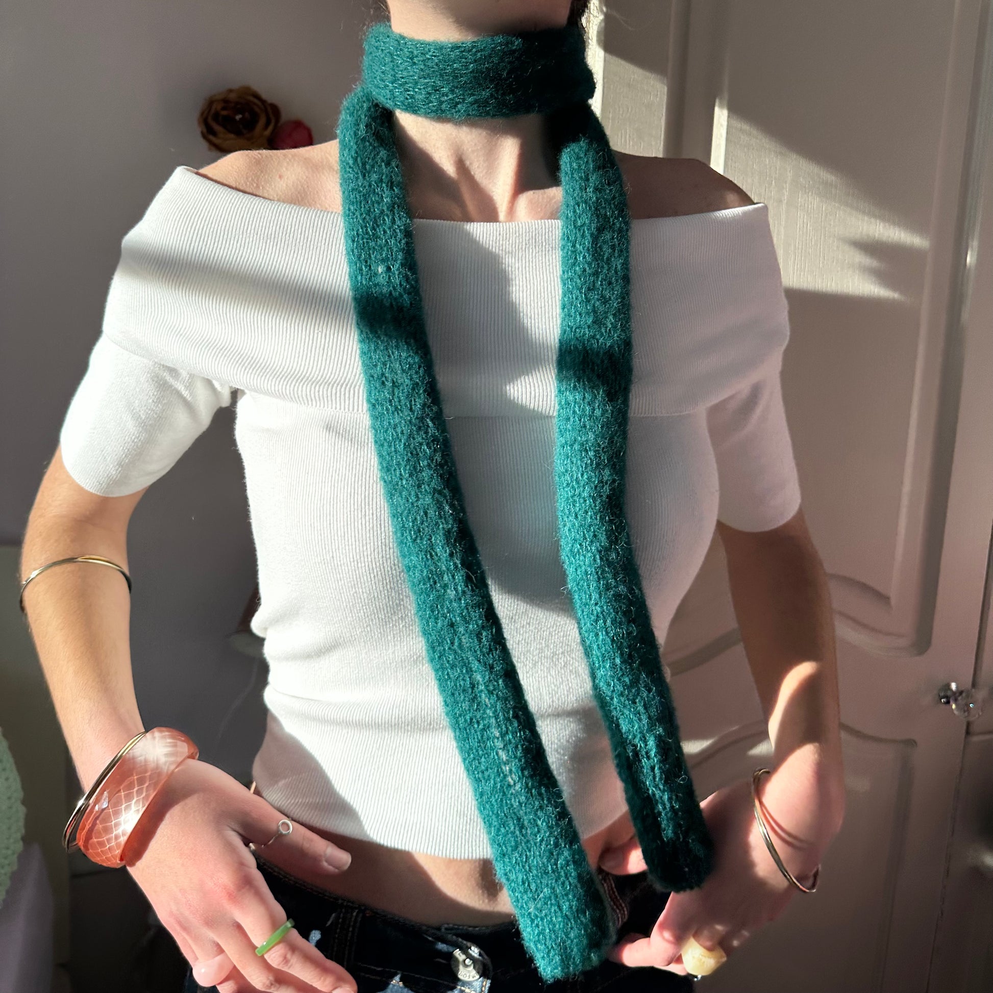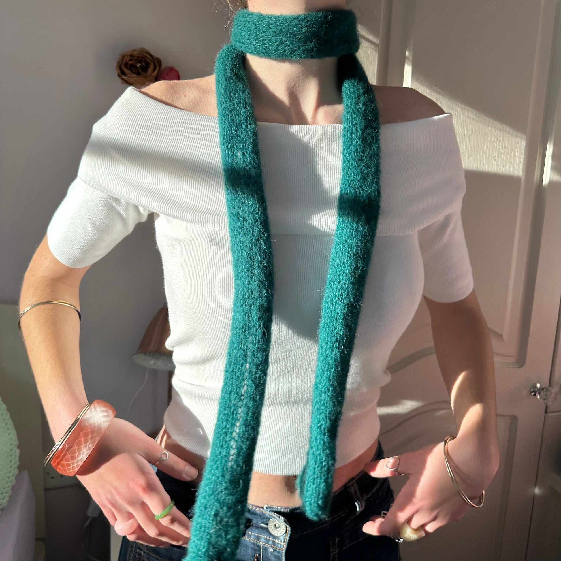Knit mohair skinny scarf in a gorgeous green colour, the perfect addition to your outfit and really flattering. Great for all year round! 🌸
