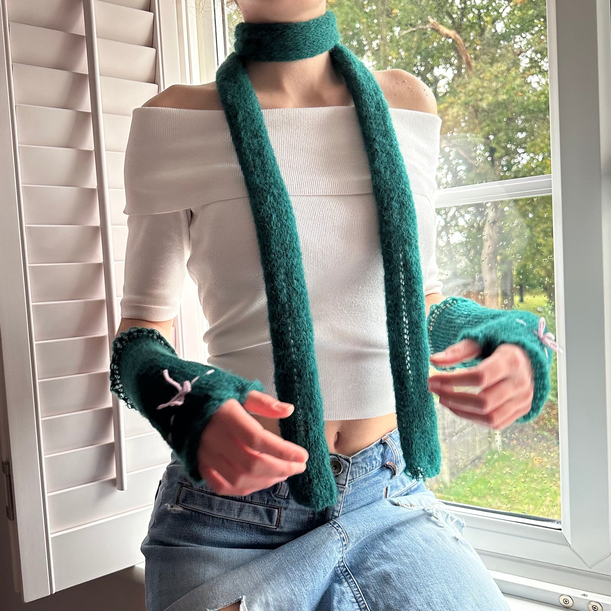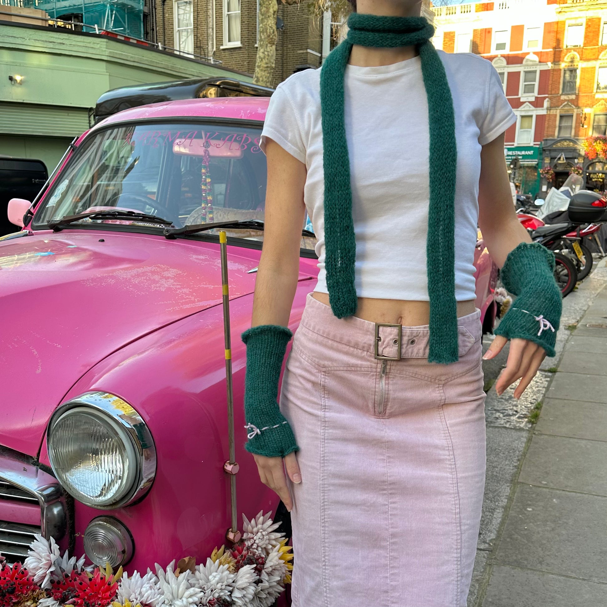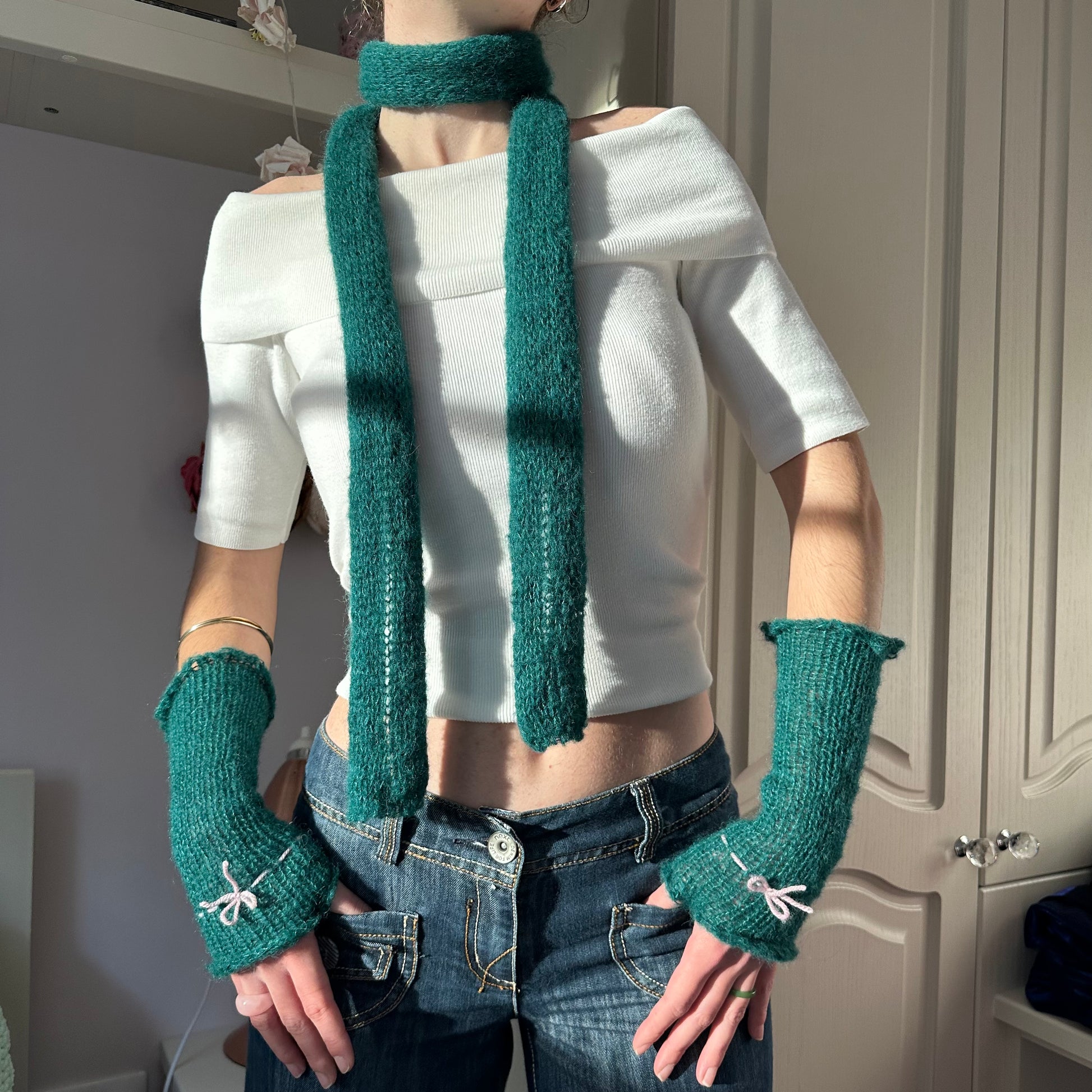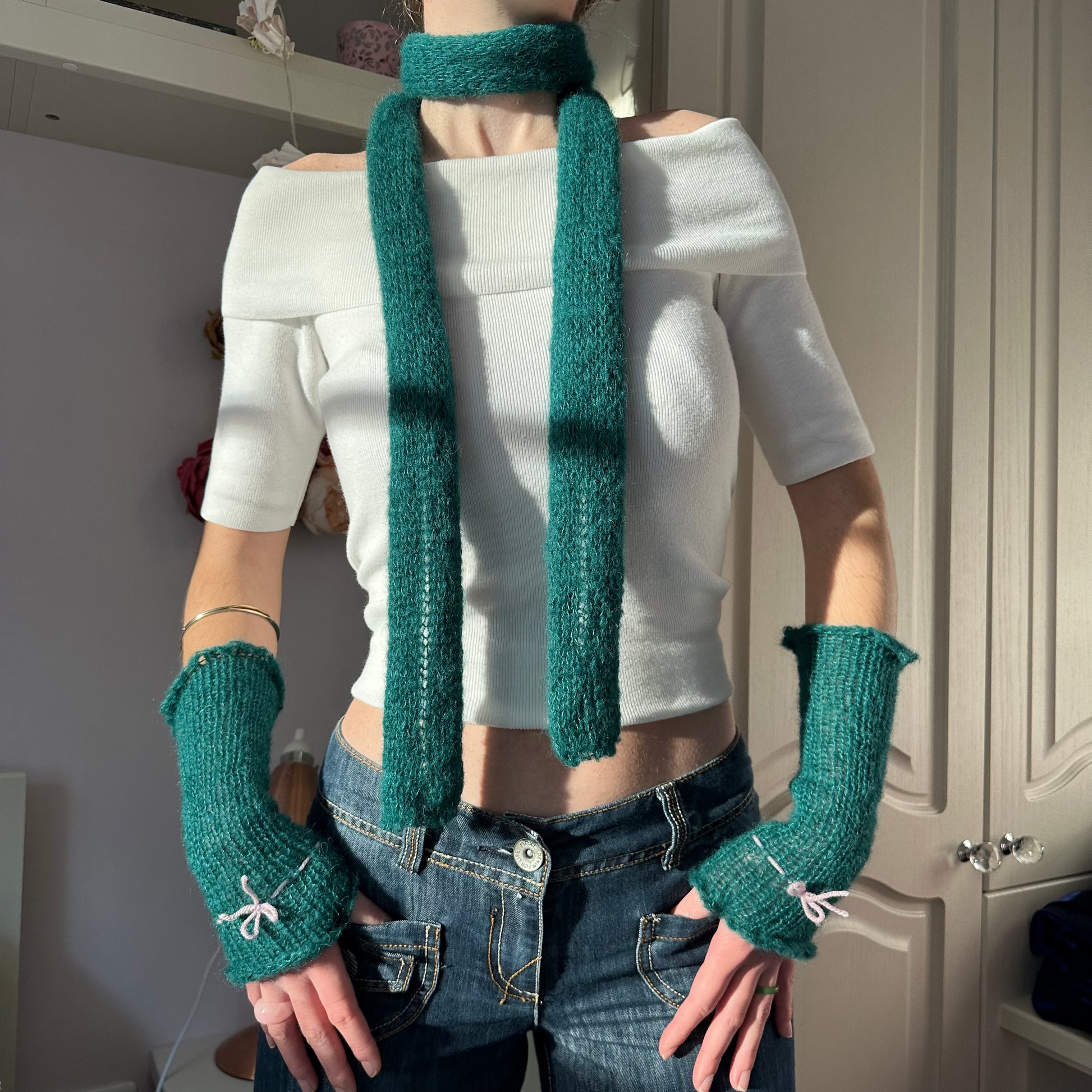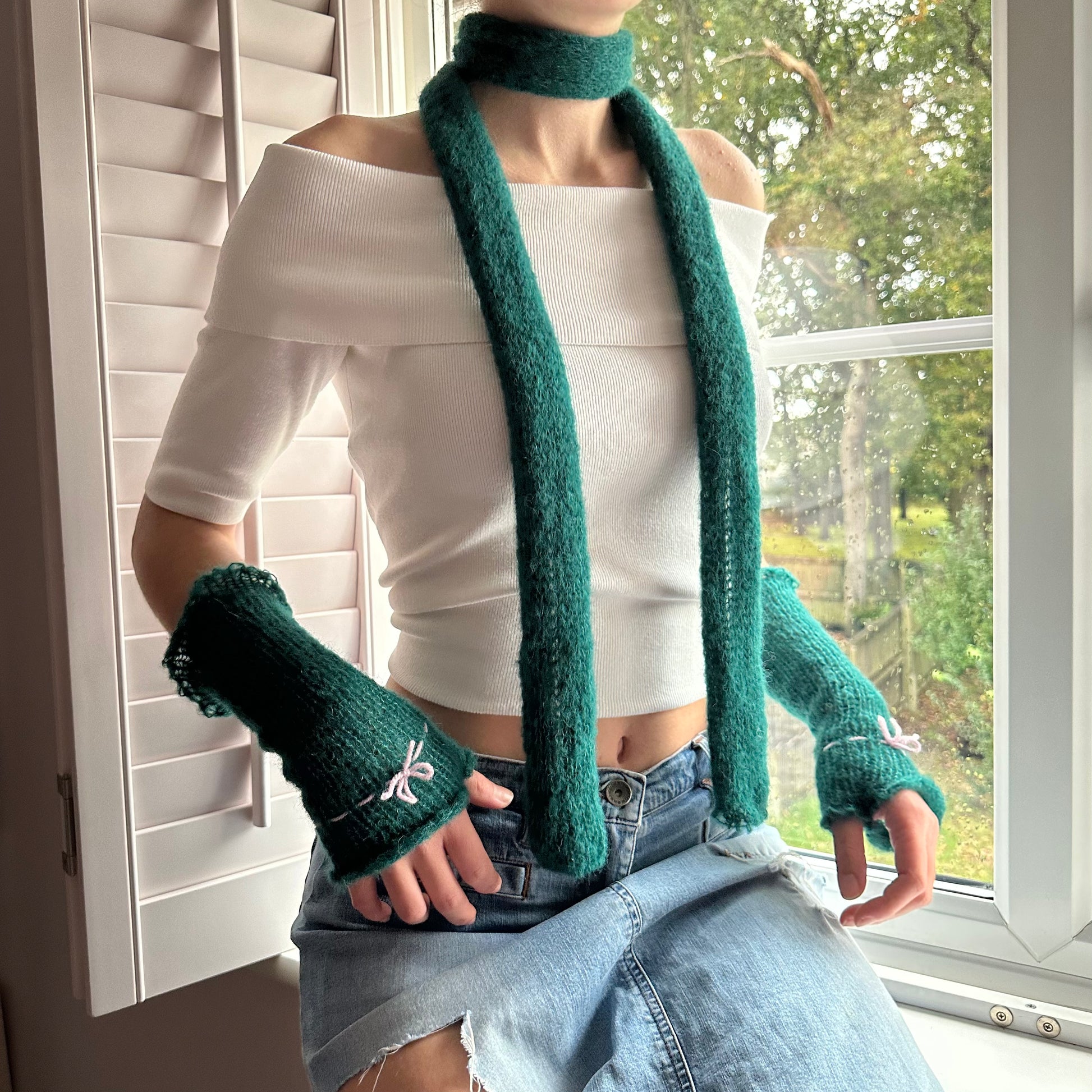Knit mohair skinny scarf in a gorgeous green colour, the perfect addition to your outfit and really flattering. Great for all year round! 🌸
