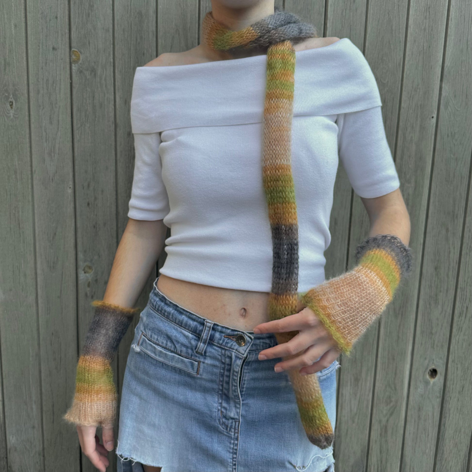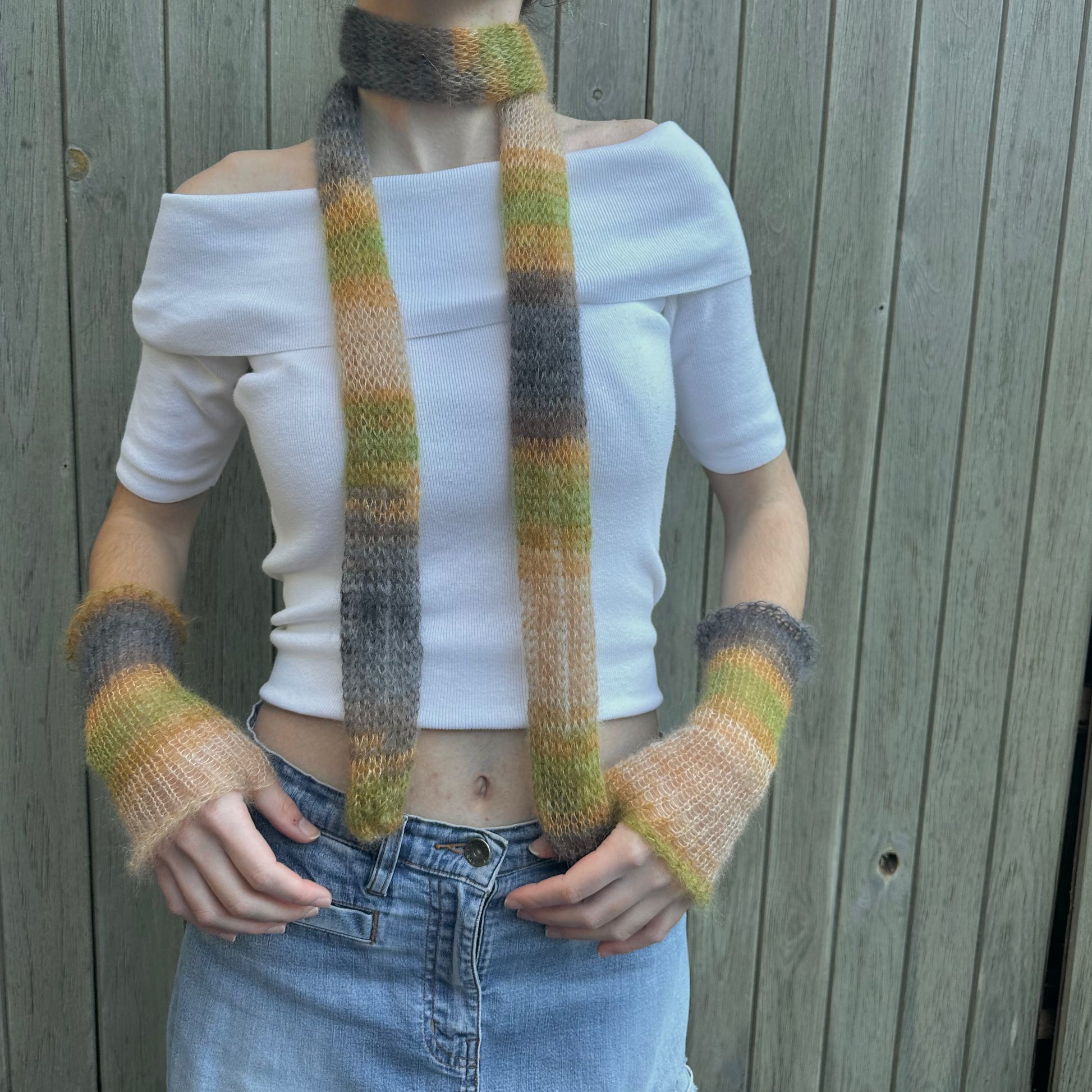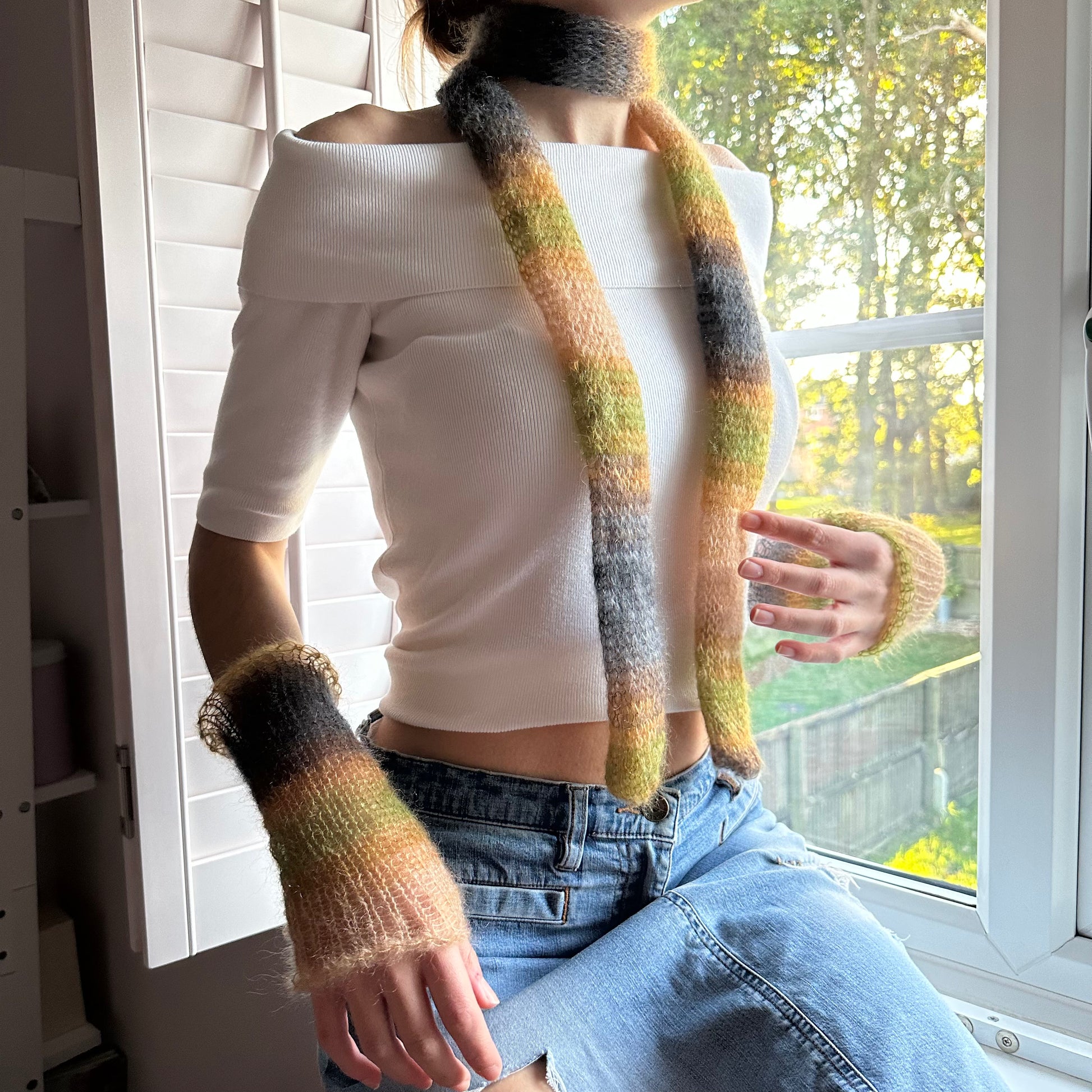 Knit mohair skinny scarf in a gorgeous ombré colourway, the perfect addition to your outfit and really flattering. Great for all year round! 🌼